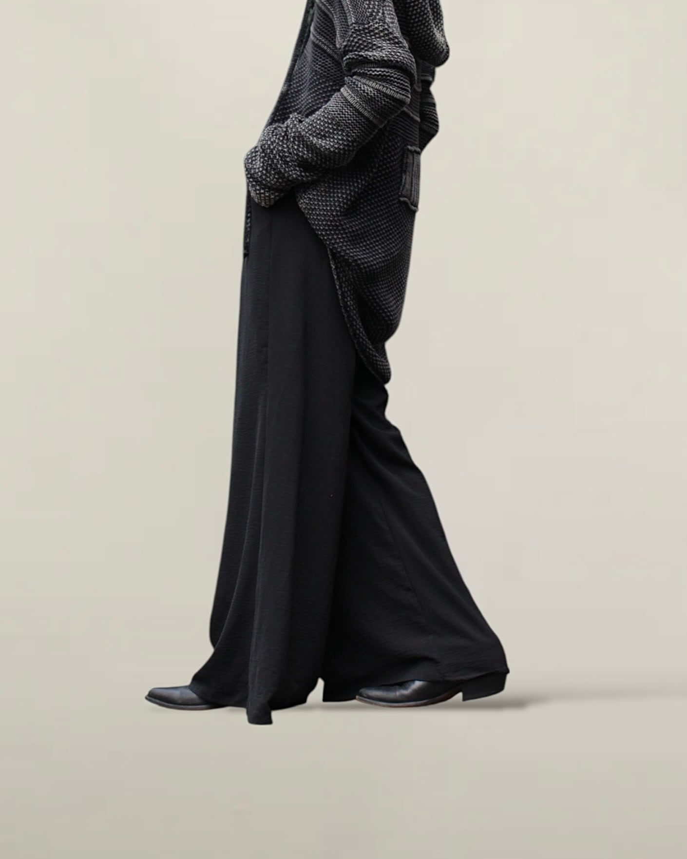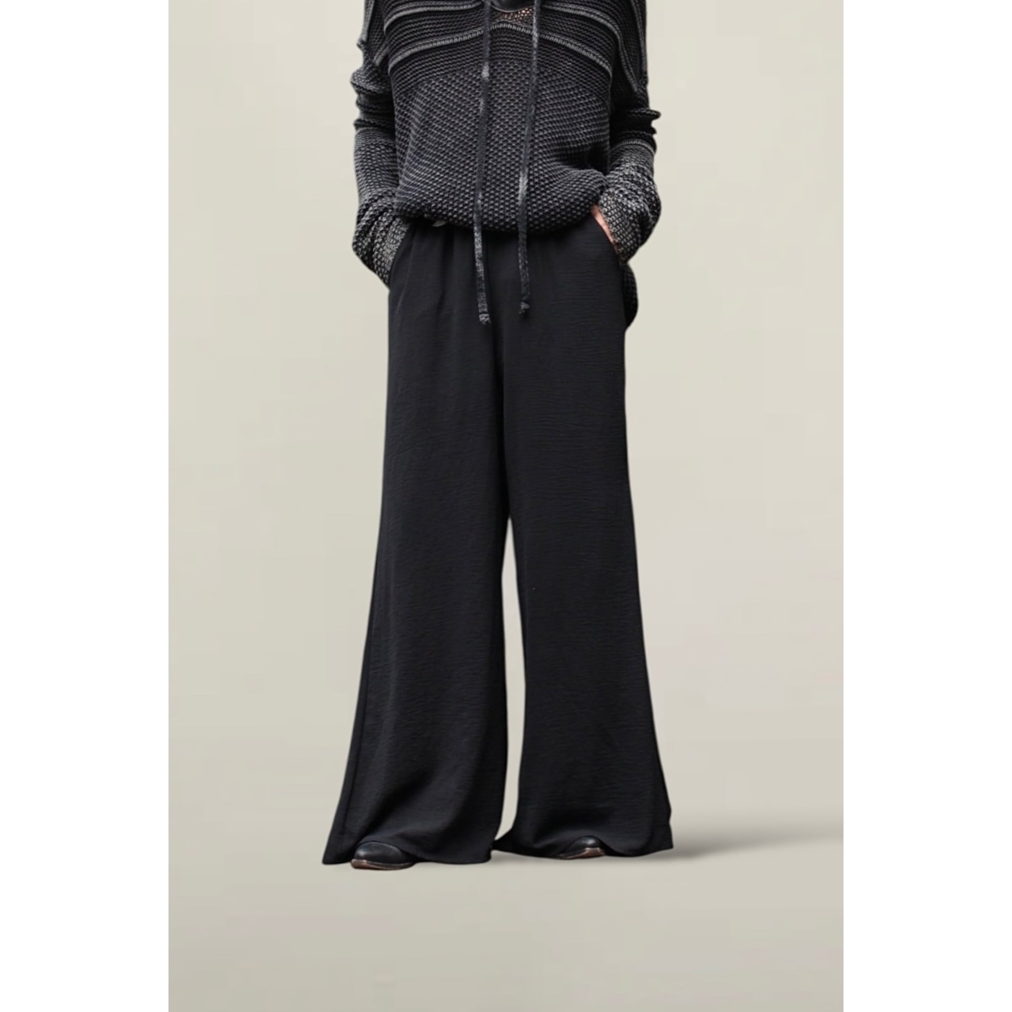 裾までのドレープが良く動きが感じられる滑らかなイージーパンツ。