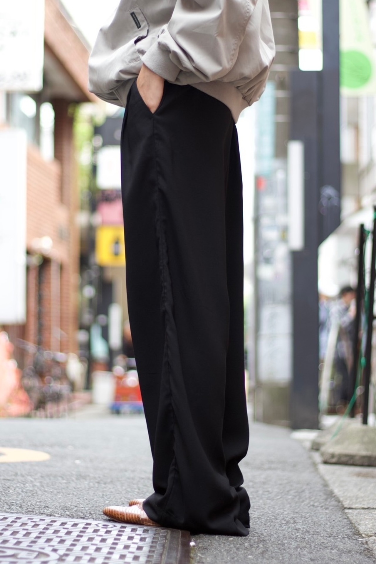 また、ポリエステルの素材で、伸縮性があり、しなやかでドレープ感のあるリラックススタイル。