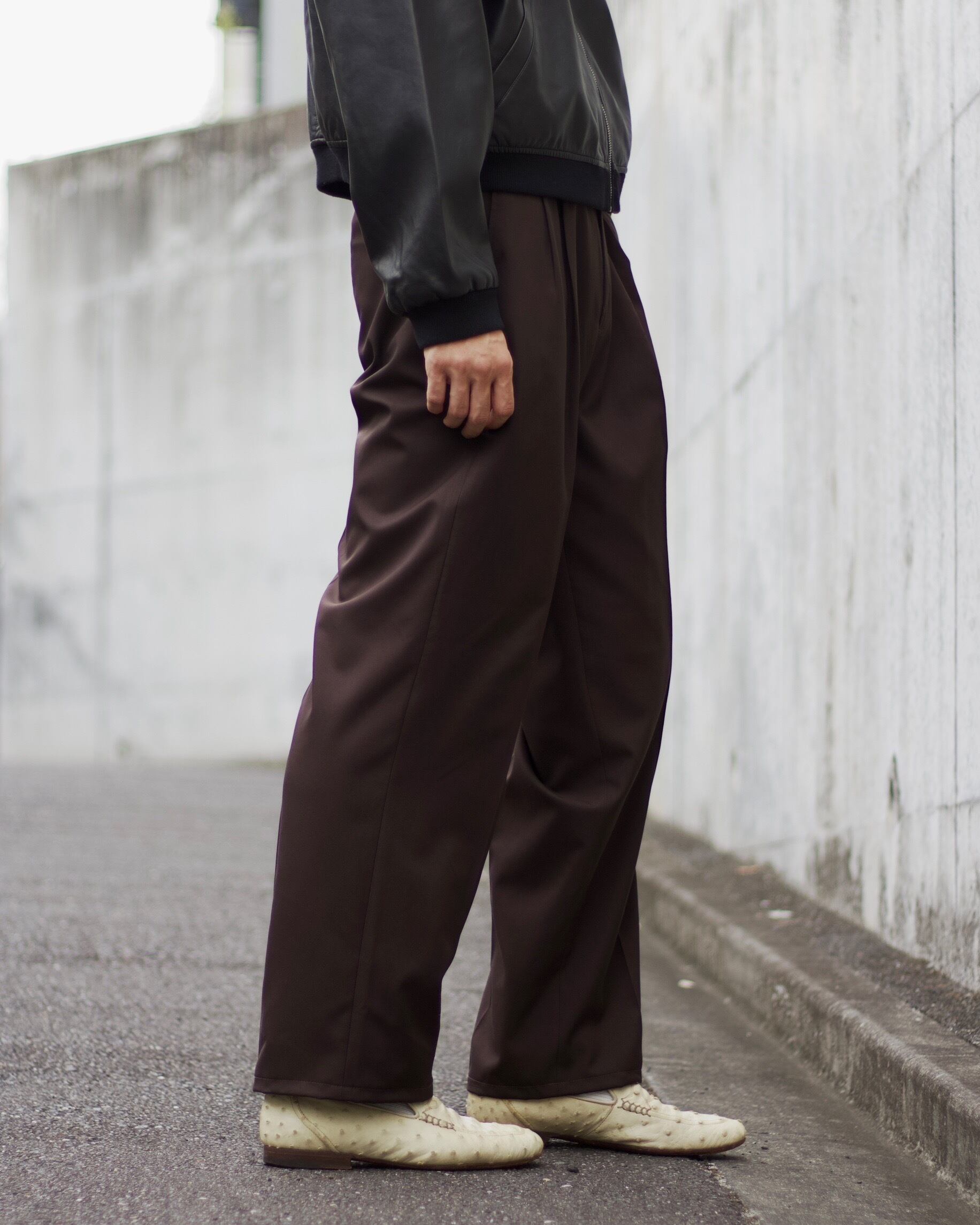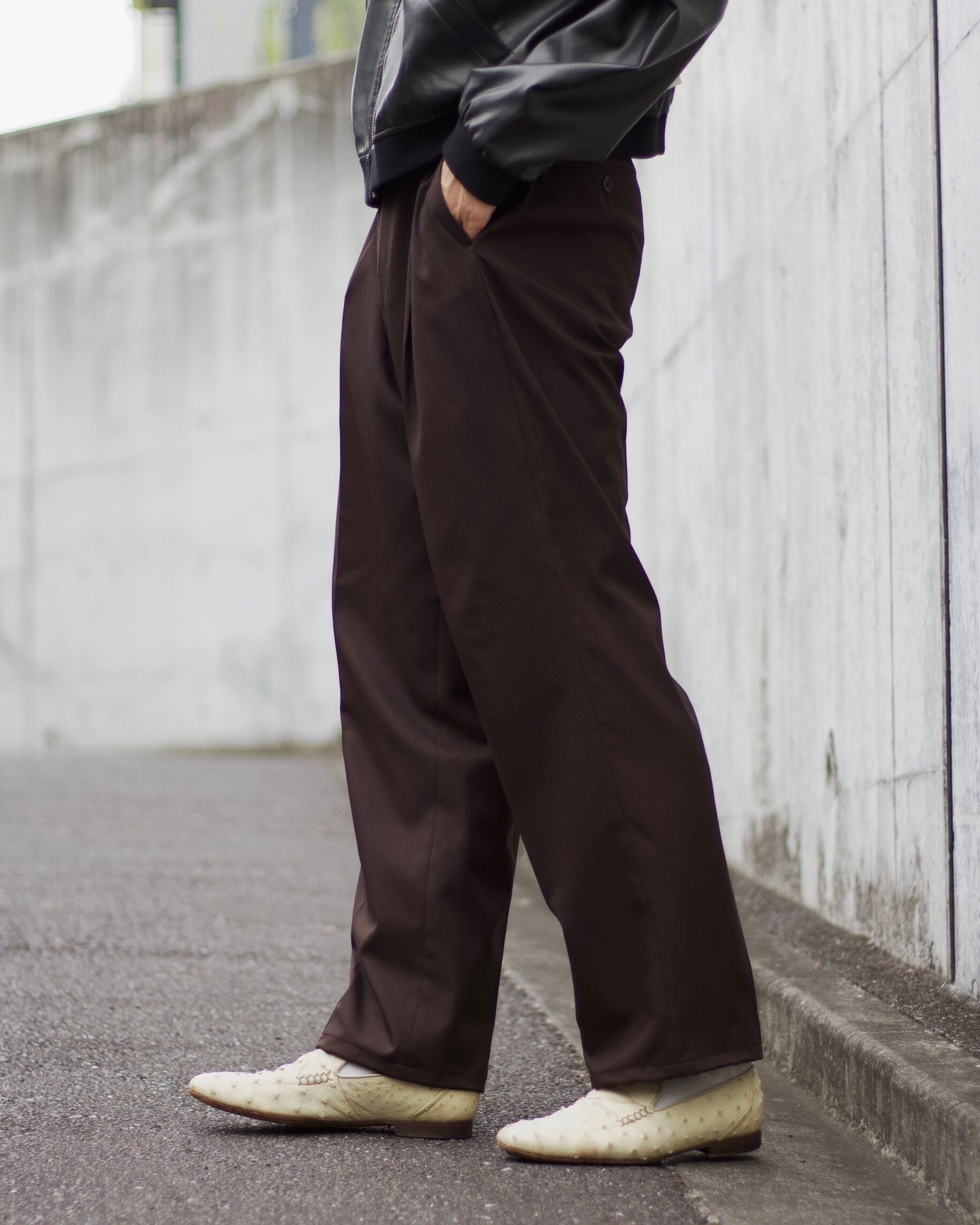フロントに入ったタックが特徴的なワイドスラックスが入荷しました。