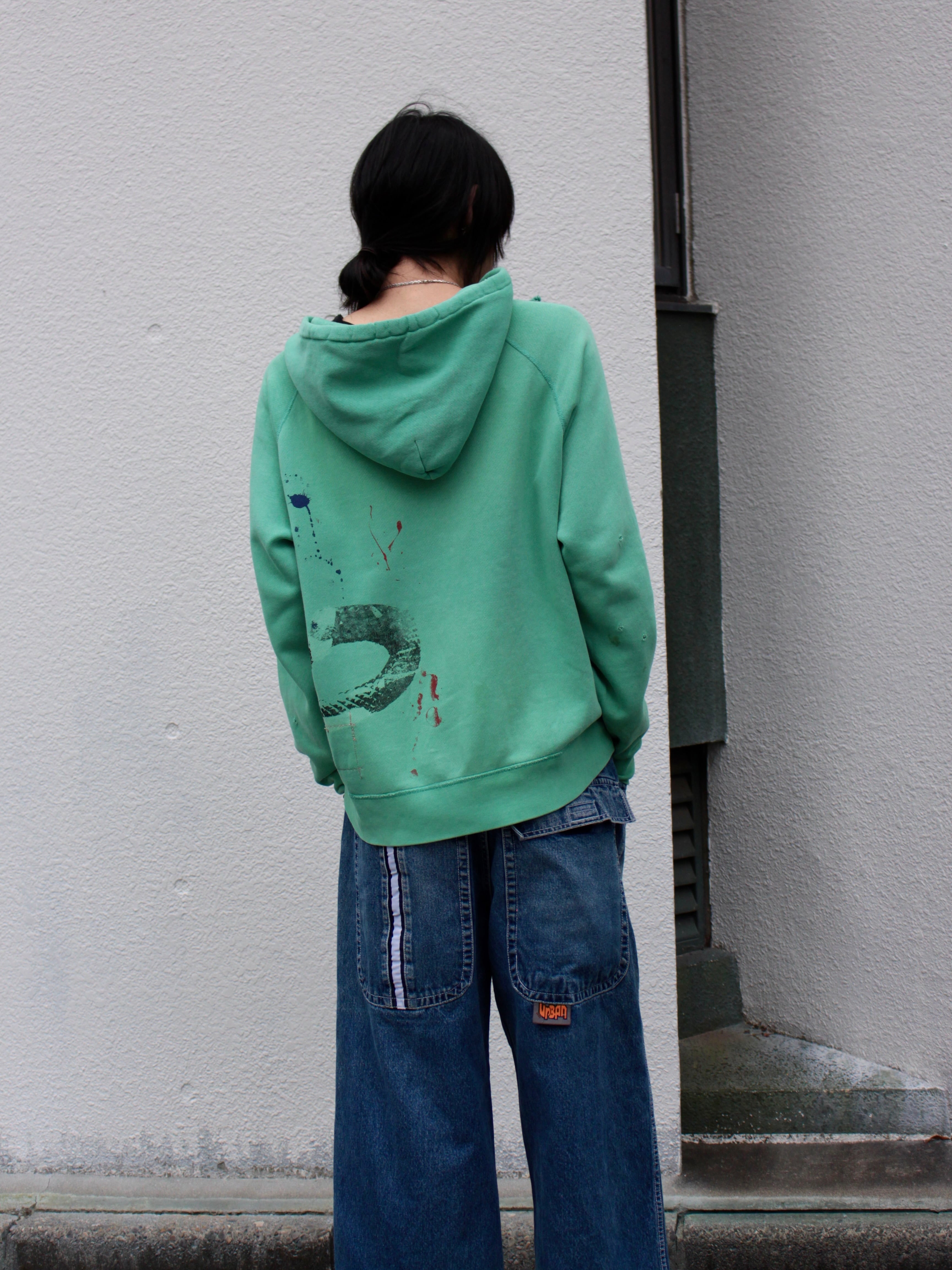 ステンシルのようなペイントもあったりと雰囲気がありすぎる、そんなフーディーです。