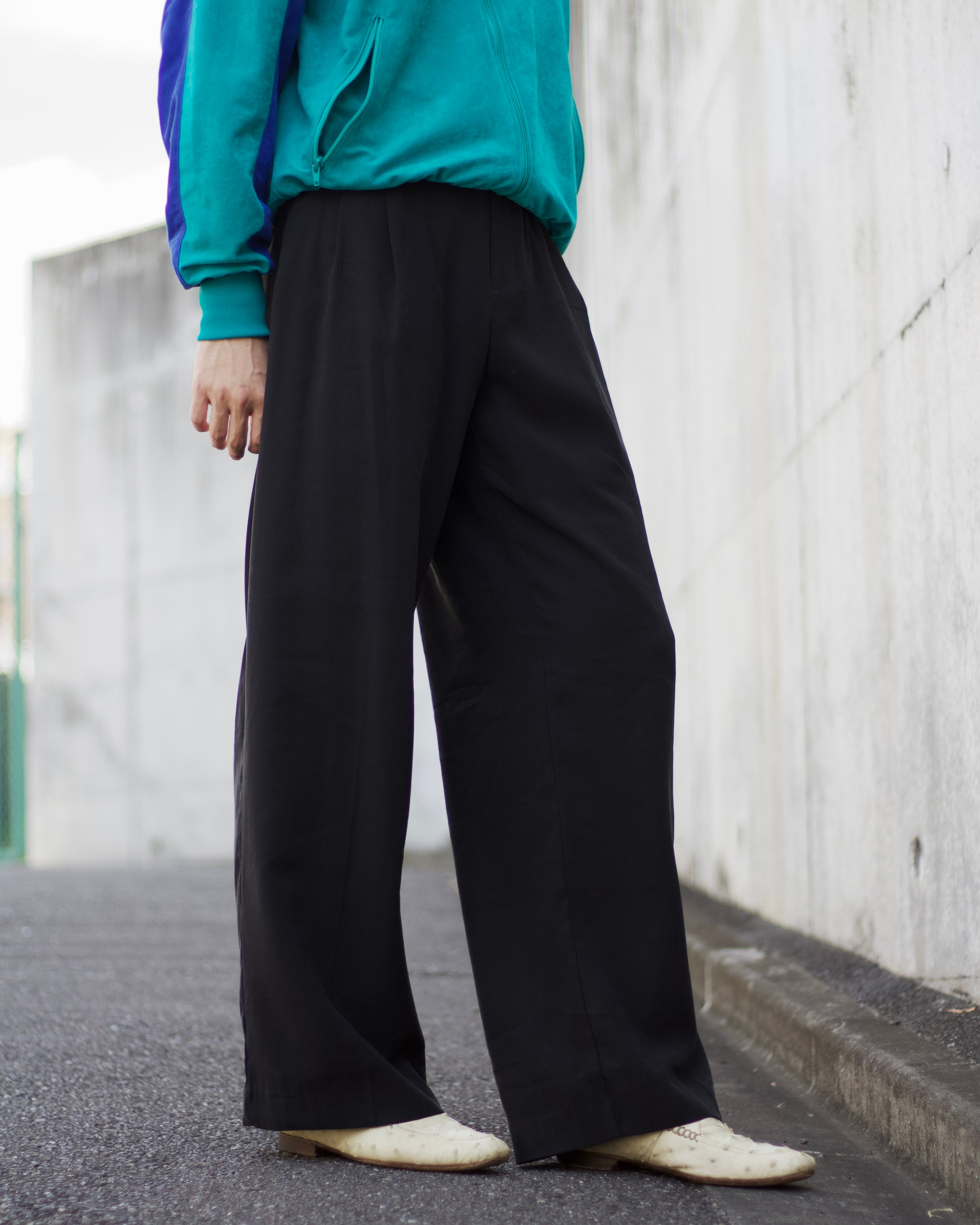 ゆったりとしたシルエットが魅力の袴スラックス。