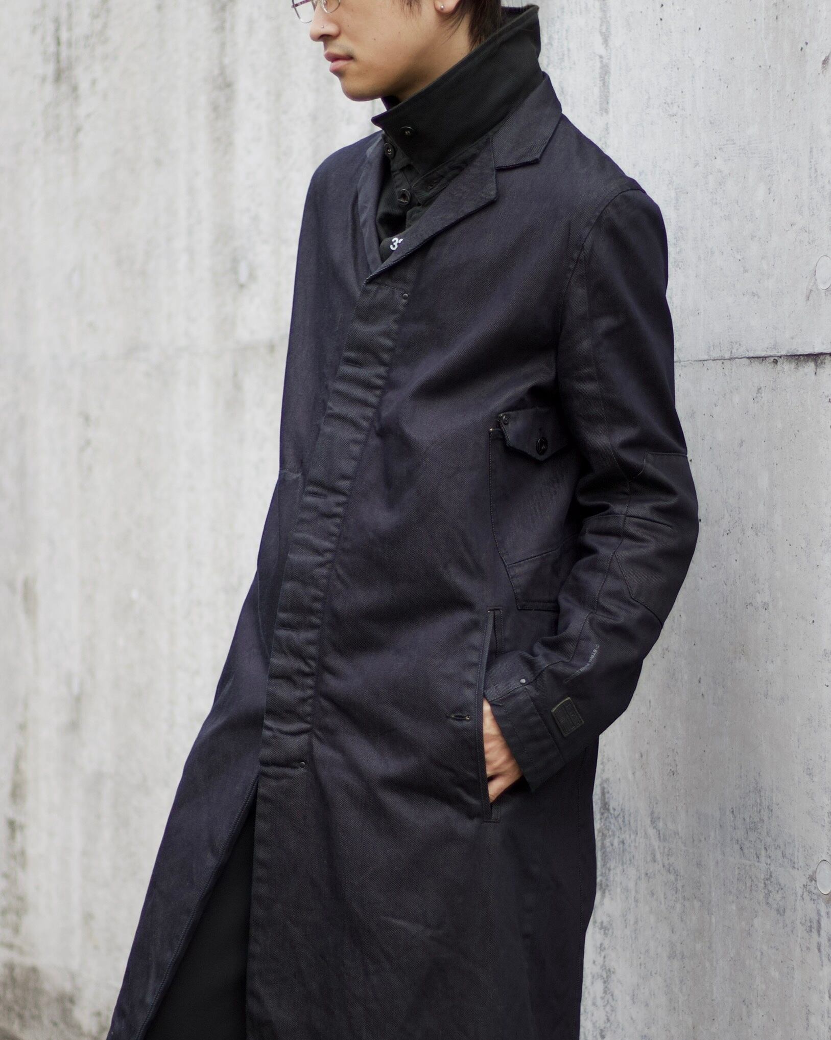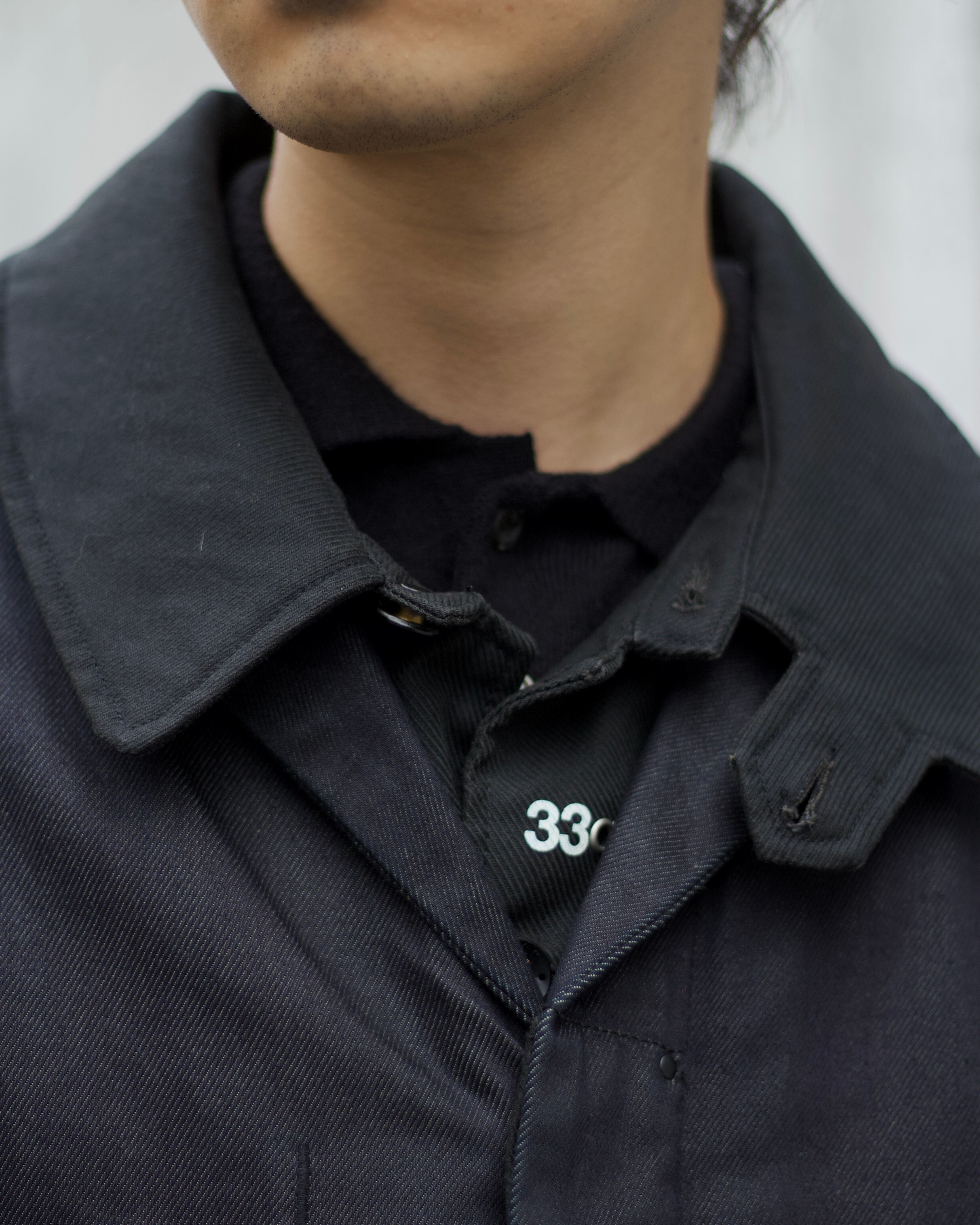 インディゴを黒染めした様な色合いのデニムに、テック要素を感じるネックやアームのデザイン。