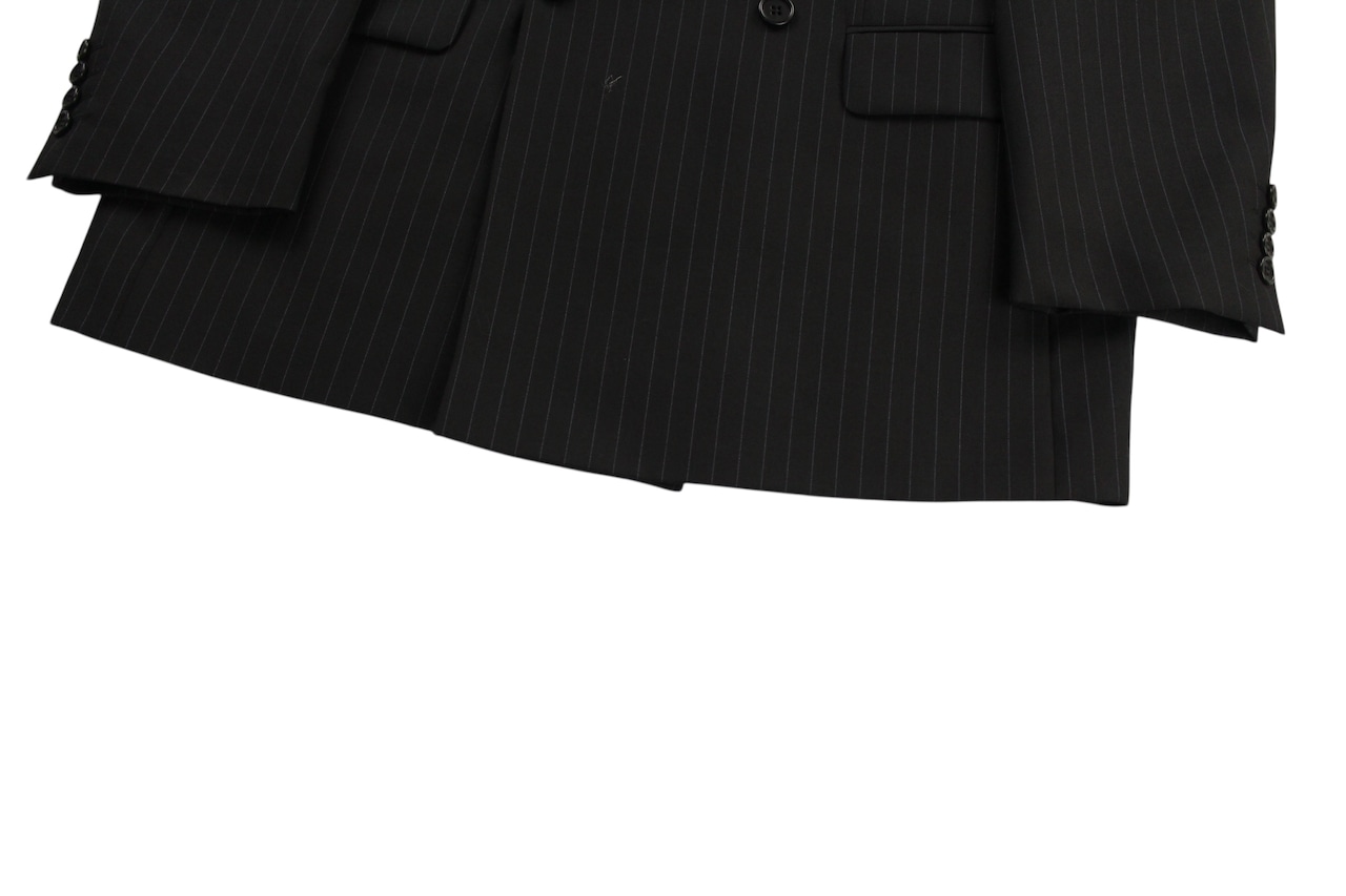 青ピンストライプなのにこの重厚感さで大人な上品さを出せるのはさすがですね、
