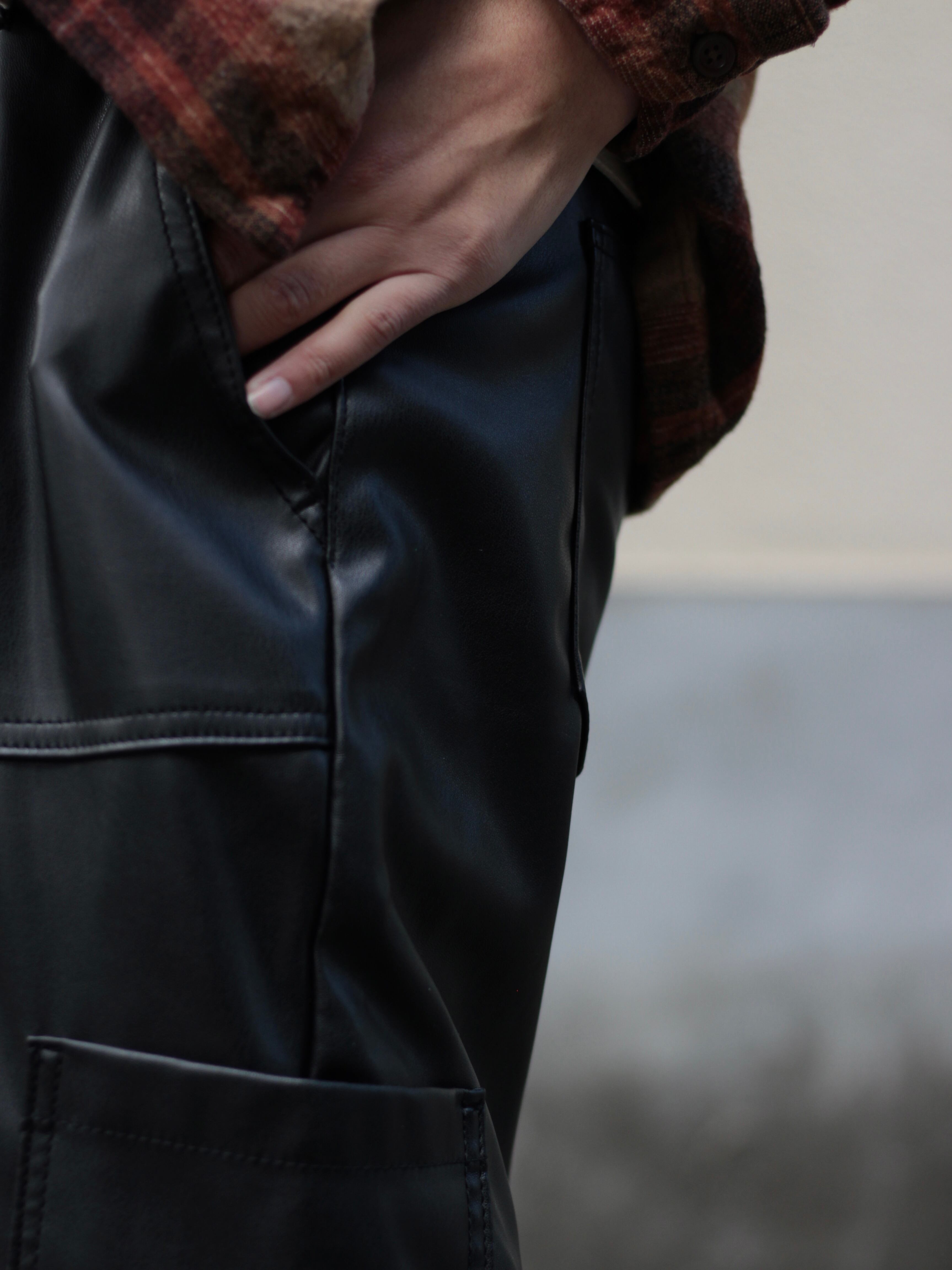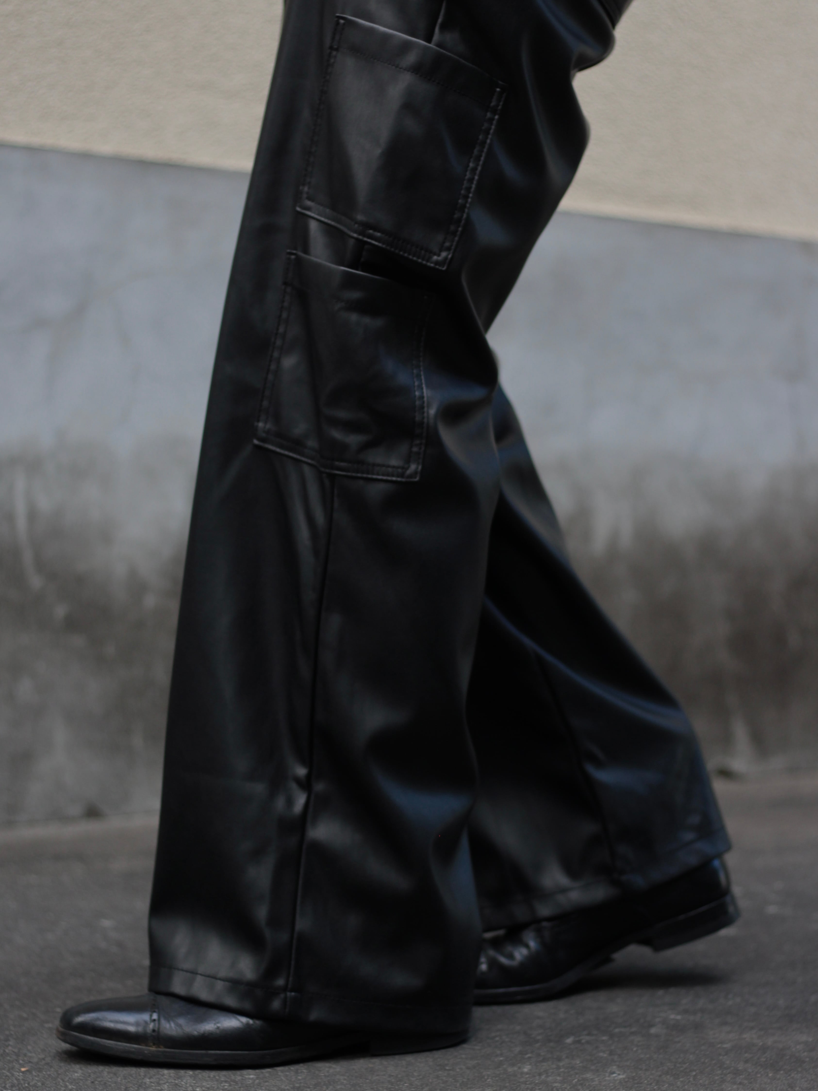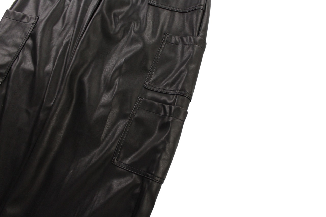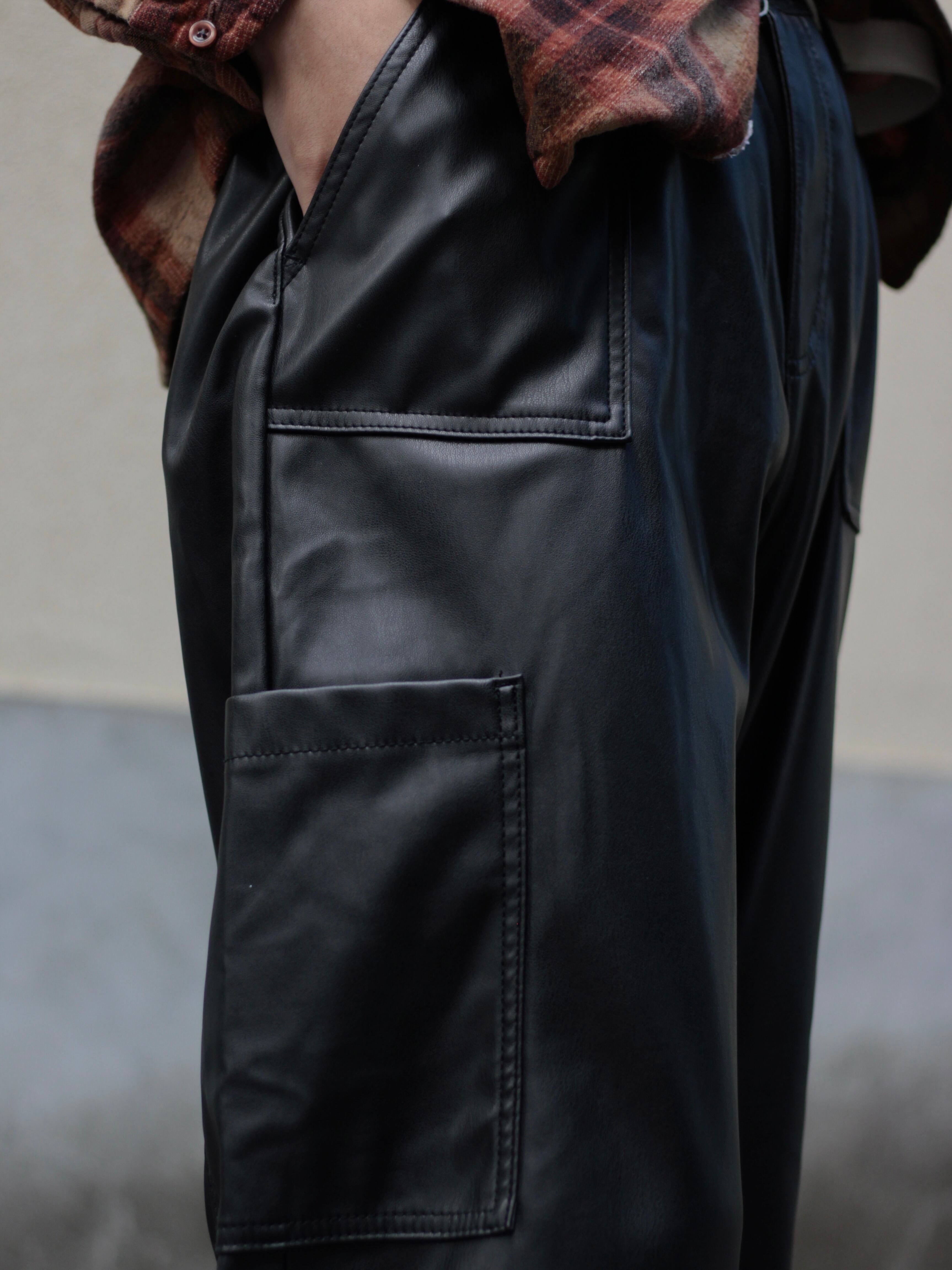 "Fake leather" wide cargo pants with belt loop【CU-8182】