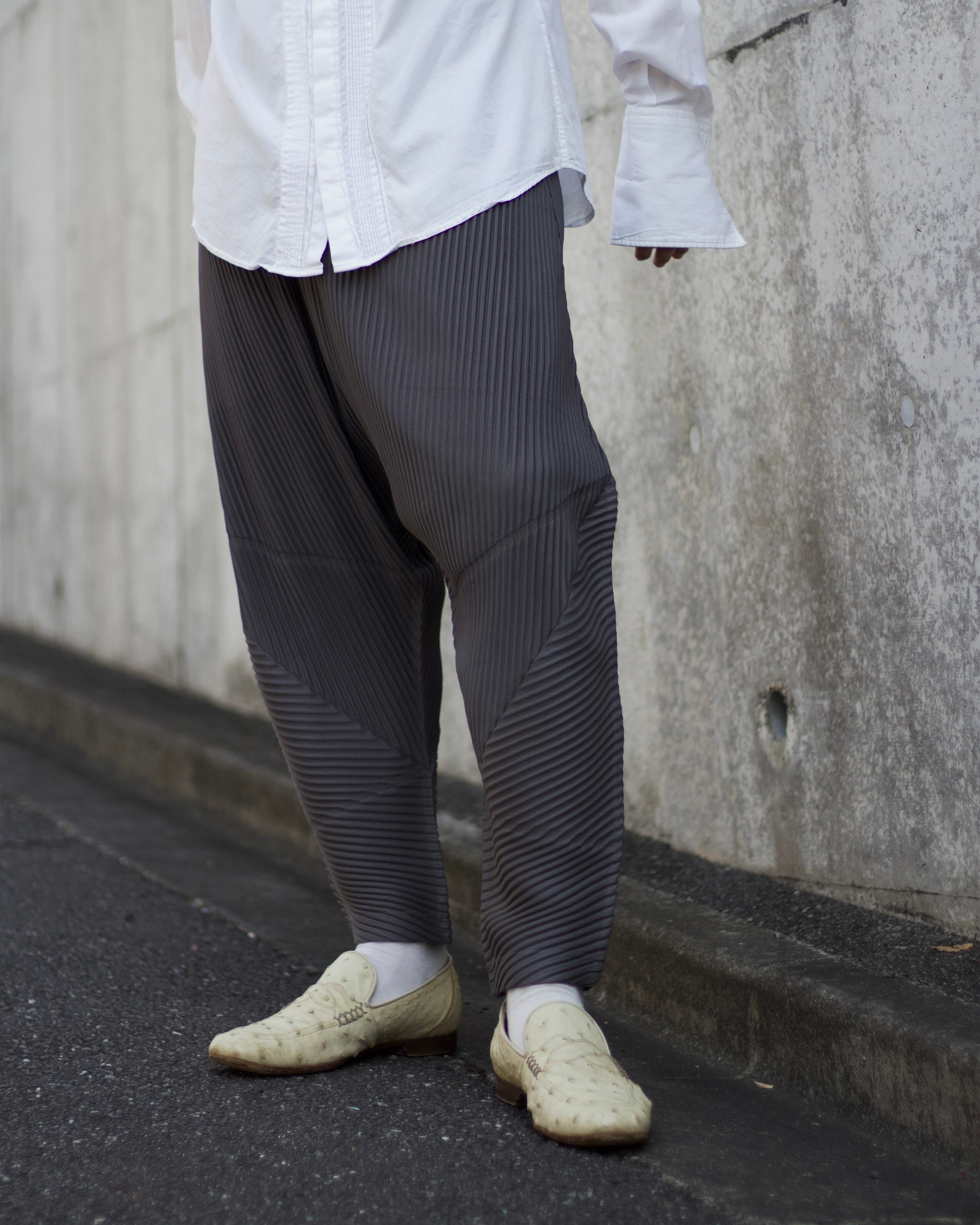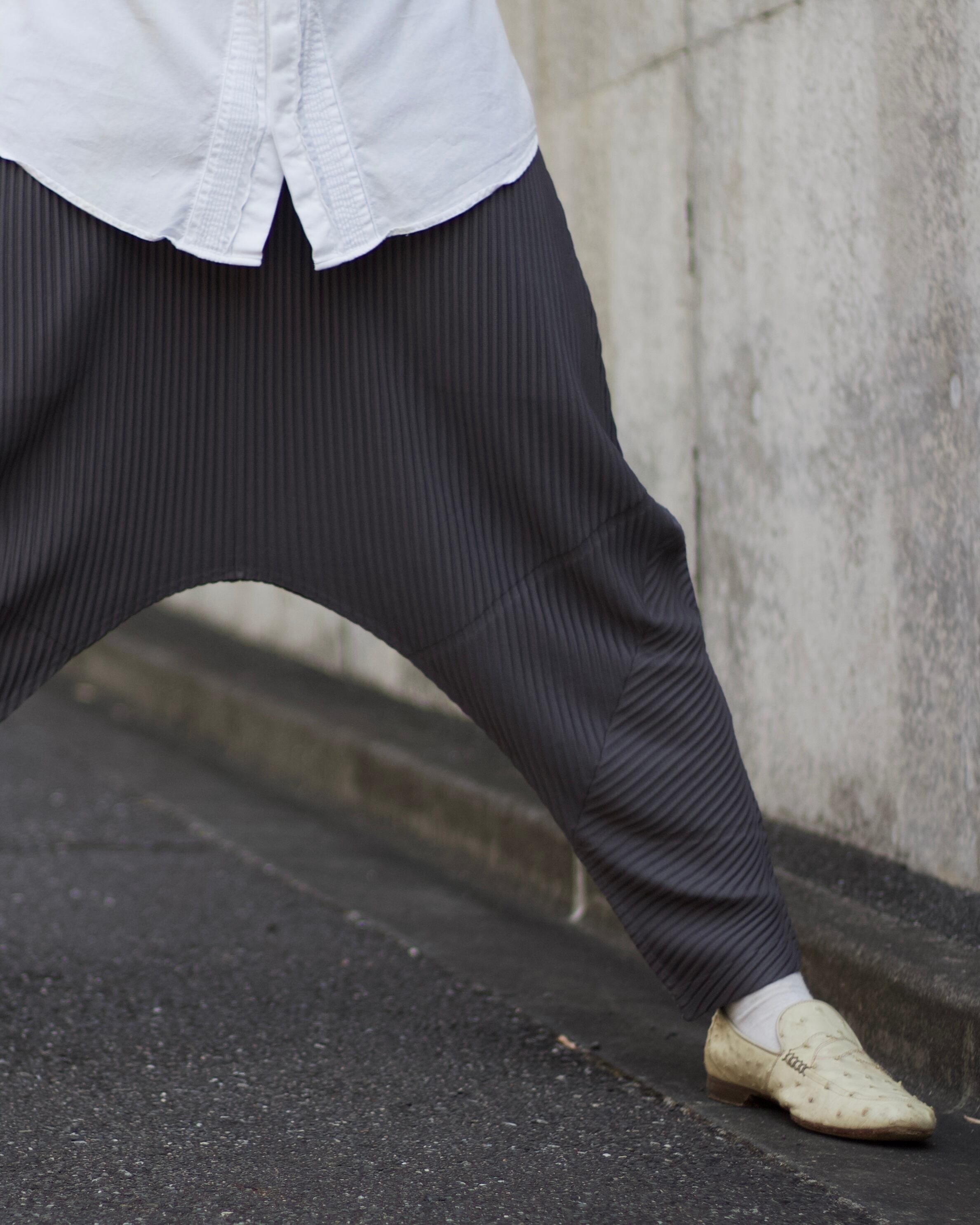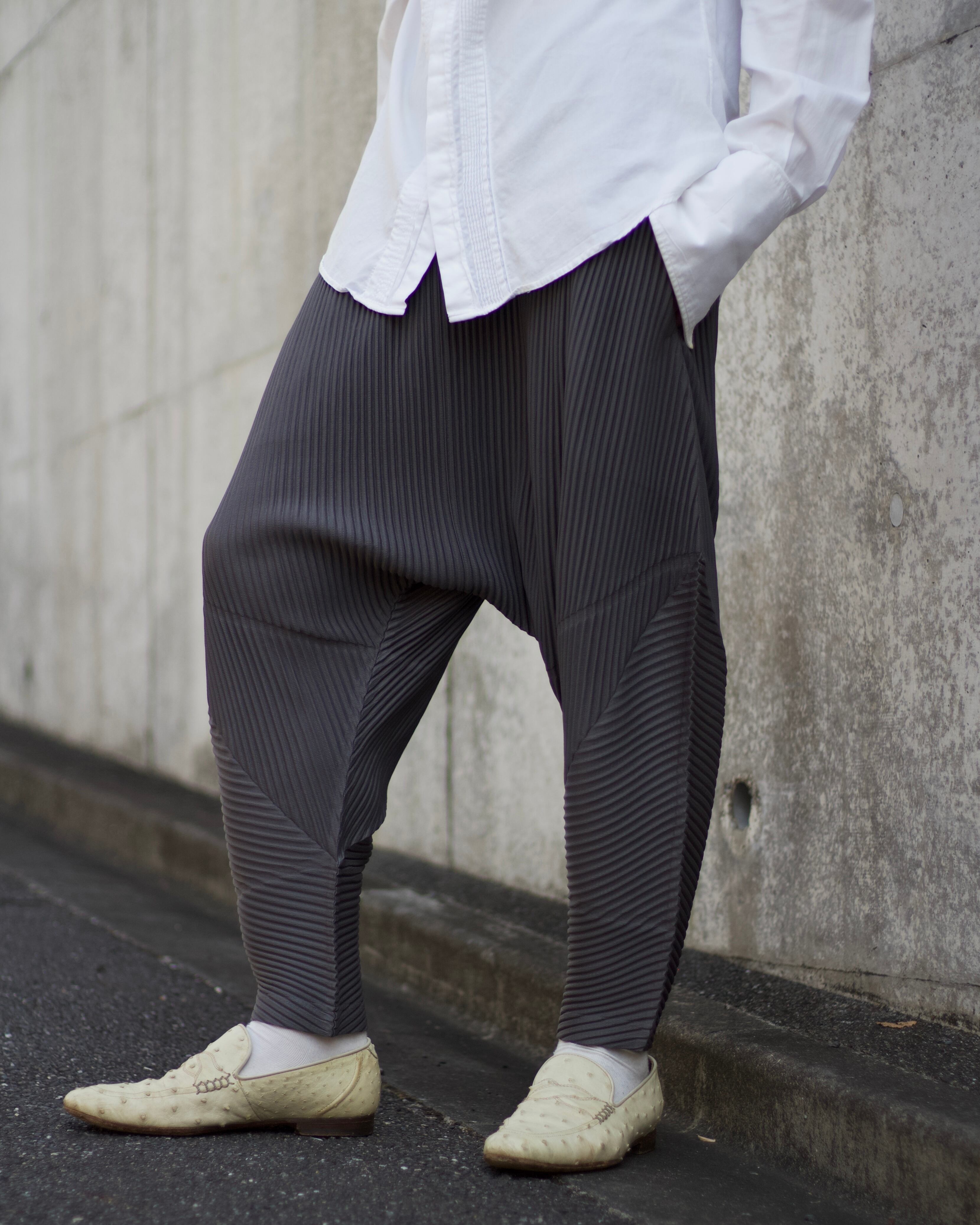 “HOMME PLISSÉ ISSEY MIYAKE" gray pleats sarrouel pants