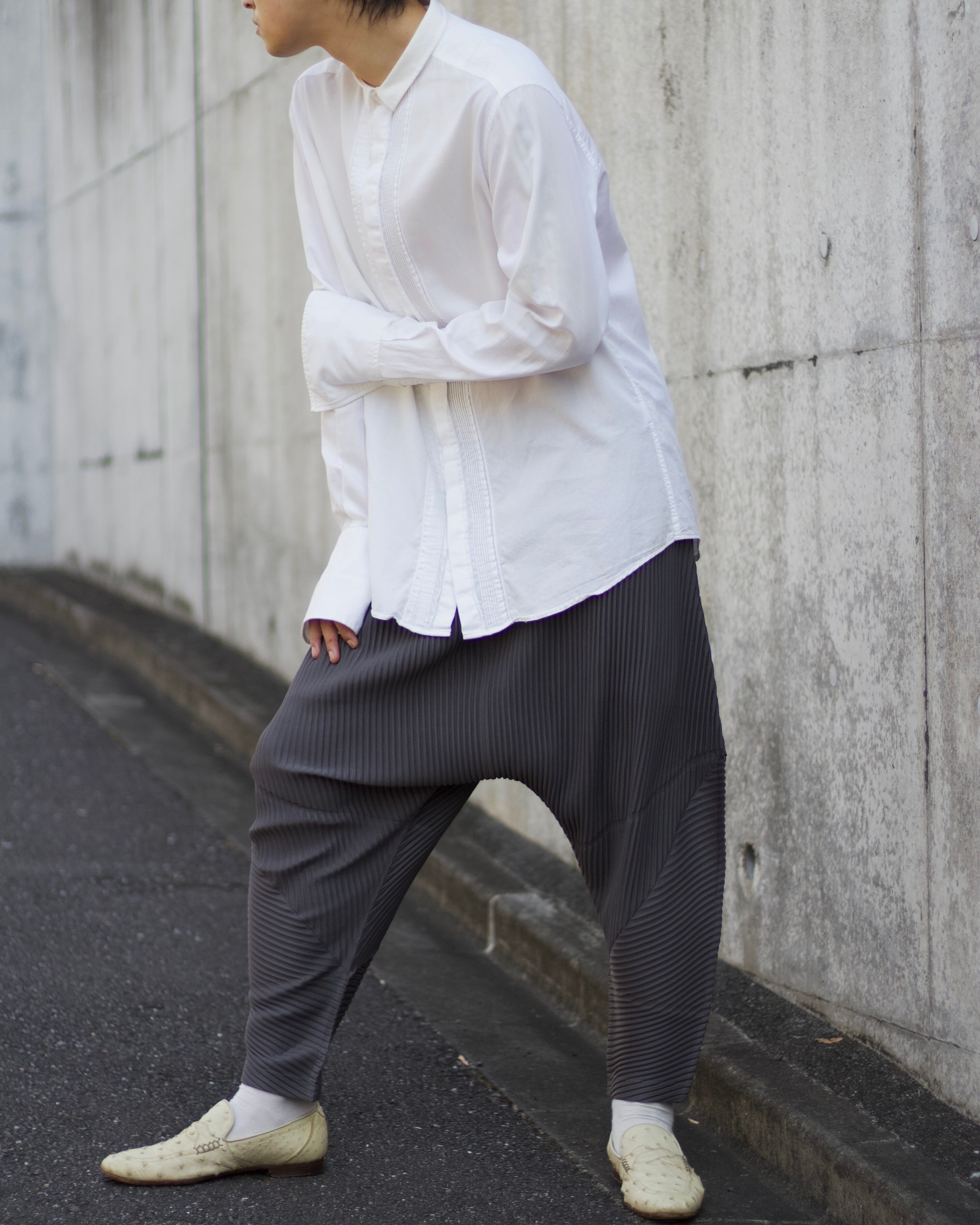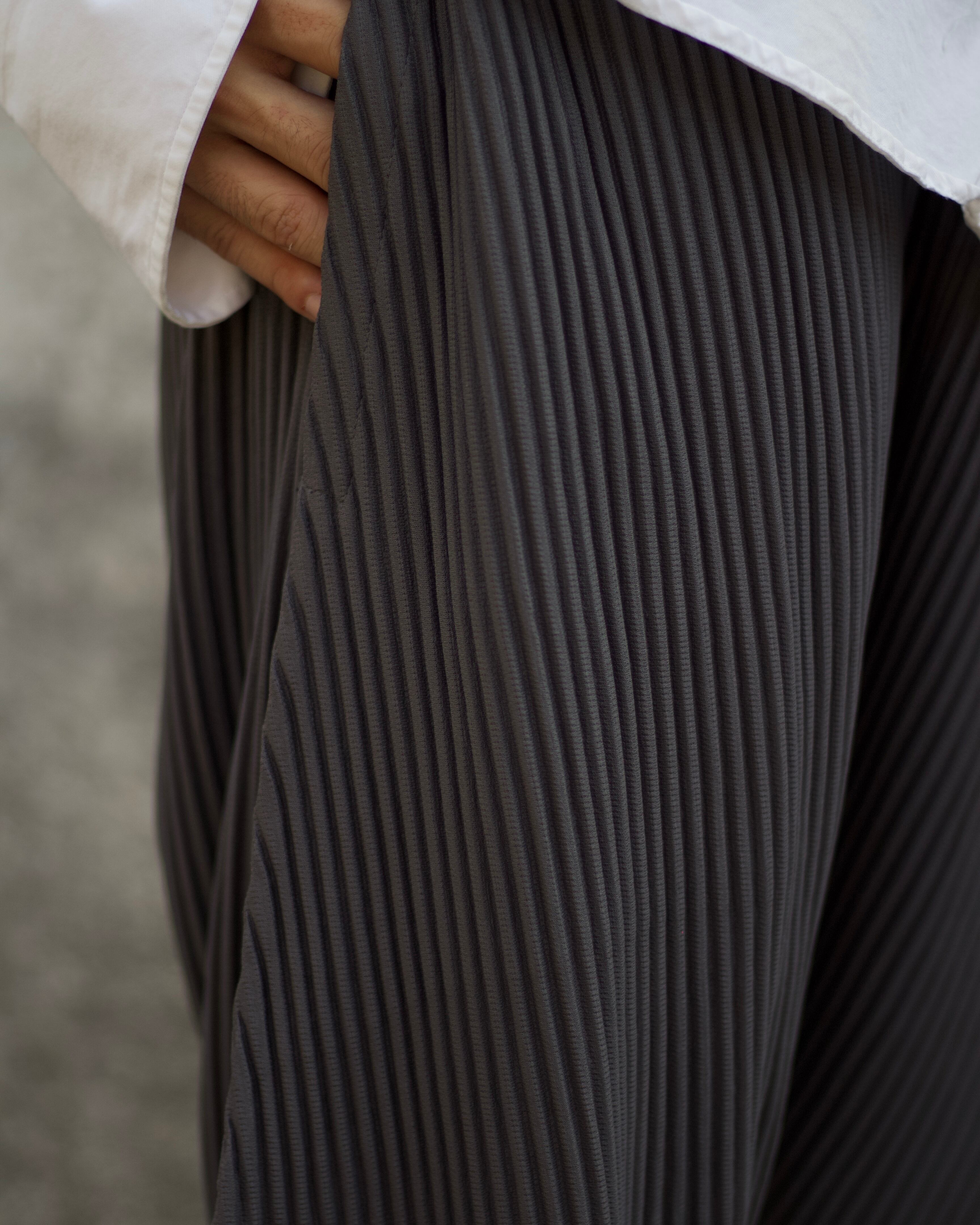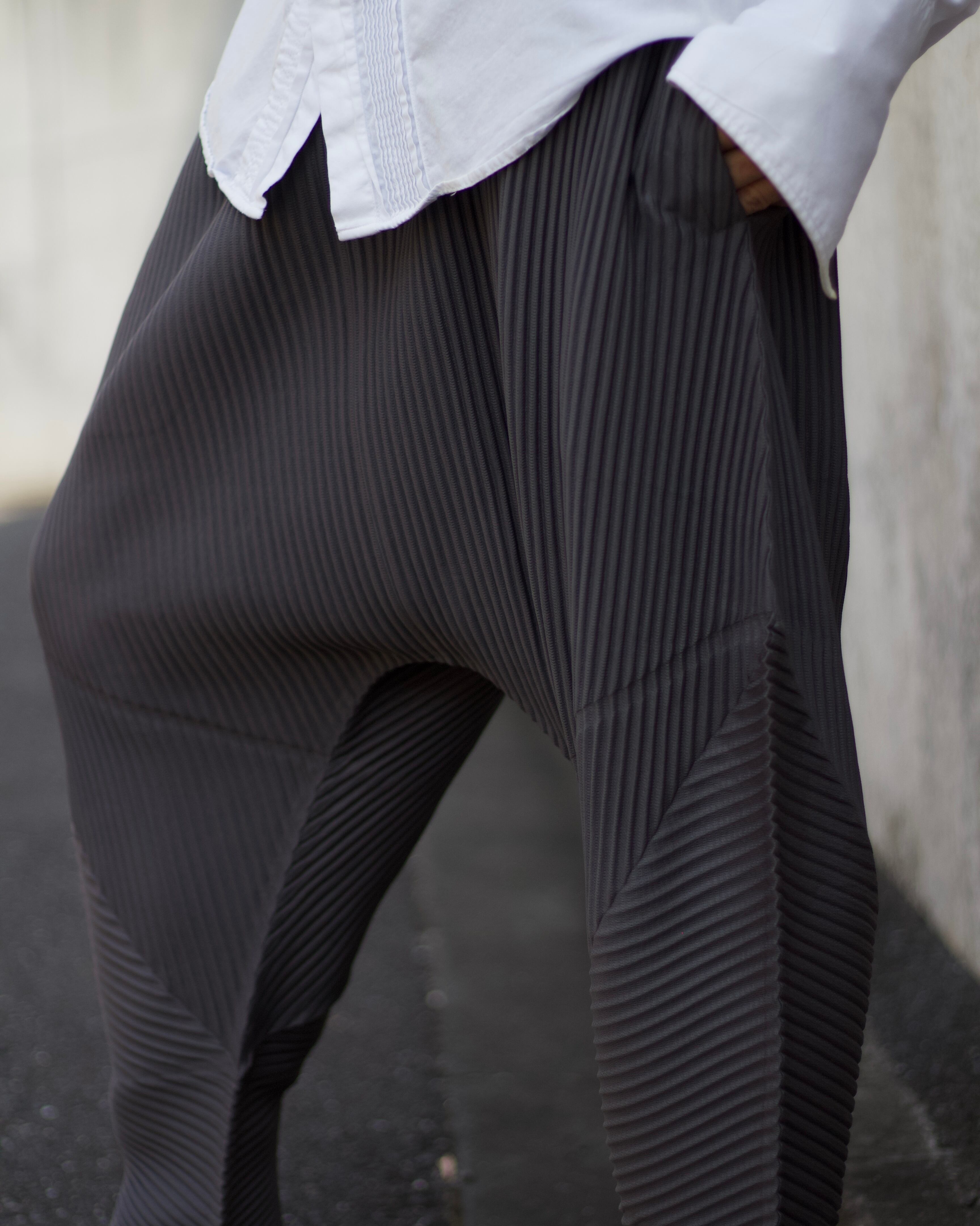 “HOMME PLISSÉ ISSEY MIYAKE" gray pleats sarrouel pants