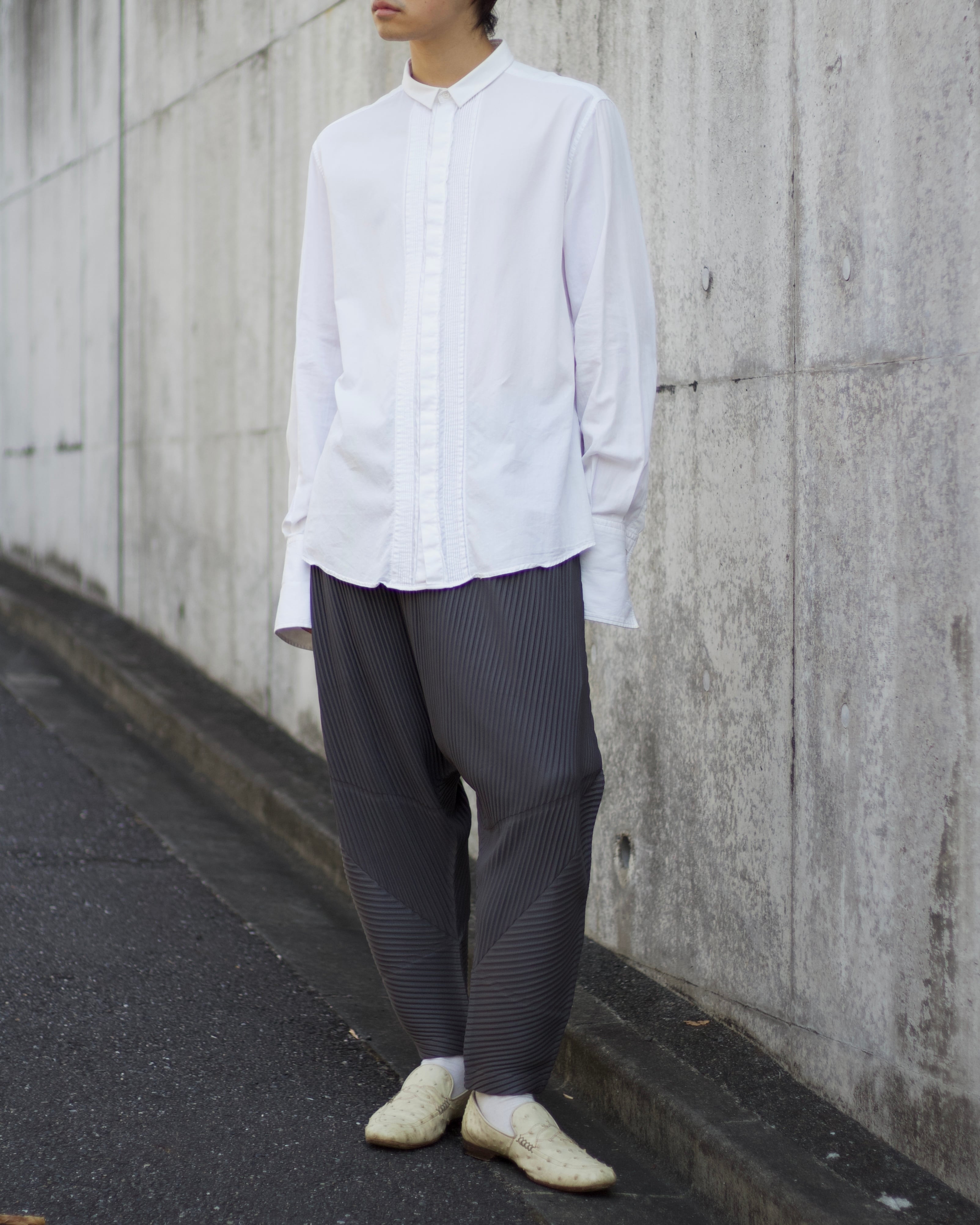 身体のフォルムと動きの研究をしていた際にできたプリーツ。