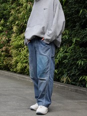 左膝と右膝には別素材のデニムを使用し、リペアが施されておりデザインにも富んでいますね。