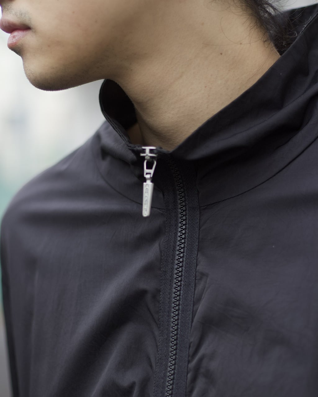 ネックまでジップが締められ、首元まで覆われるような一着。