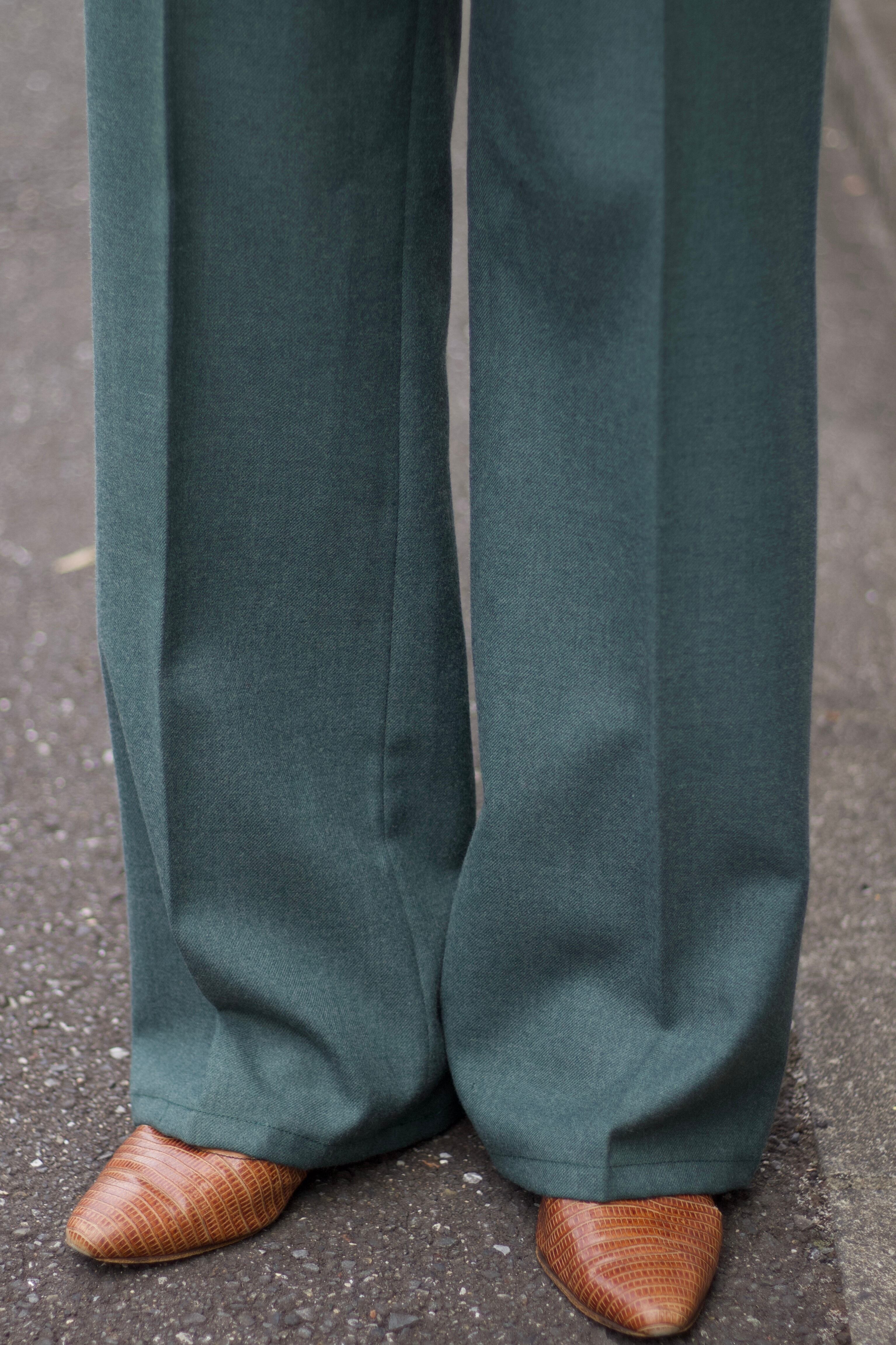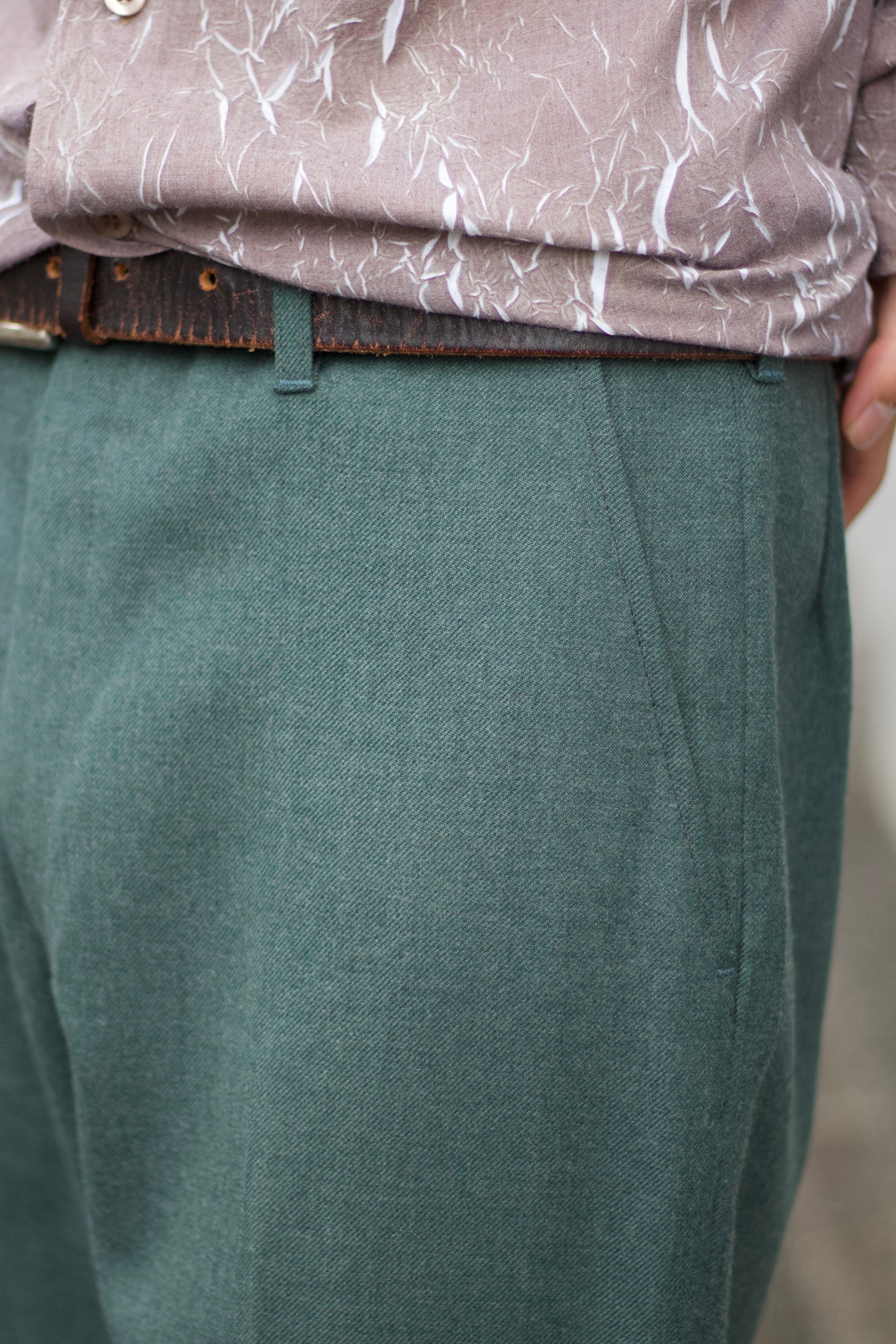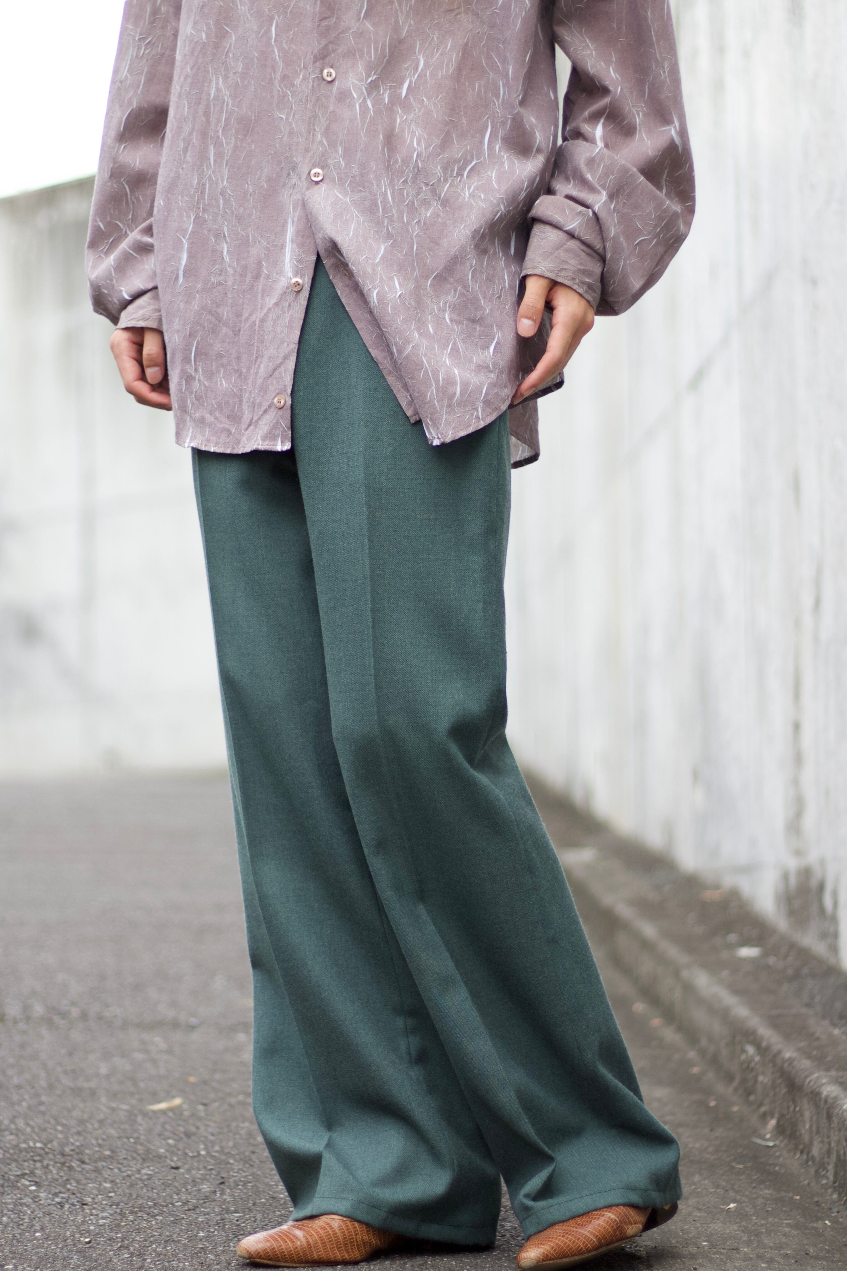 1980s 2 tuck wide slacks smoke green【COOT-3146】