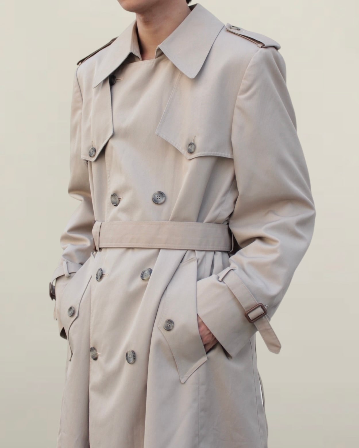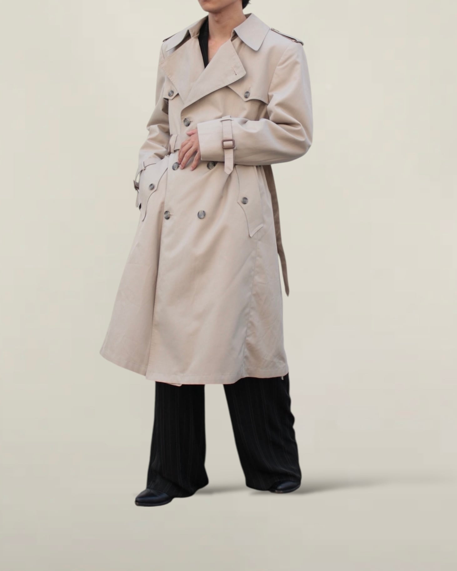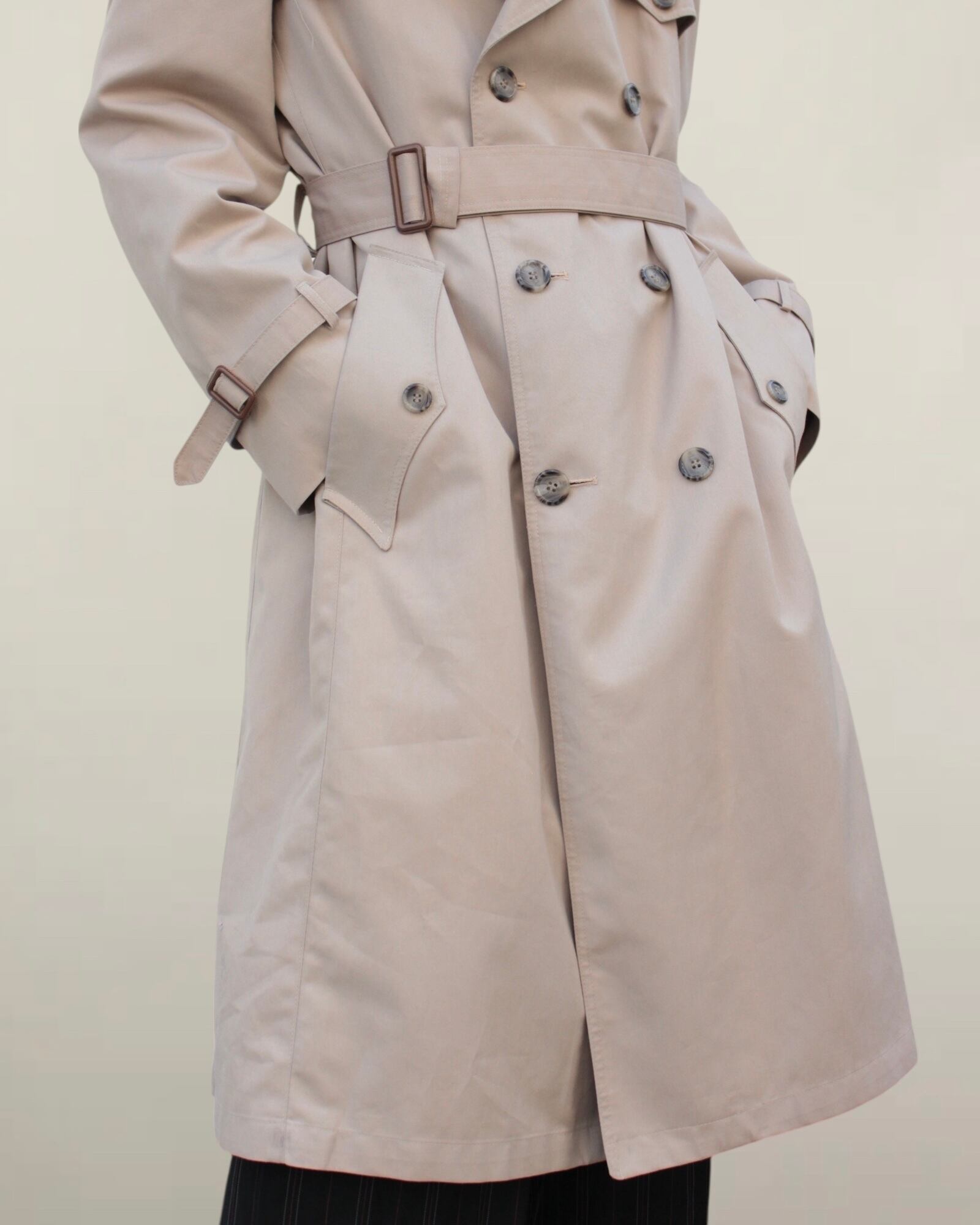 【OTSU】1980's vintage "Christian Dior" cotton gabardine double trench coat -12263-