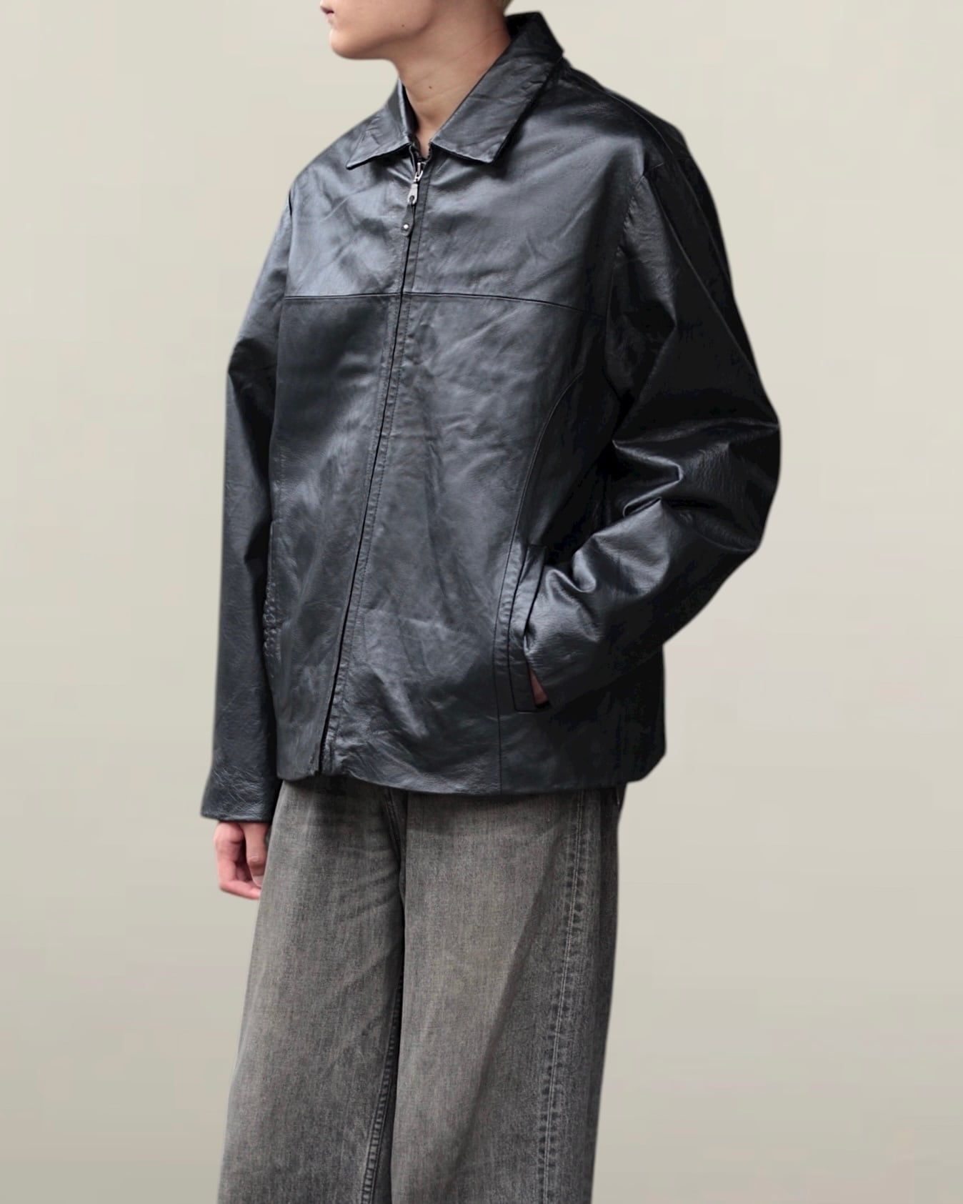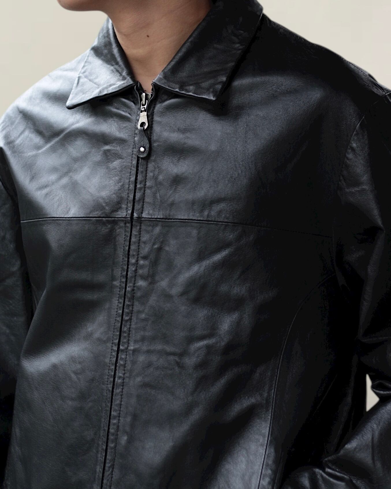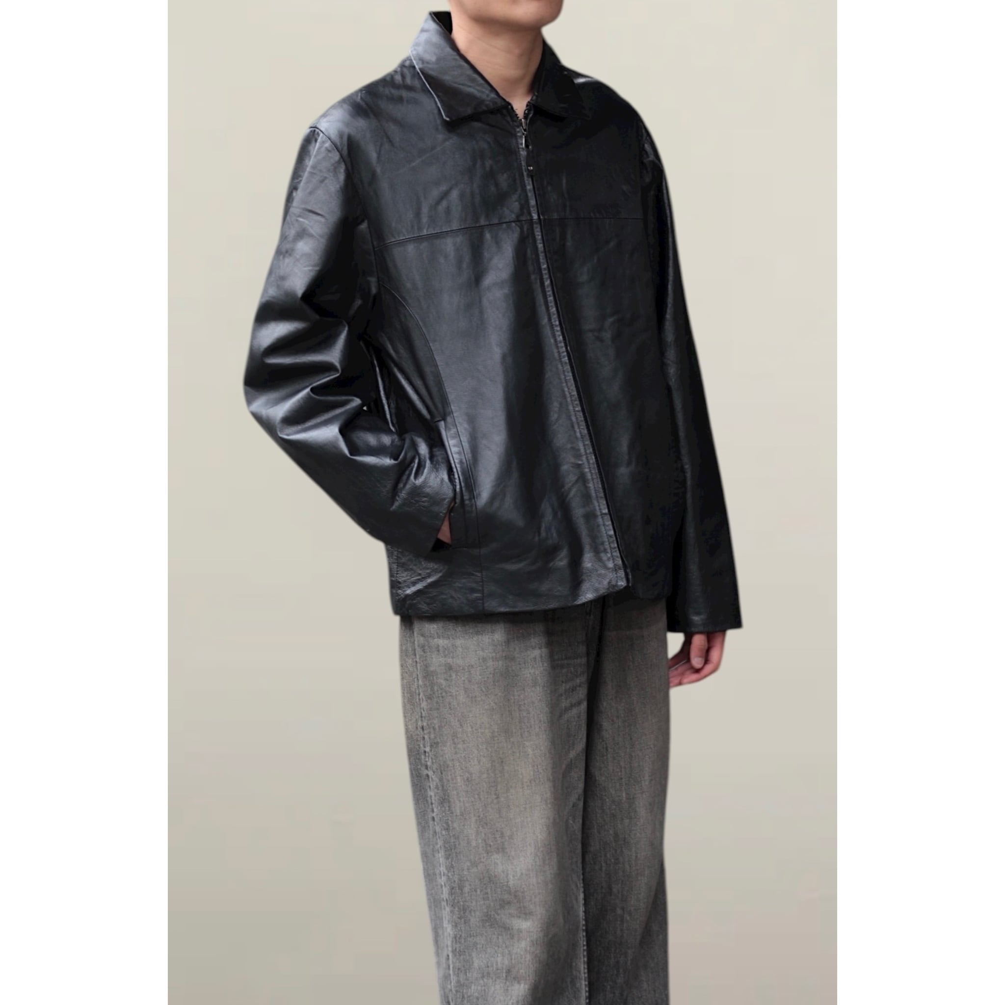 【OTSU】1990's zip up motimoti leather blouson -12261-