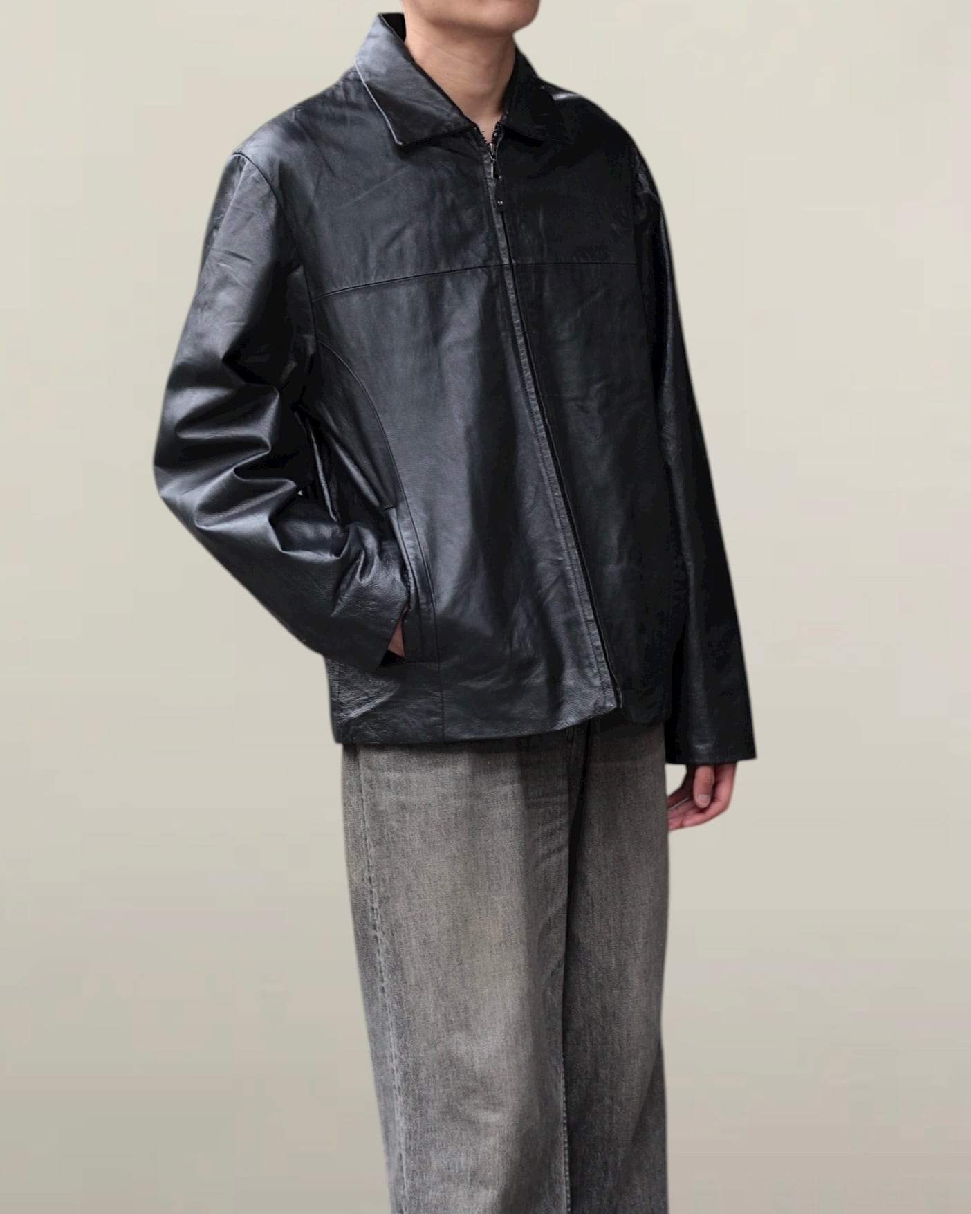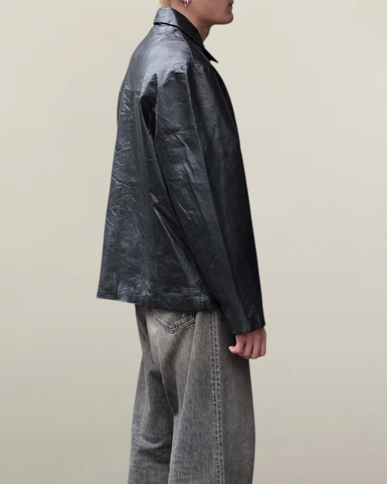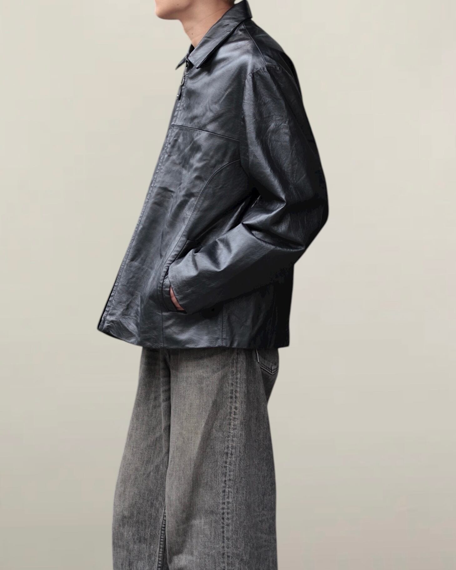 【OTSU】1990's zip up motimoti leather blouson -12261-