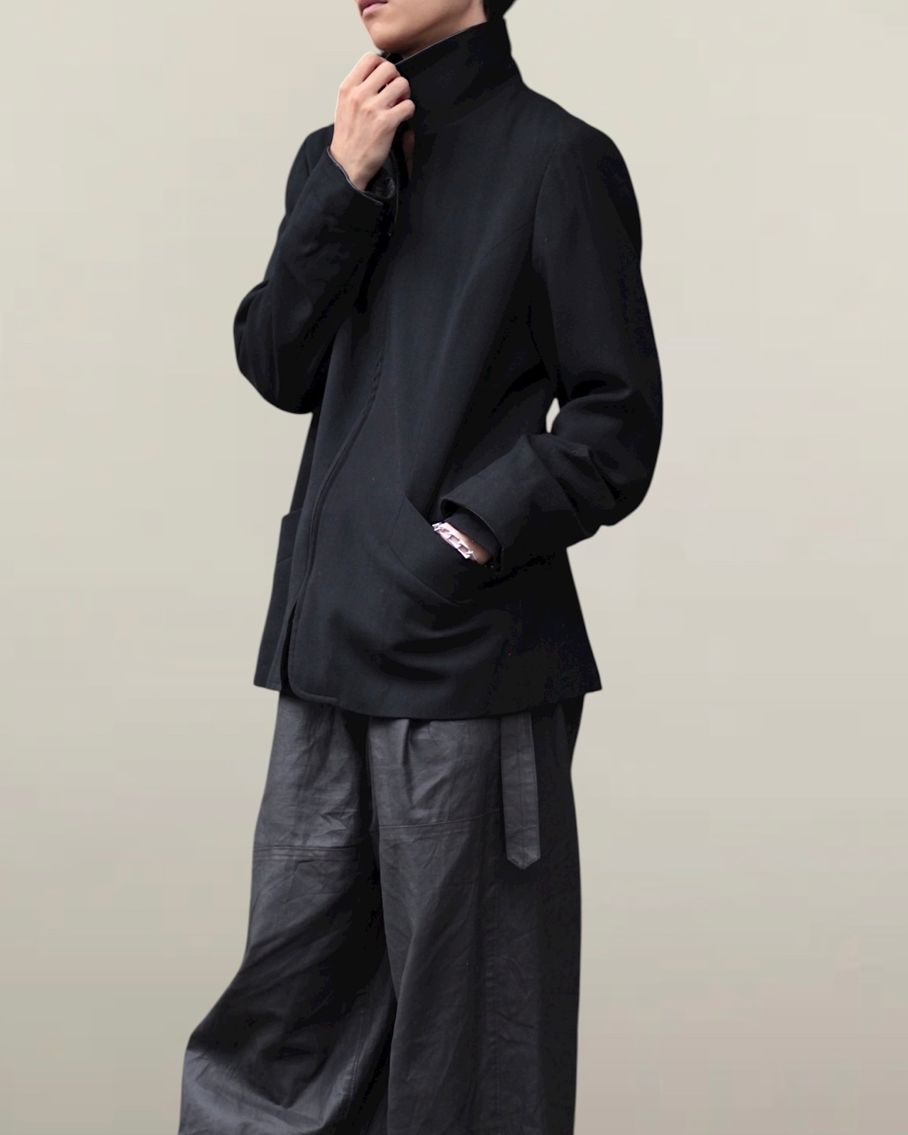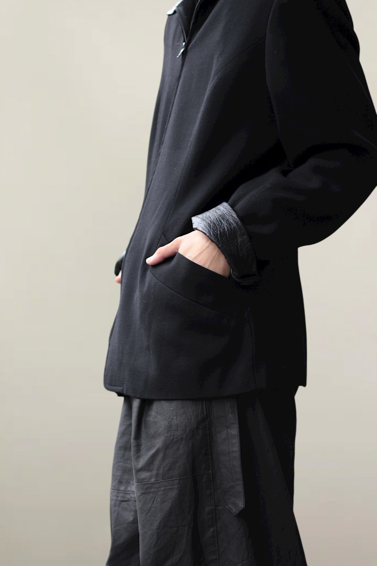 ブラックの1トーンですが、質感の遊びが効いた
