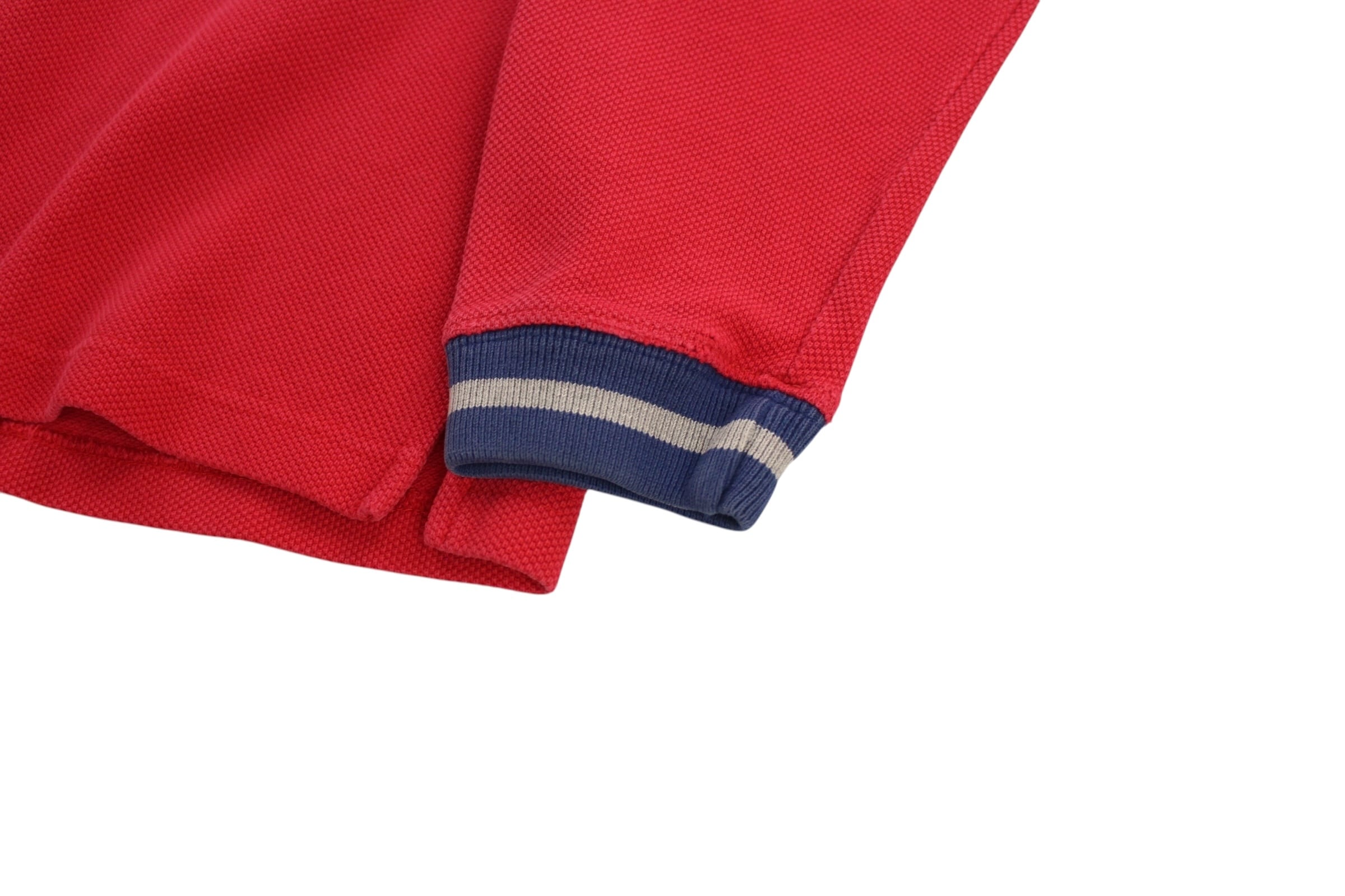 パキッと可愛らしさを残した赤に、手首とネックのカラー切替デザインの1着