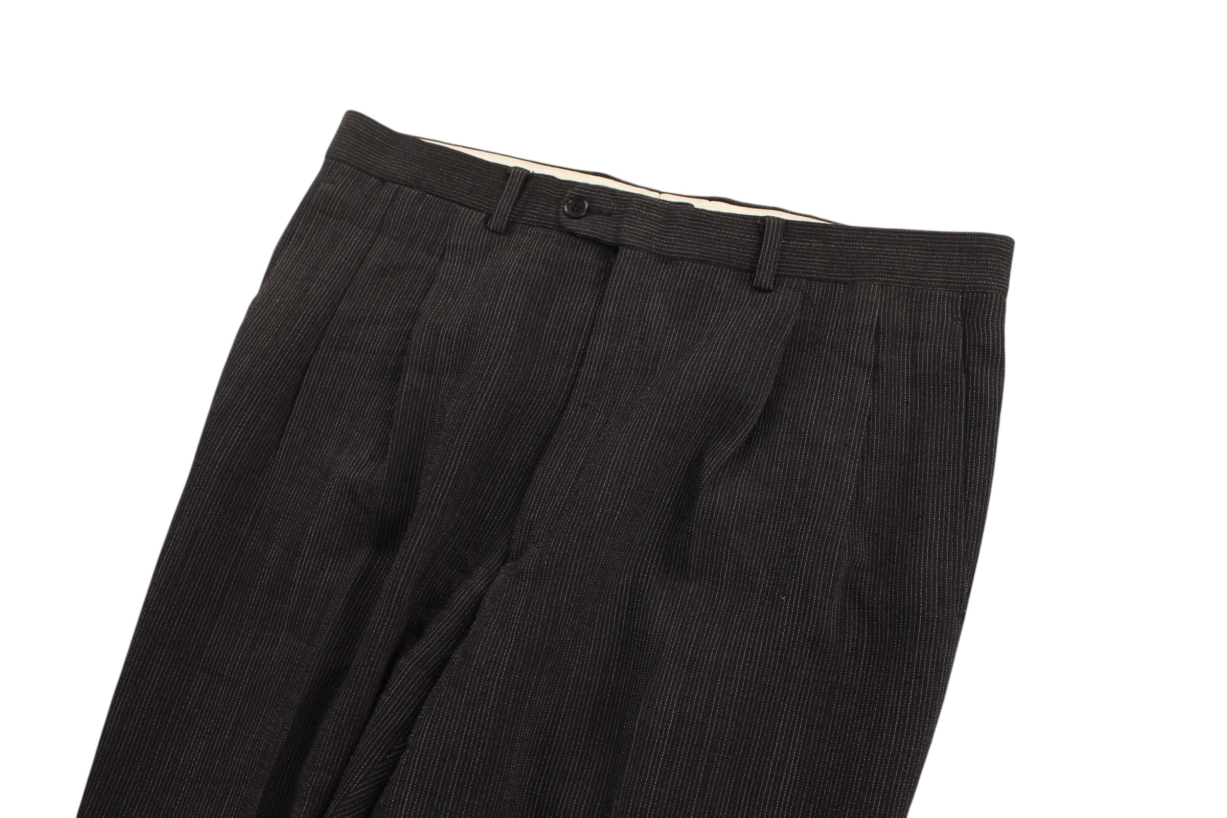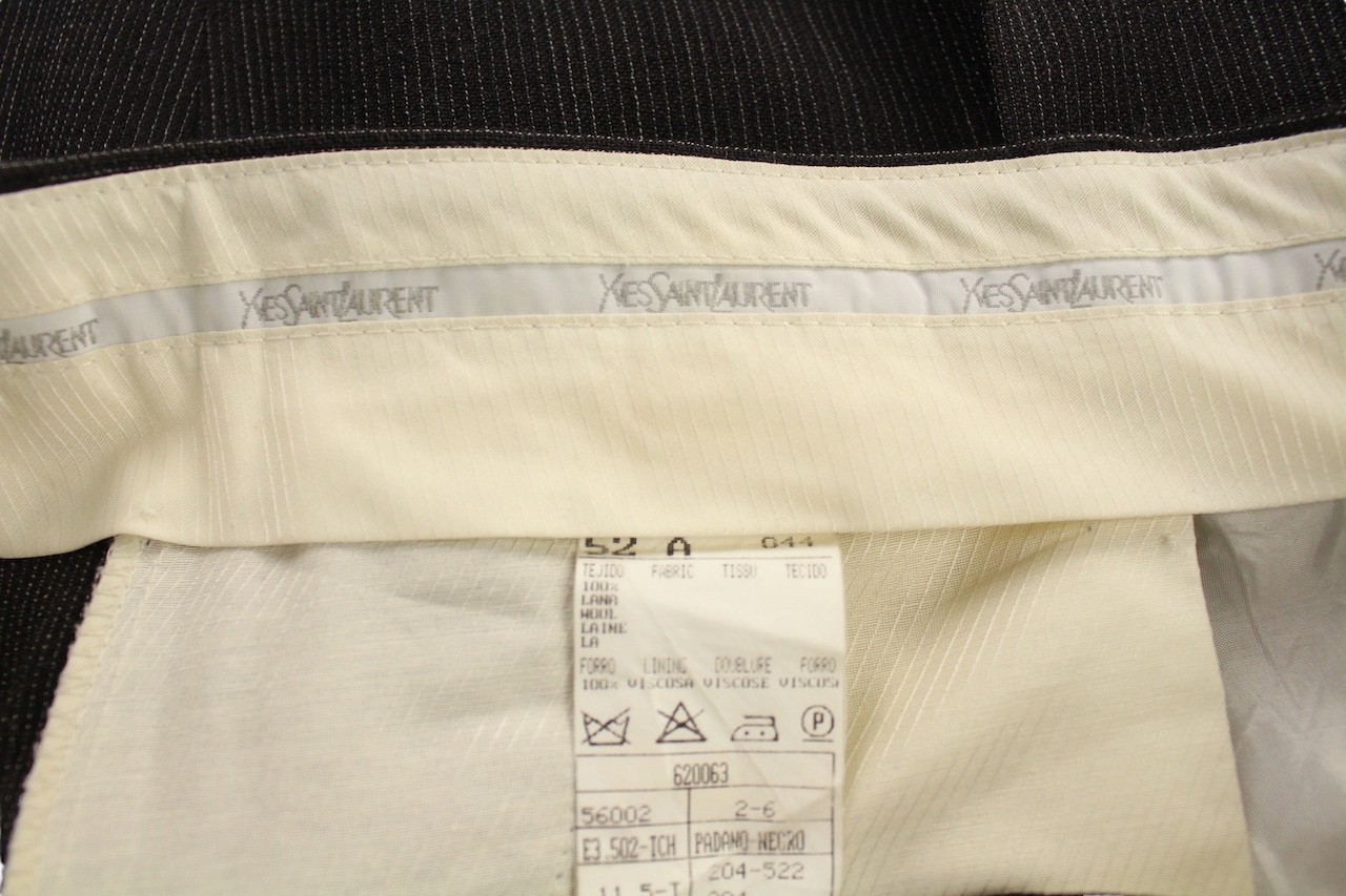 1980s〜90s vintage "Yves Saint Laurent" pin-stripe wide 2-tuck slacks【CU-8725】