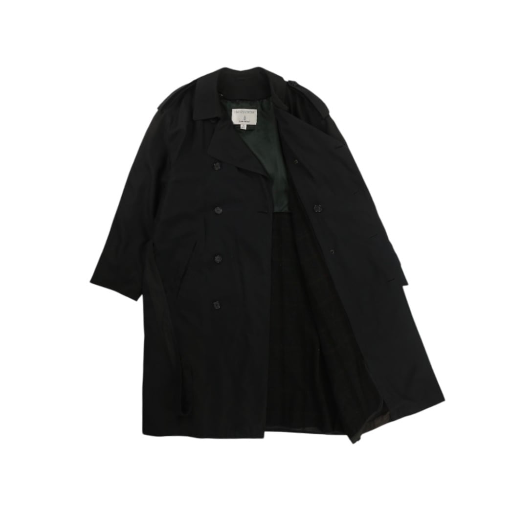 1990s smooth black trench coat with belt&lining 【OTTK-4490】