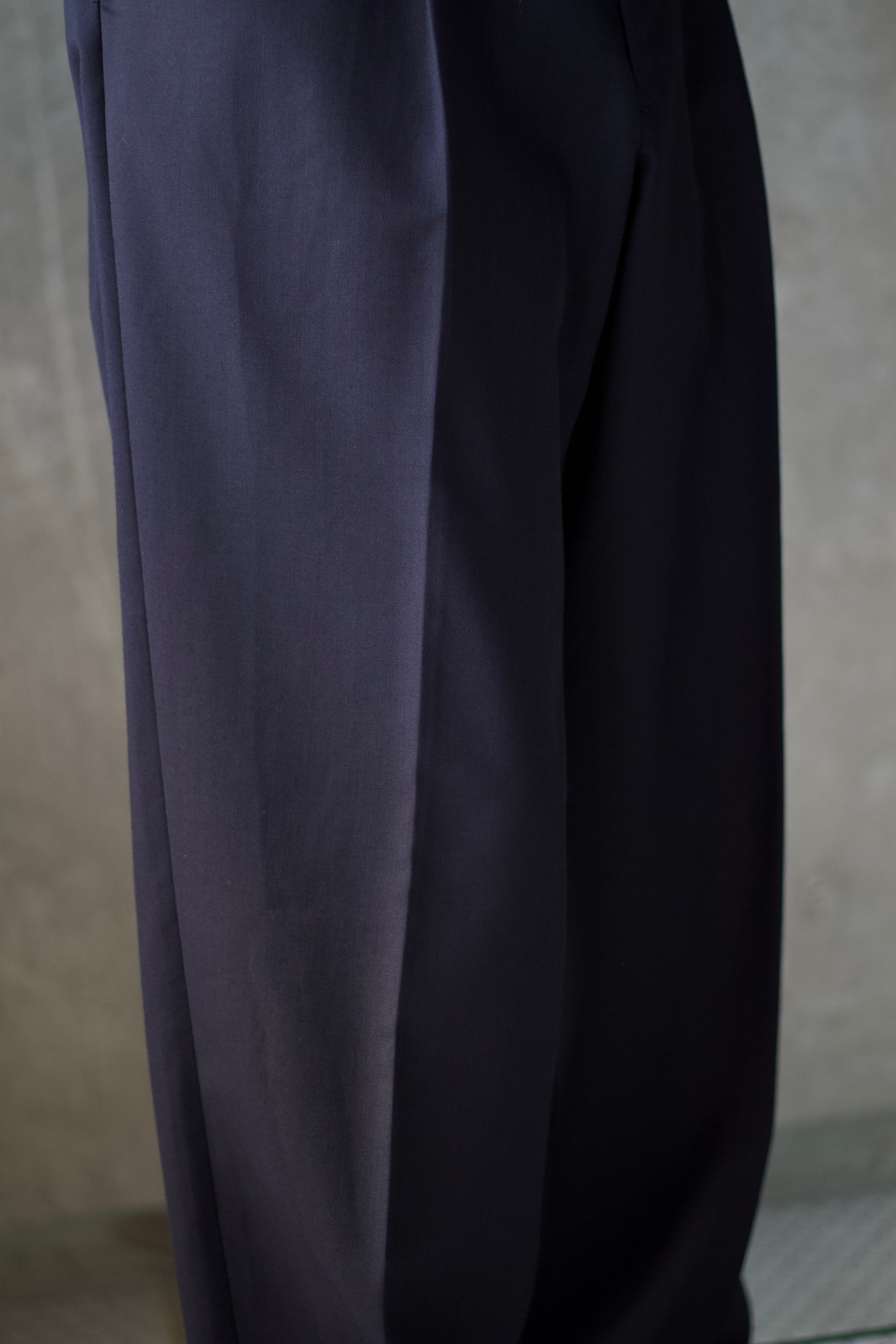 Christian Diorからおもいネイビーで、綺麗なシルエットの1タックスラックスです。