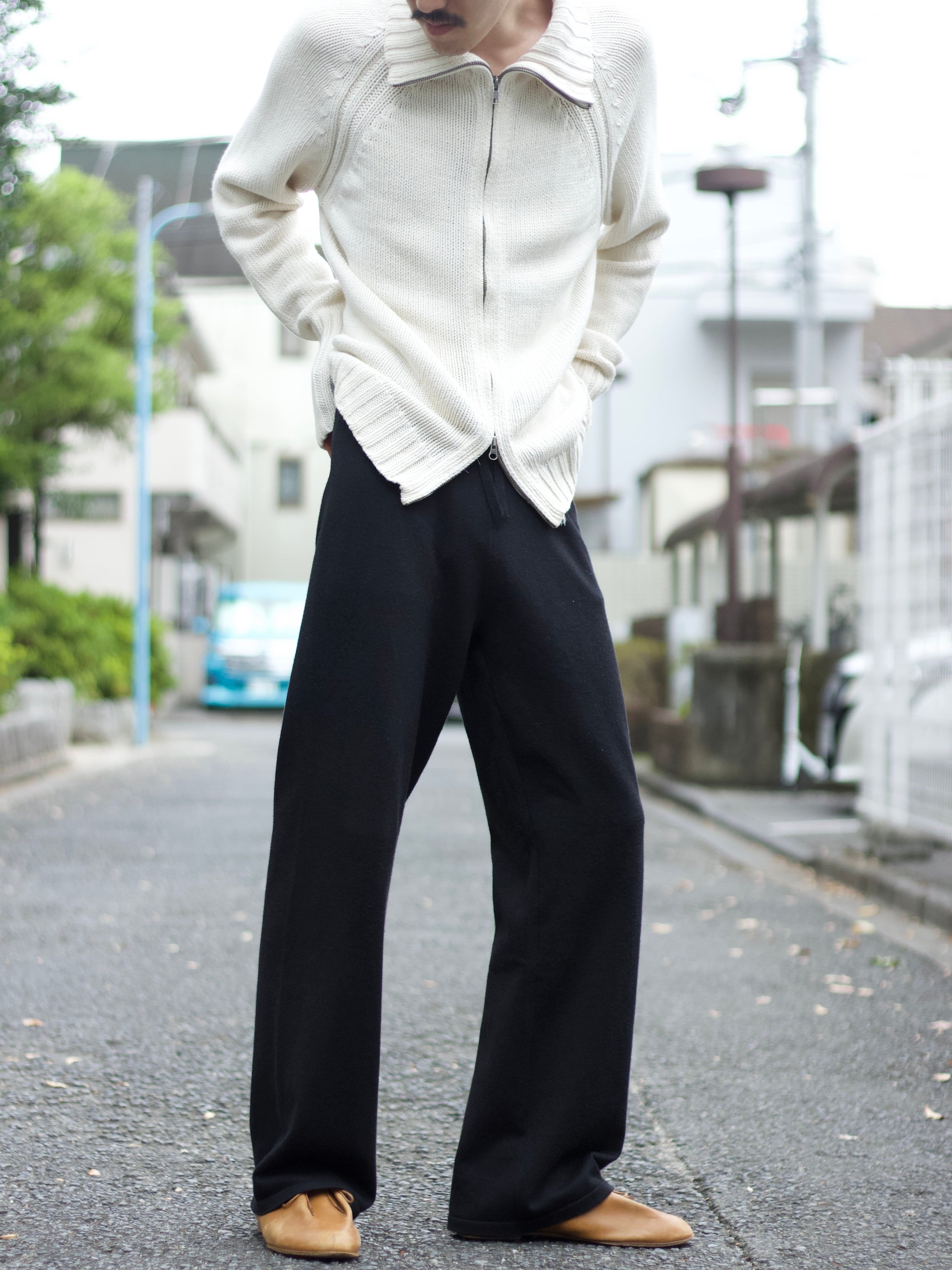 ニットパンツは、ドローコード付くものは珍しいです☺︎シルエットも太すぎず、細すぎずいい太さがありストレートシルエットは格別です。