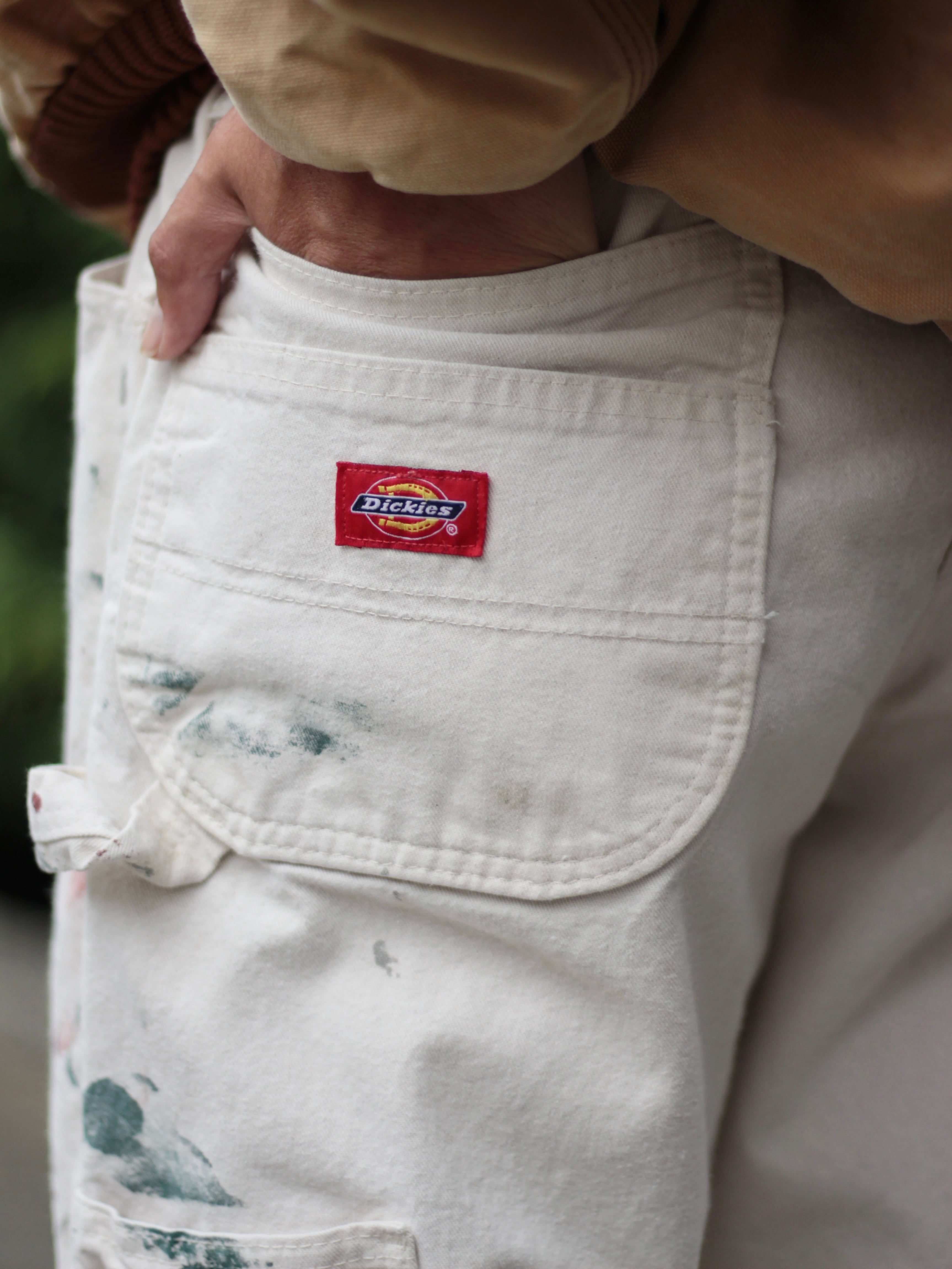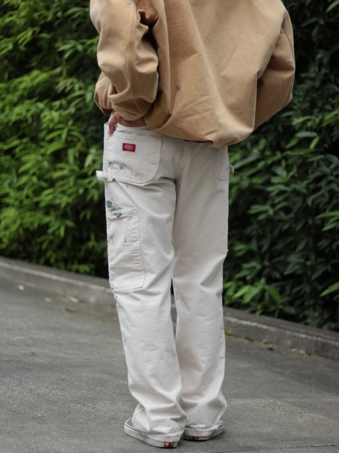 その相棒としてDickesのホワイトコットンペインターパンツの提案を。