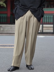 しっかりと足から離れたワイドシルエットはどんなトップスにも馴染みます。テーパードも弱で汎用性高いシルエットですね