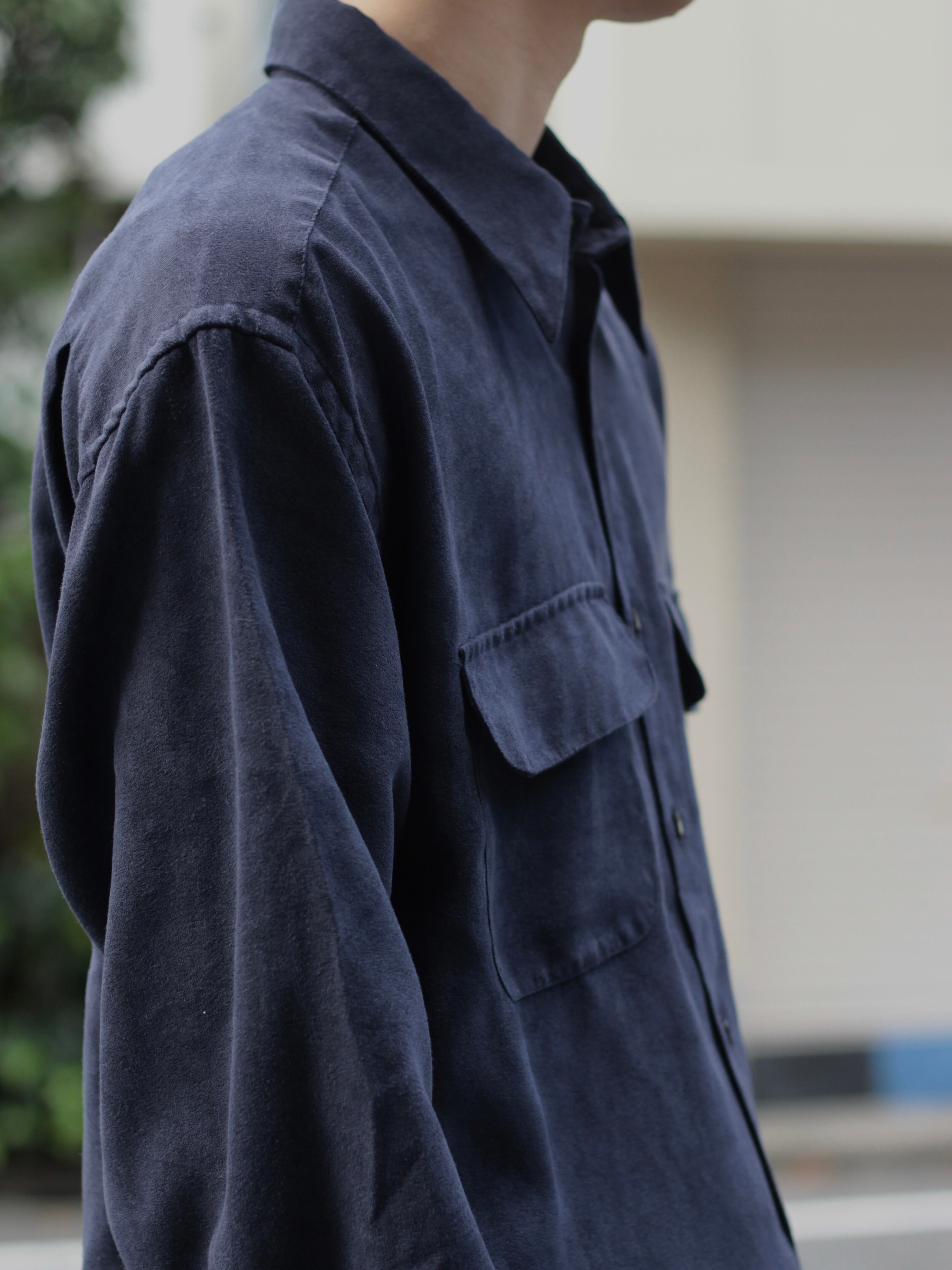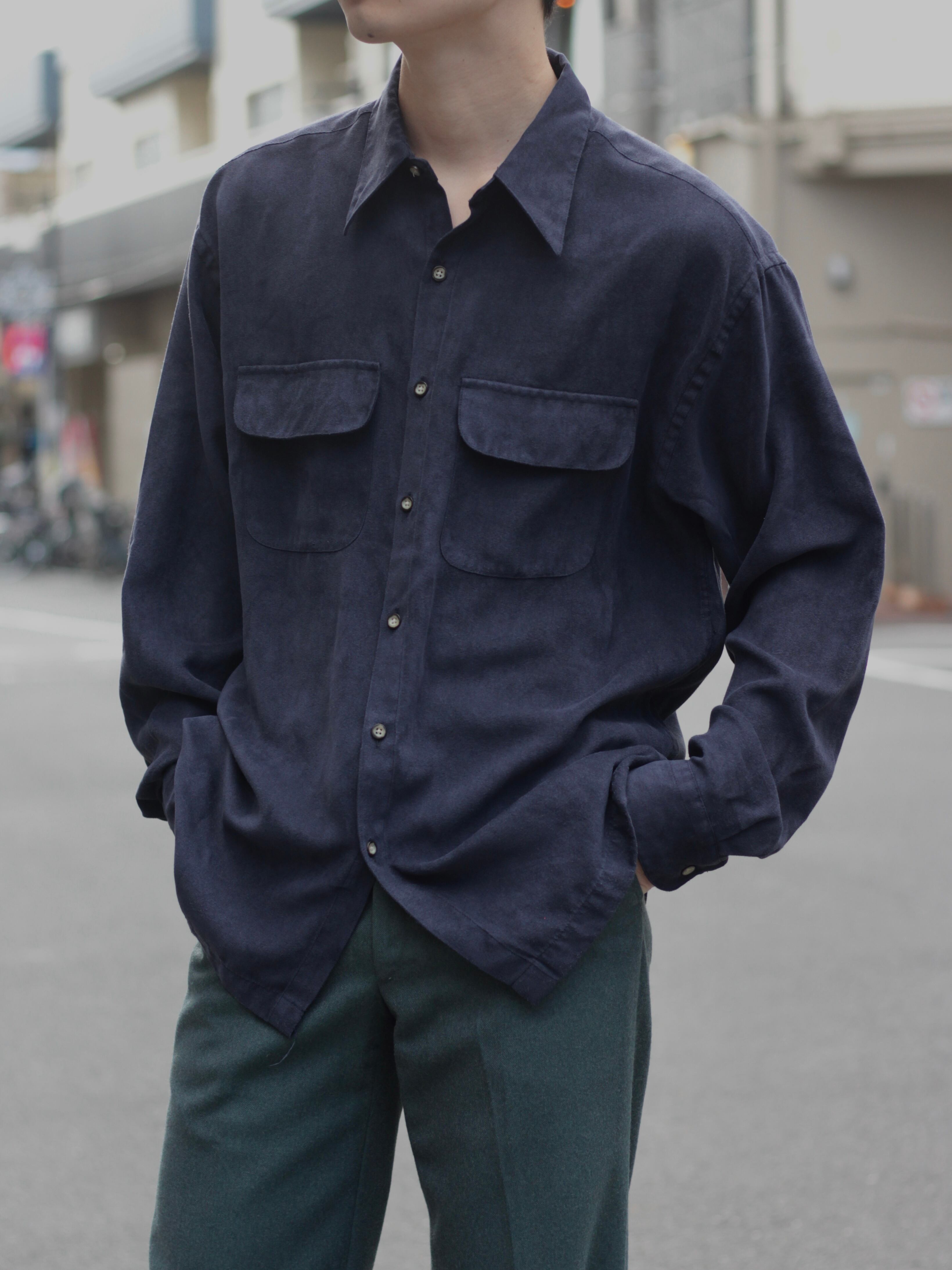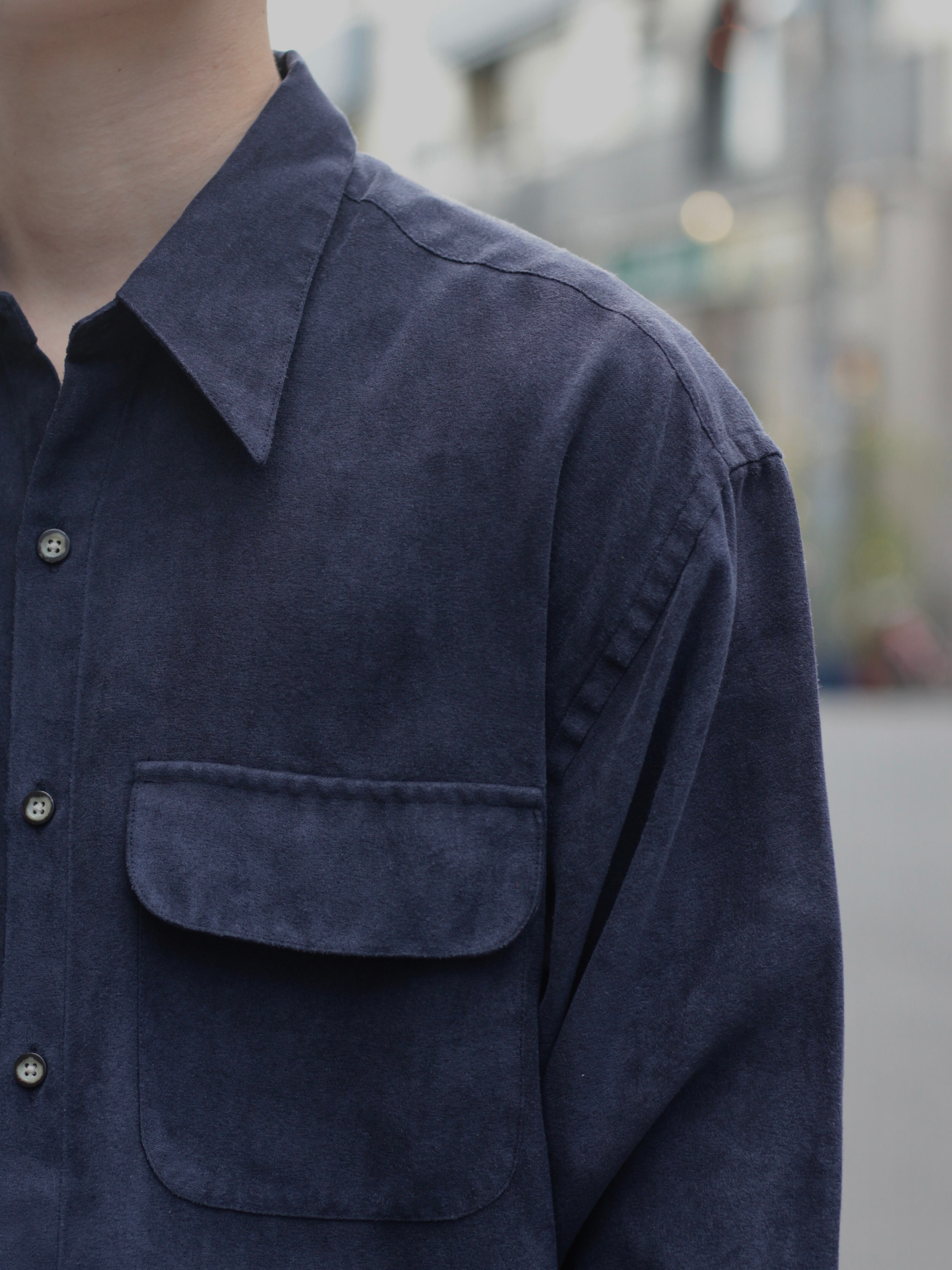 1990s "VANHUSEN" dark navy color fake suède shirts【CU-8782】