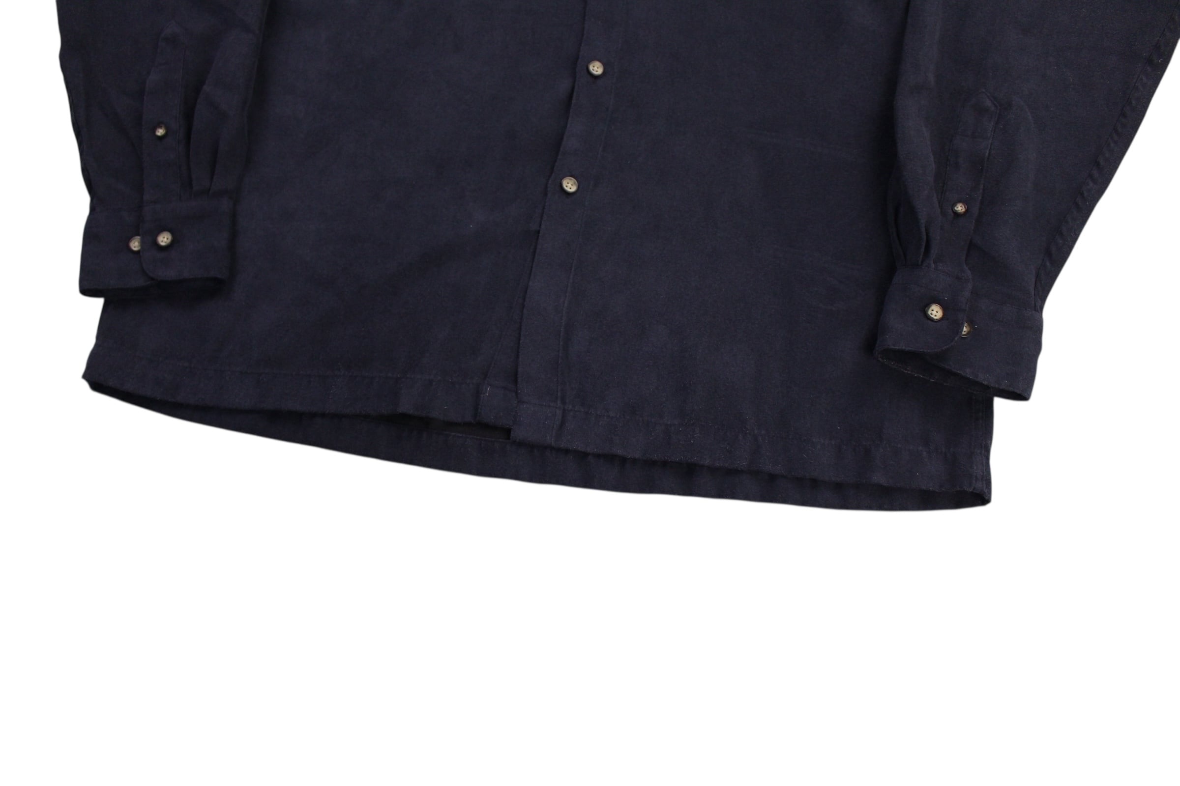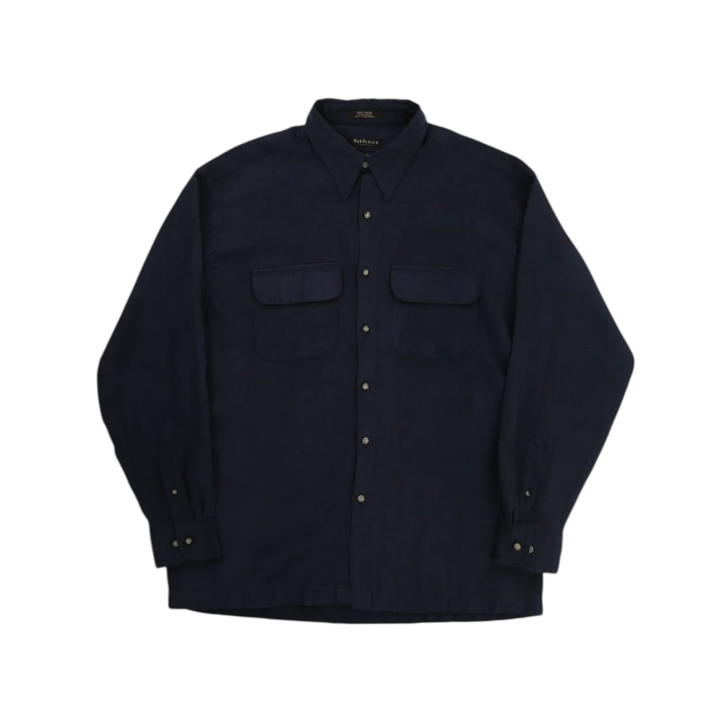 1990s "VANHUSEN" dark navy color fake suède shirts