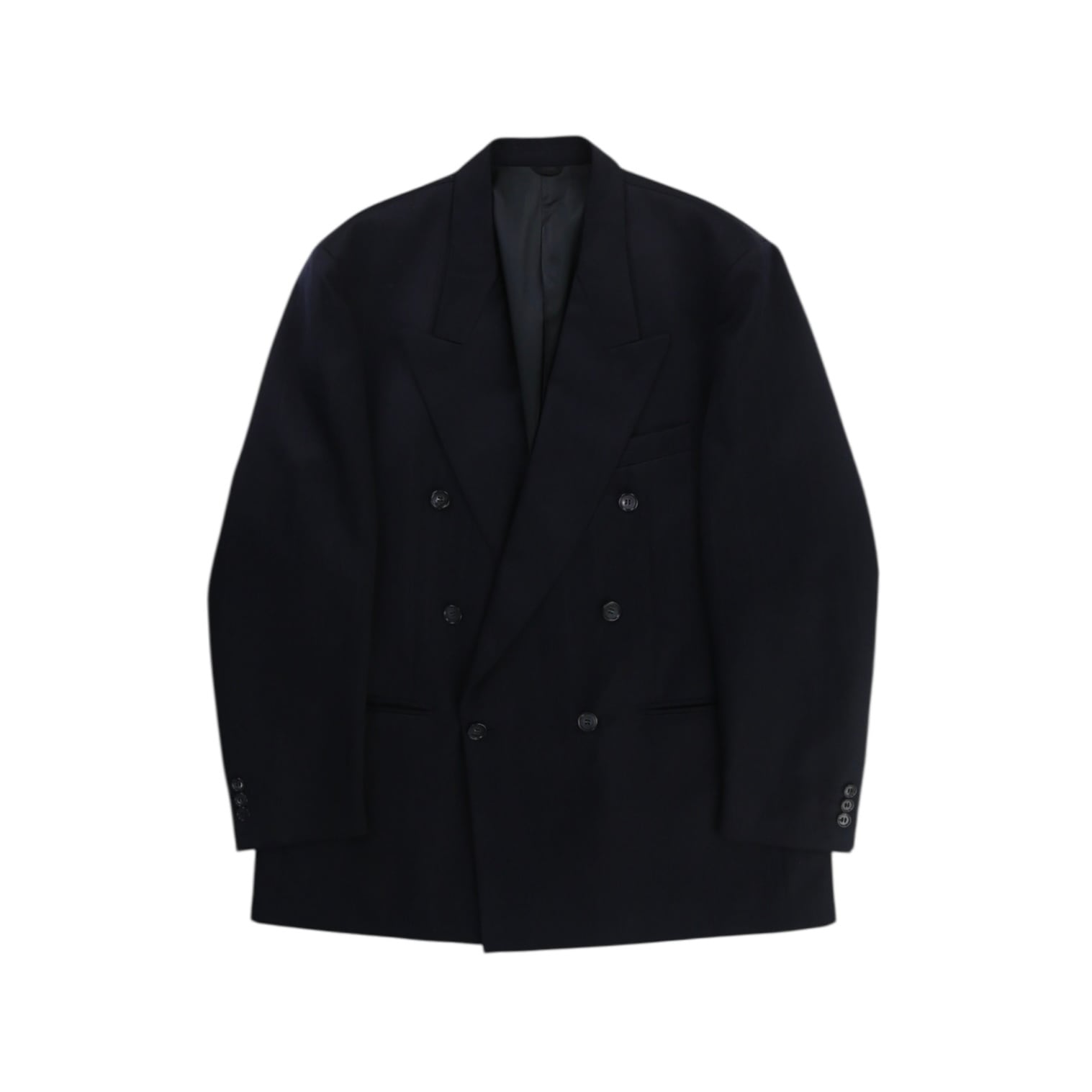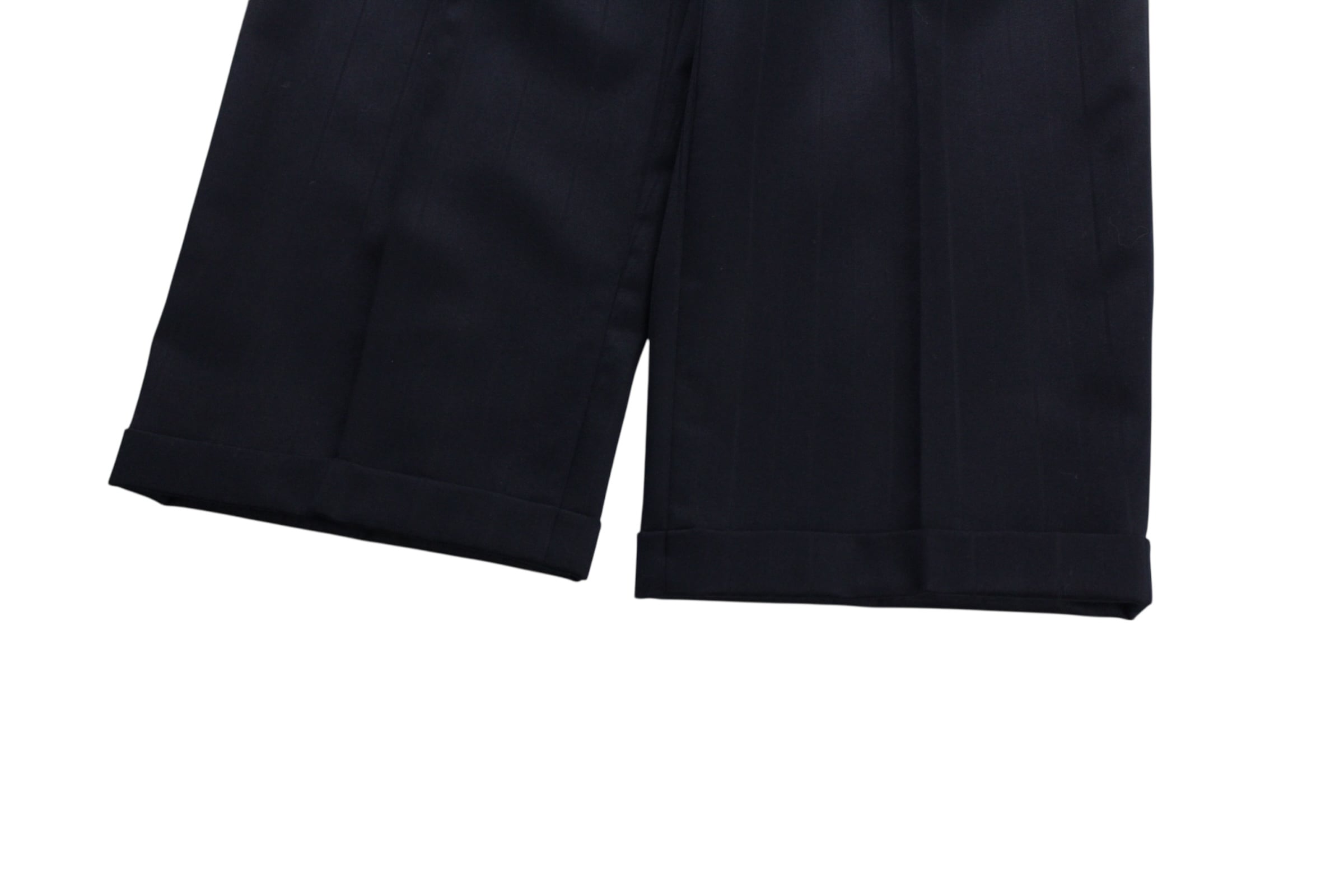 ツヤッツヤのネイビー地にストライプのダブルセットアップです◎