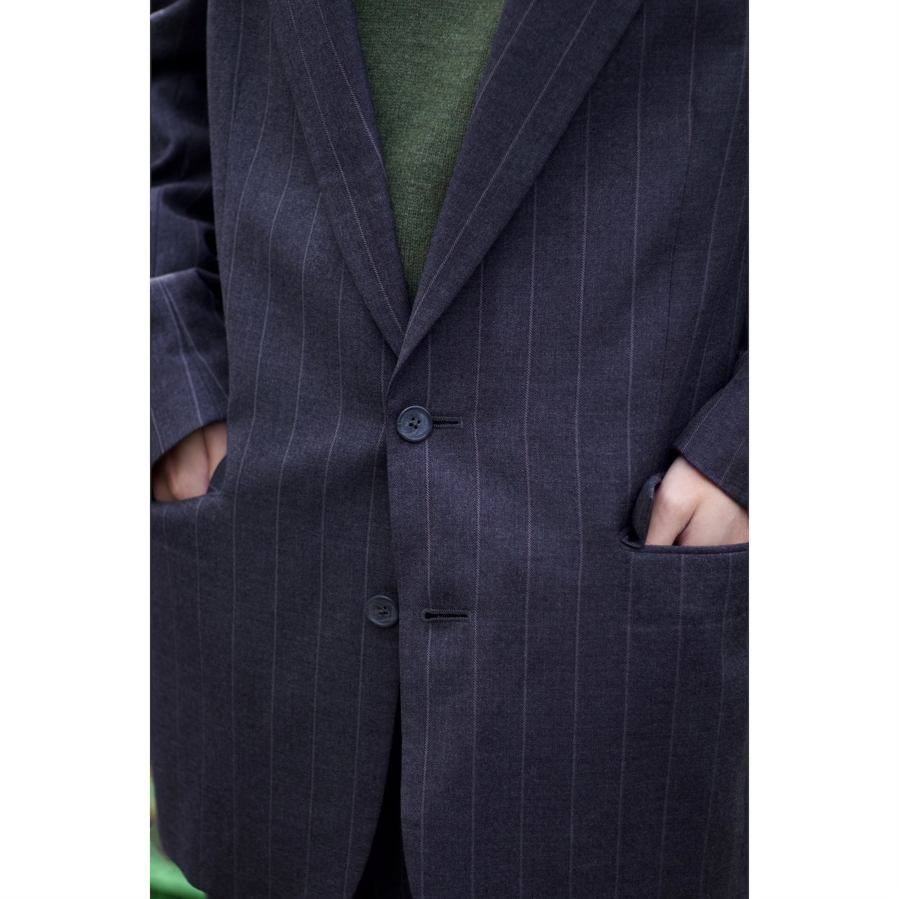 しなやかで着やすく、グレーストライプはクラシックながらもモダンな雰囲気が美しいセットアップとなってます