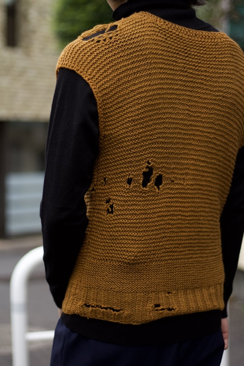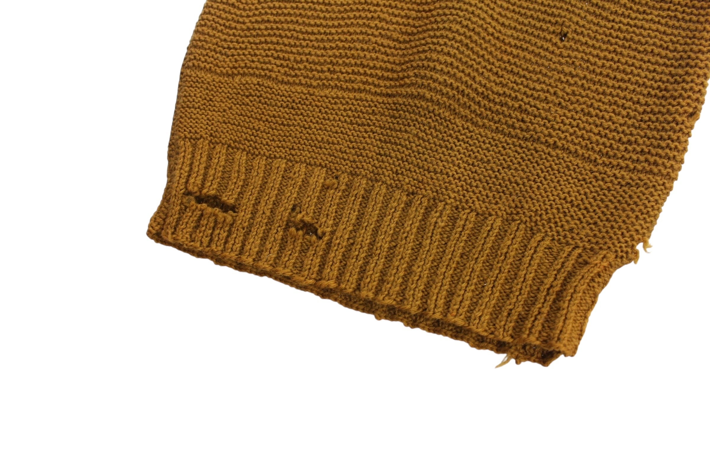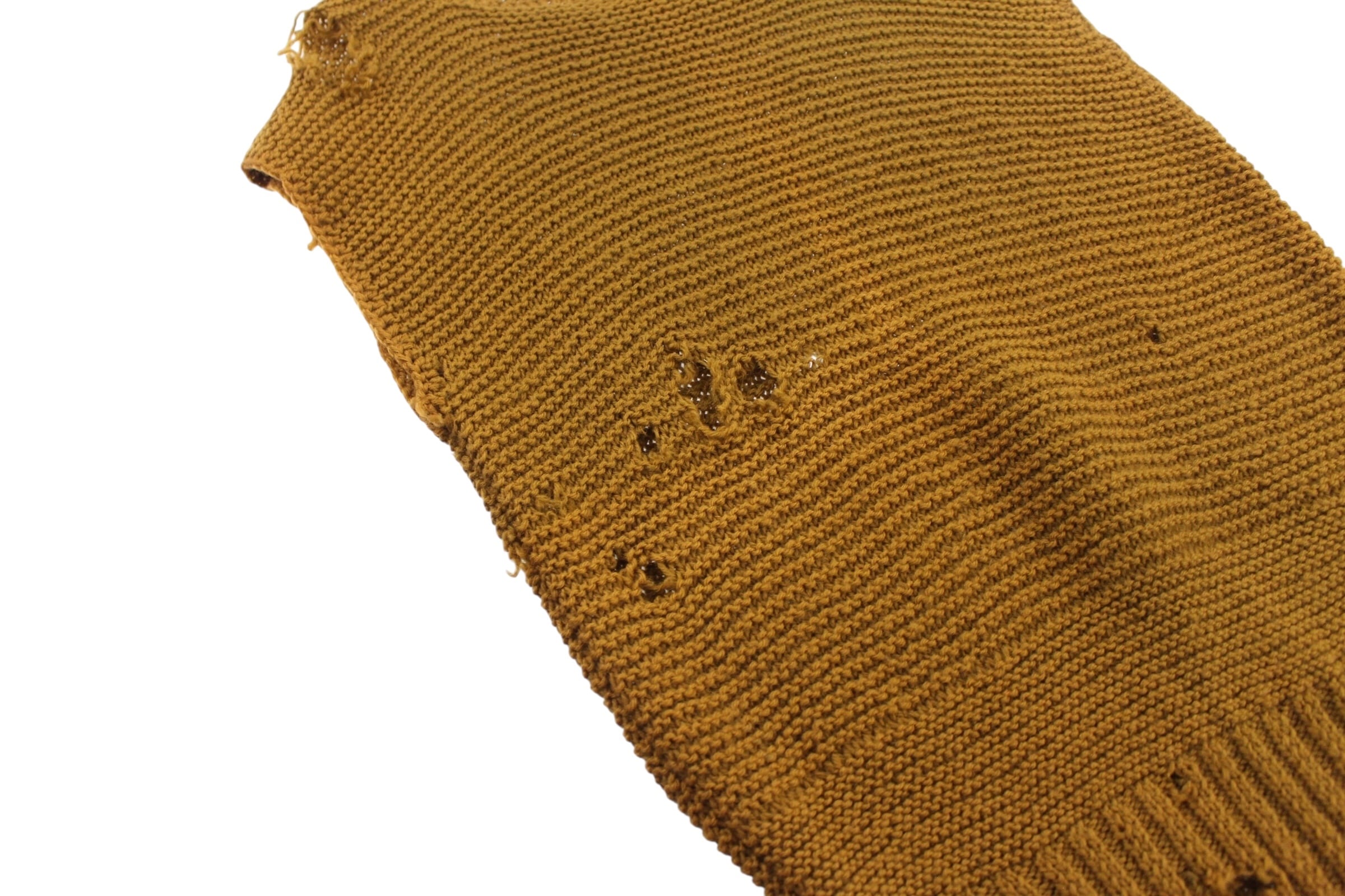 生地もごわついたウールですし、ボロボロで穴もあいていて、けして良いとは言えないです。目の詰まり方とかは良いです!