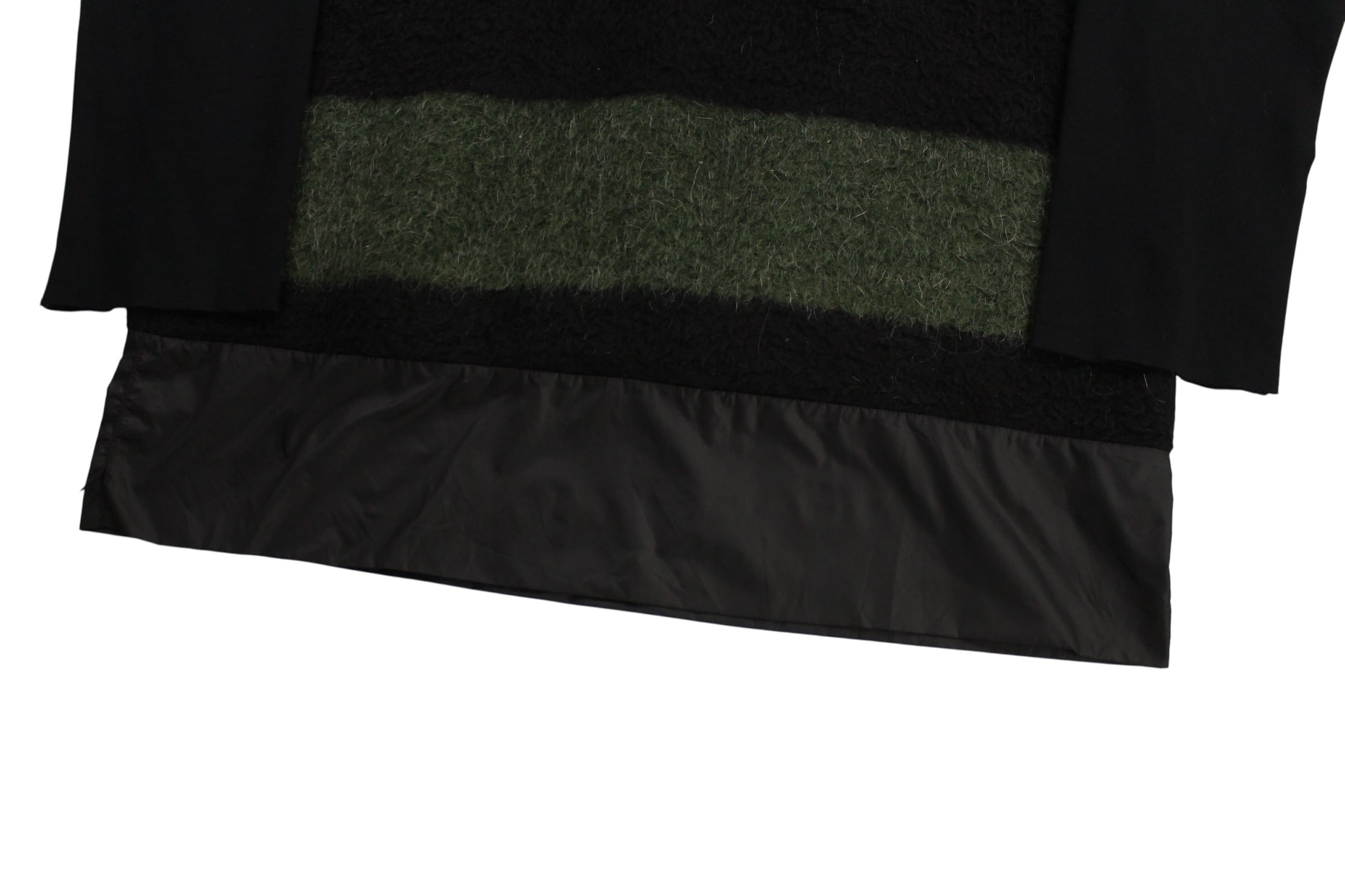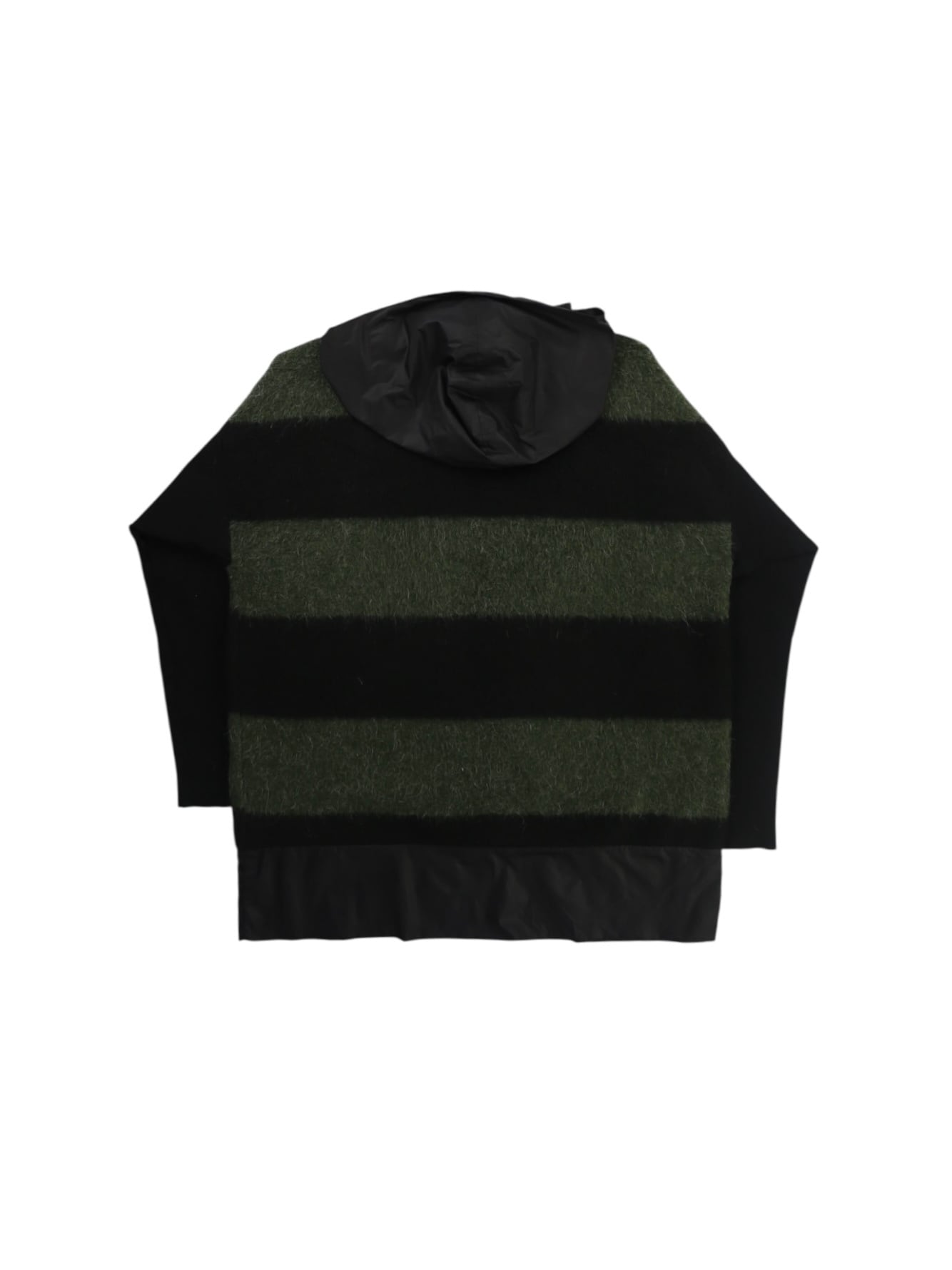 毛足の長いモヘアニットをベースに、袖には軽やかなスウェット生地、裾とフードにはナイロンをドッキング。