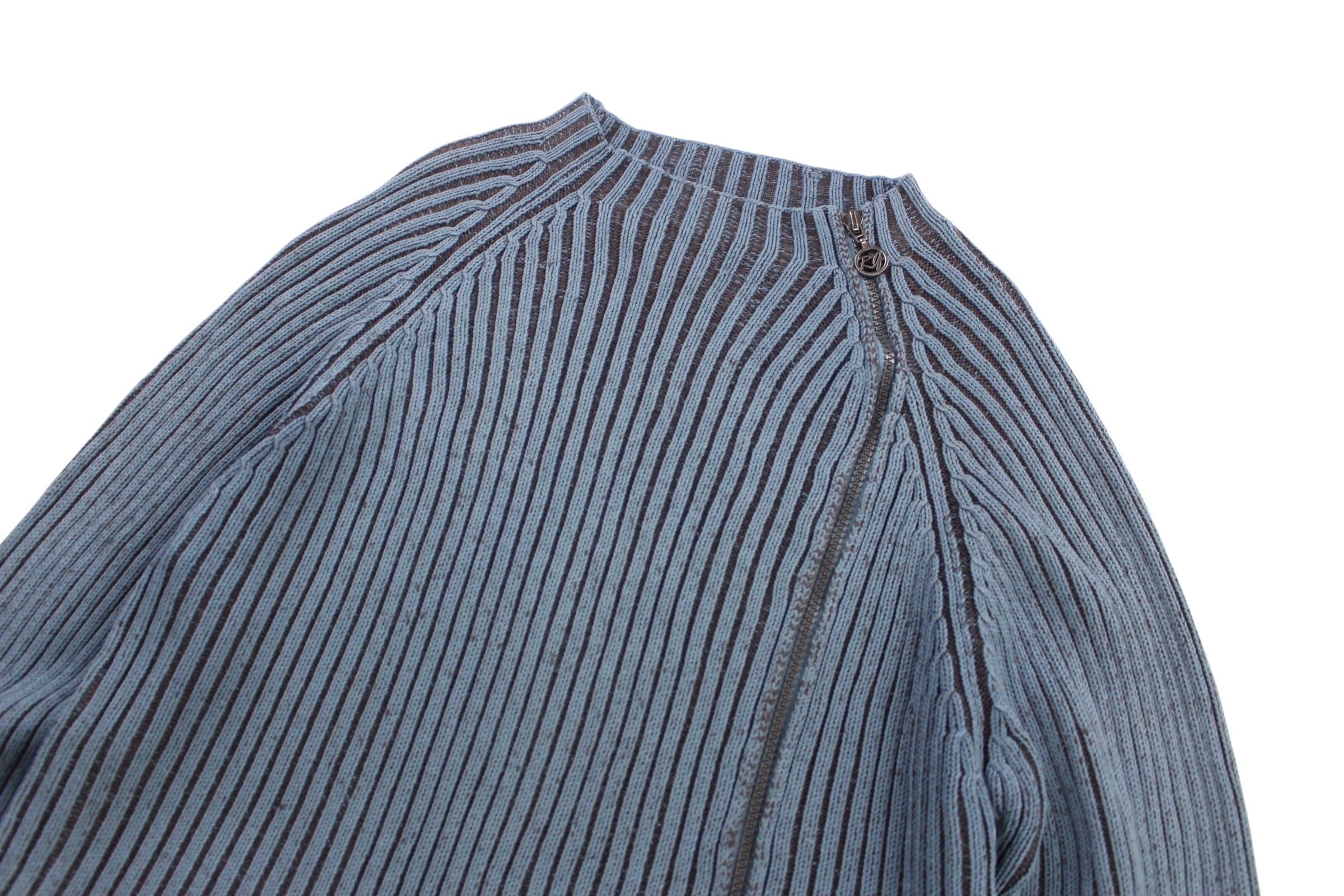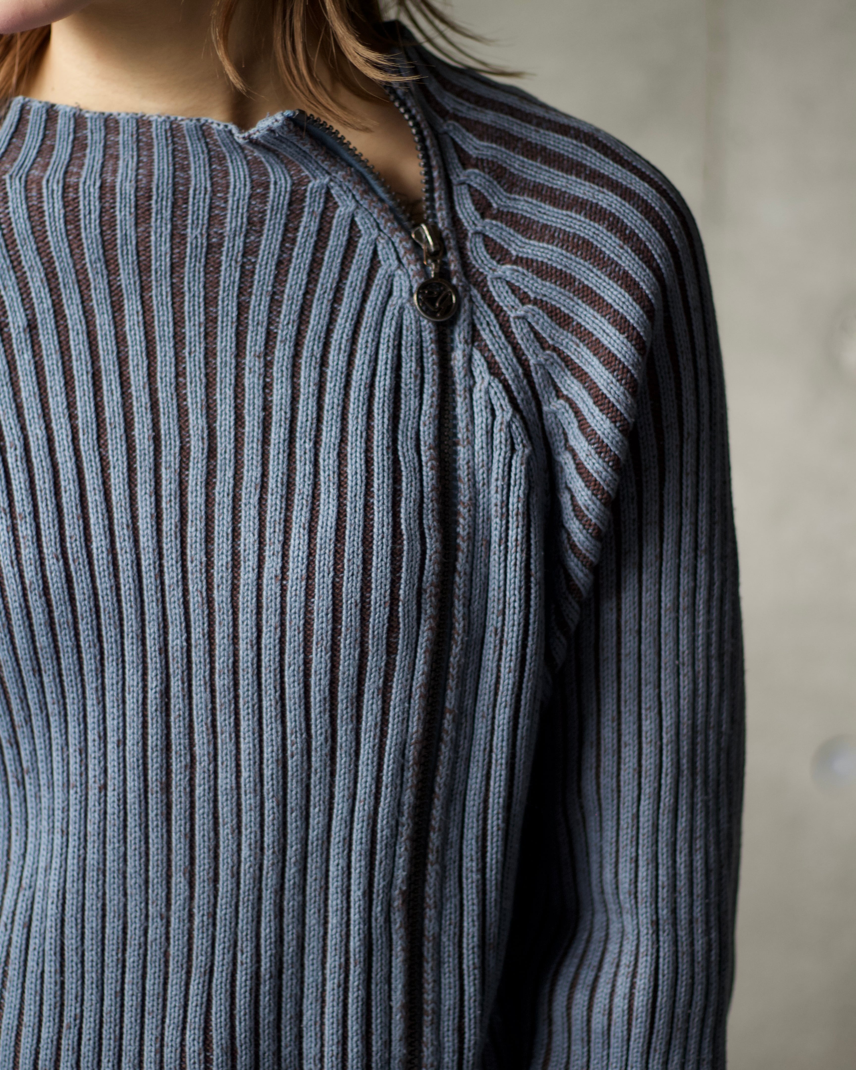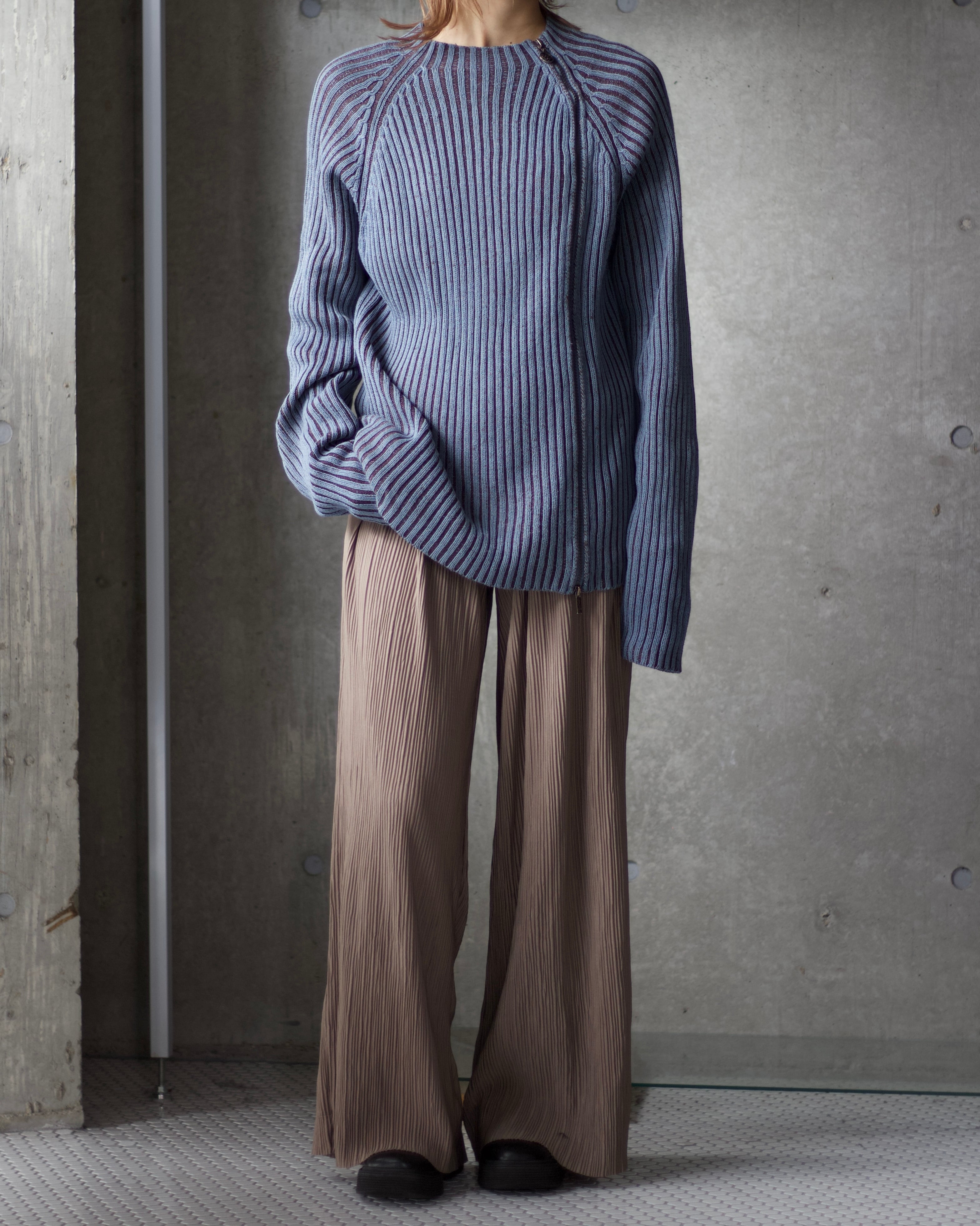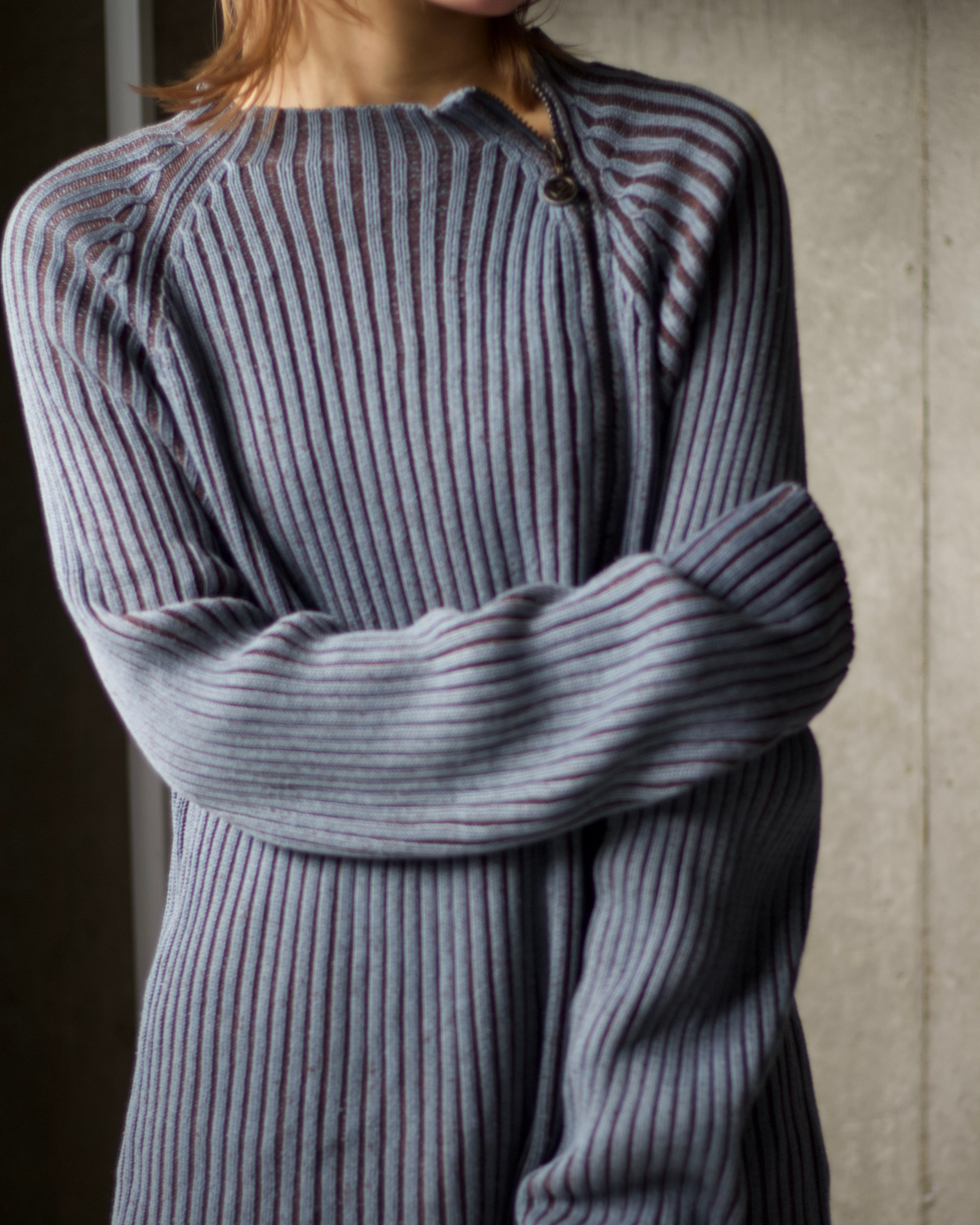 細かいストライプ状の編みが縦のラインを強調し、すっきりとした印象に。