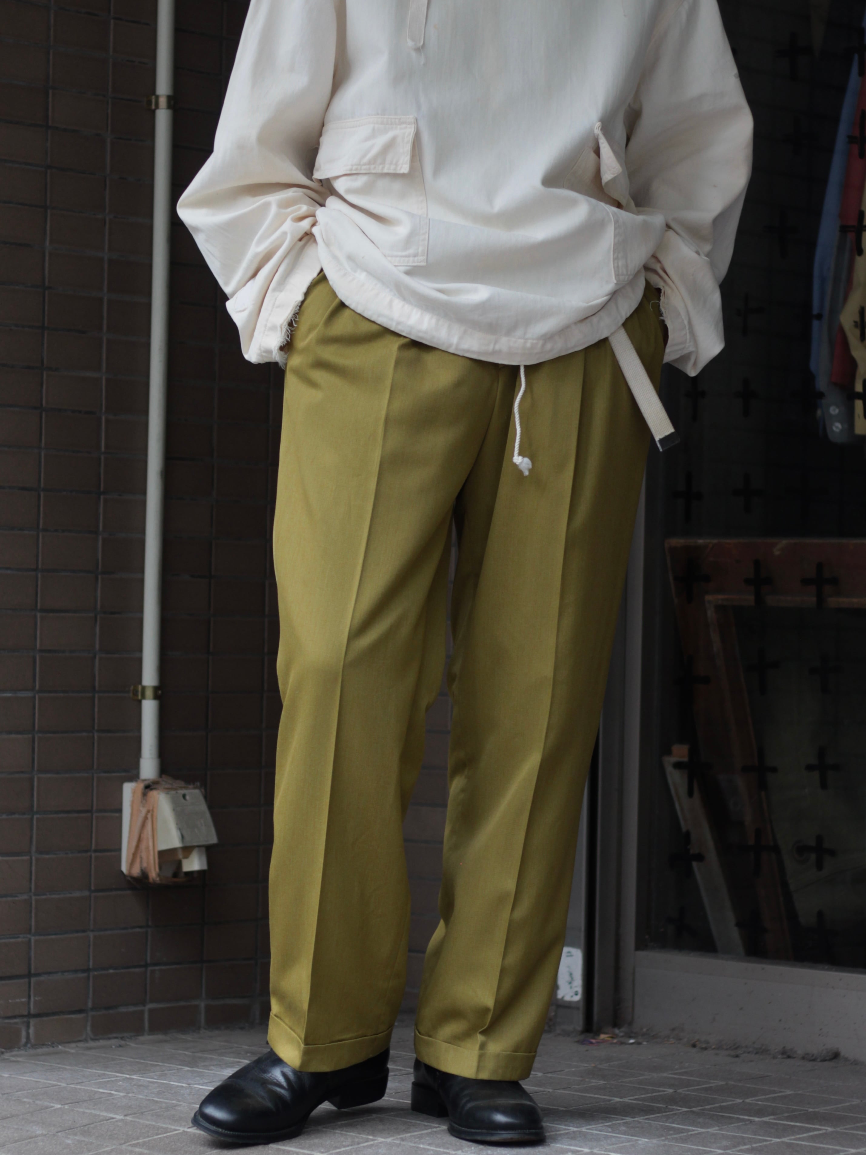 1990s vintage "Yomogi color" wide 2-tuck slacks【CU-8788】