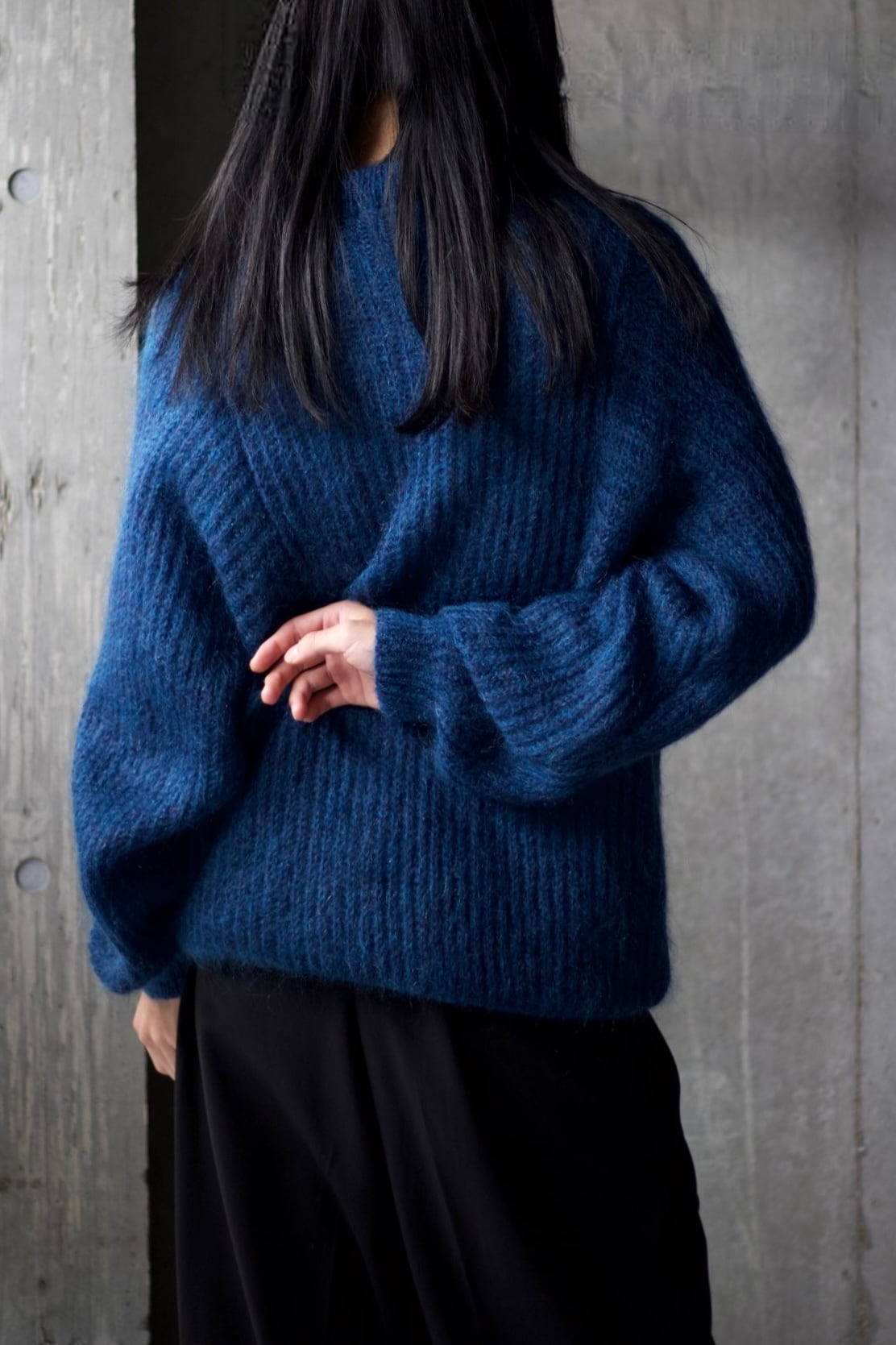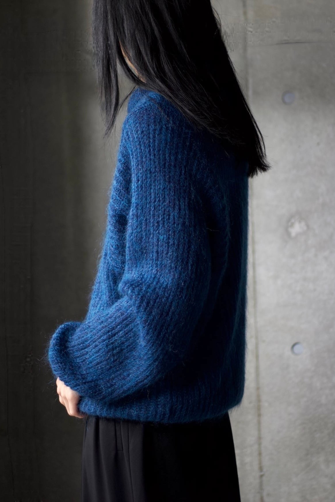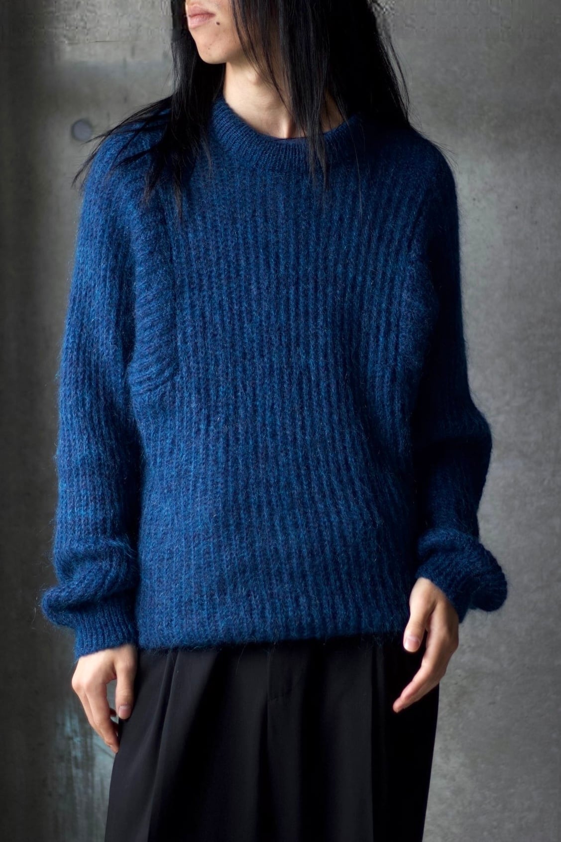 50%モヘアミックスのクルーネックニット。