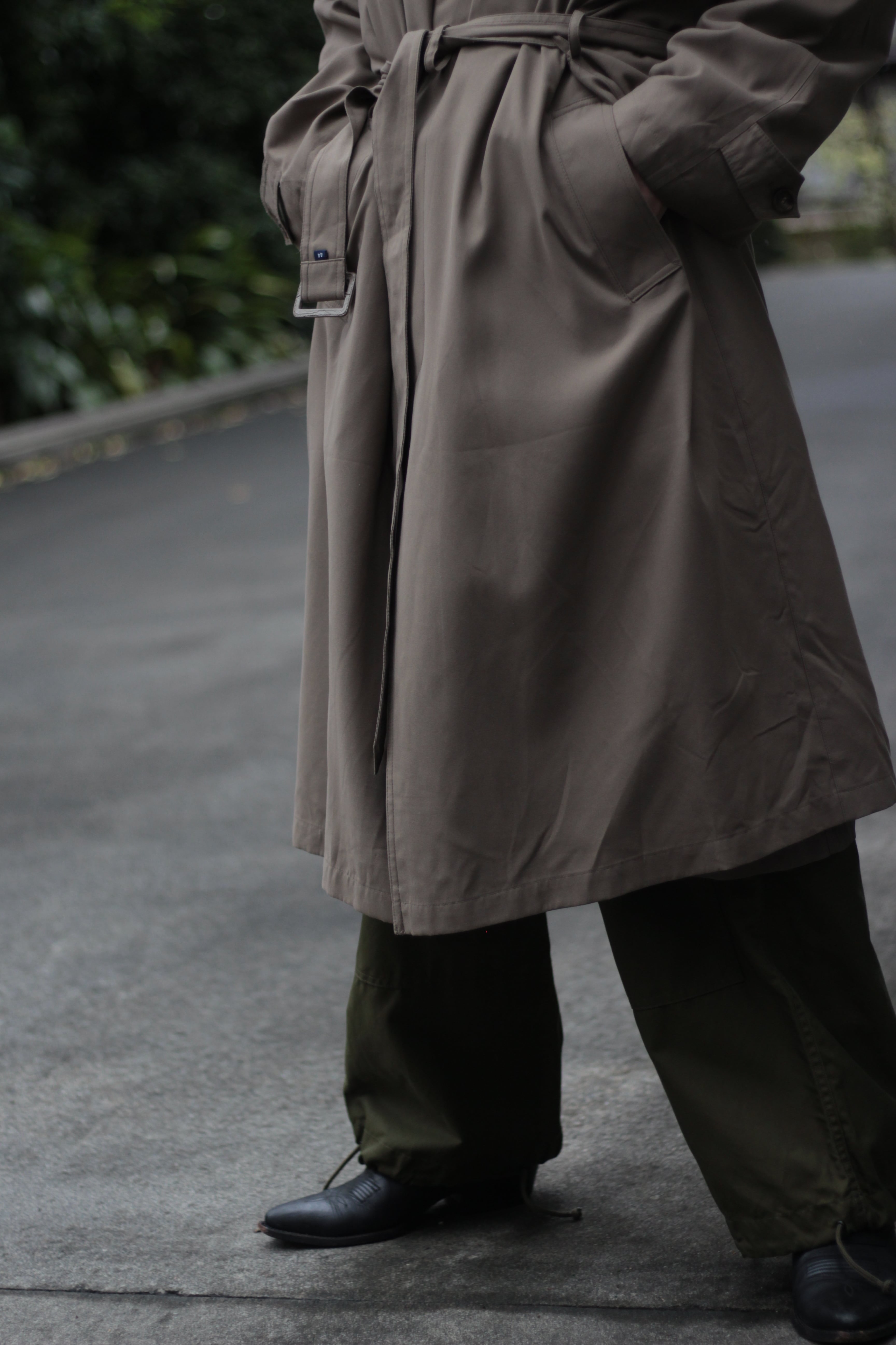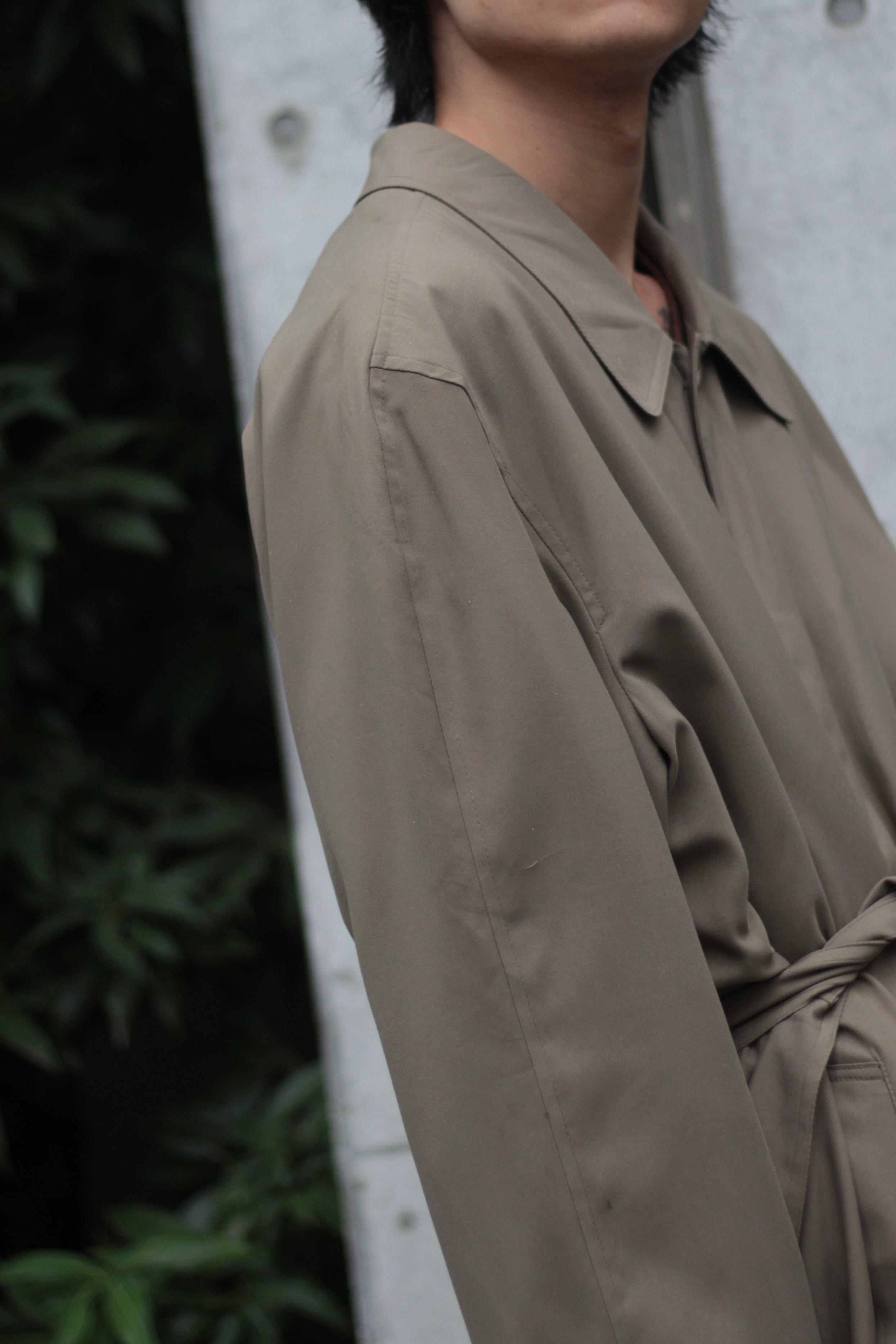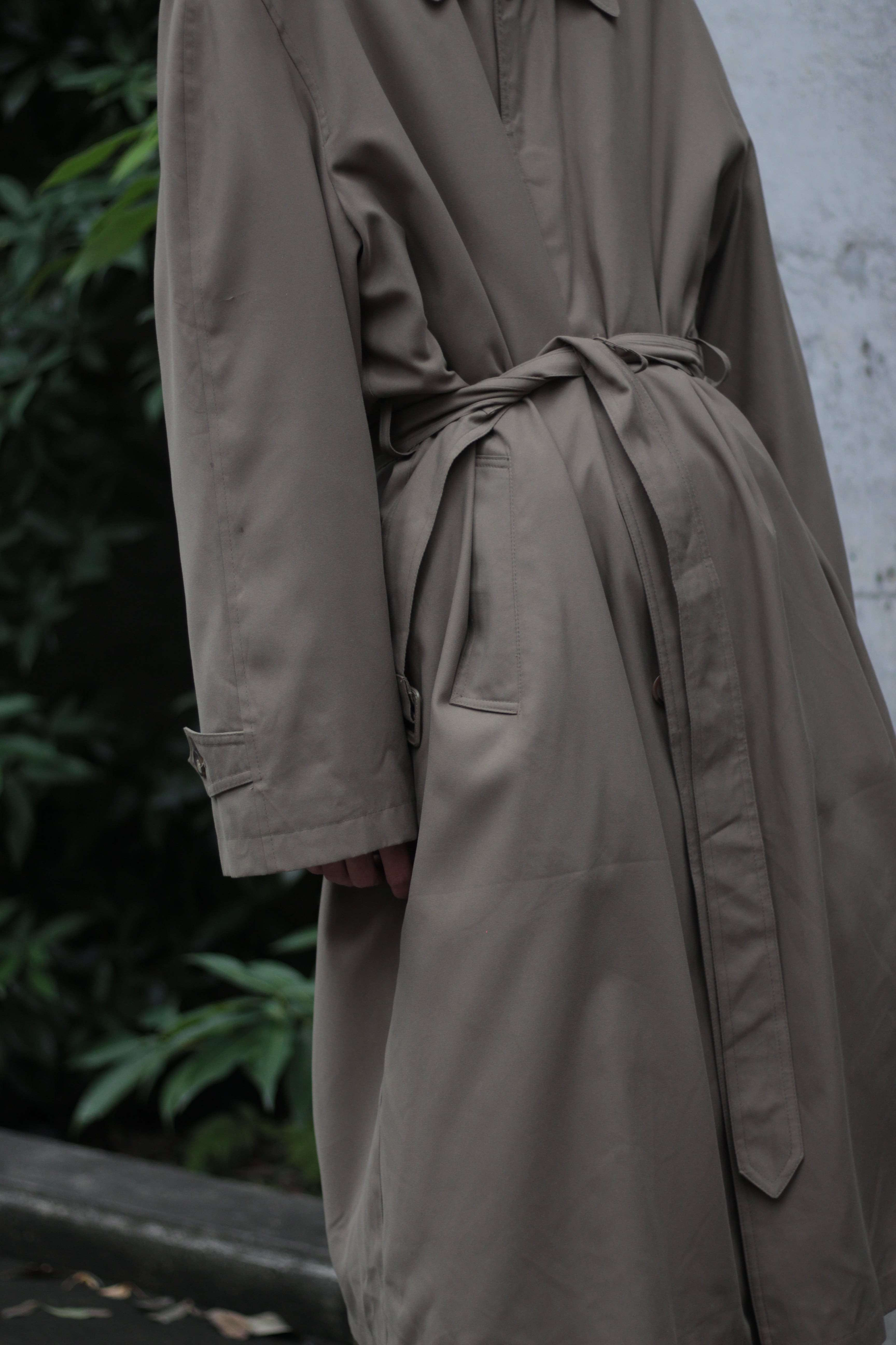 ステンカラーコートらしい良きディテールは残しつつもモダンなオーバーシルエットにシルエット感にメリハリをつけれるベルテッド◎