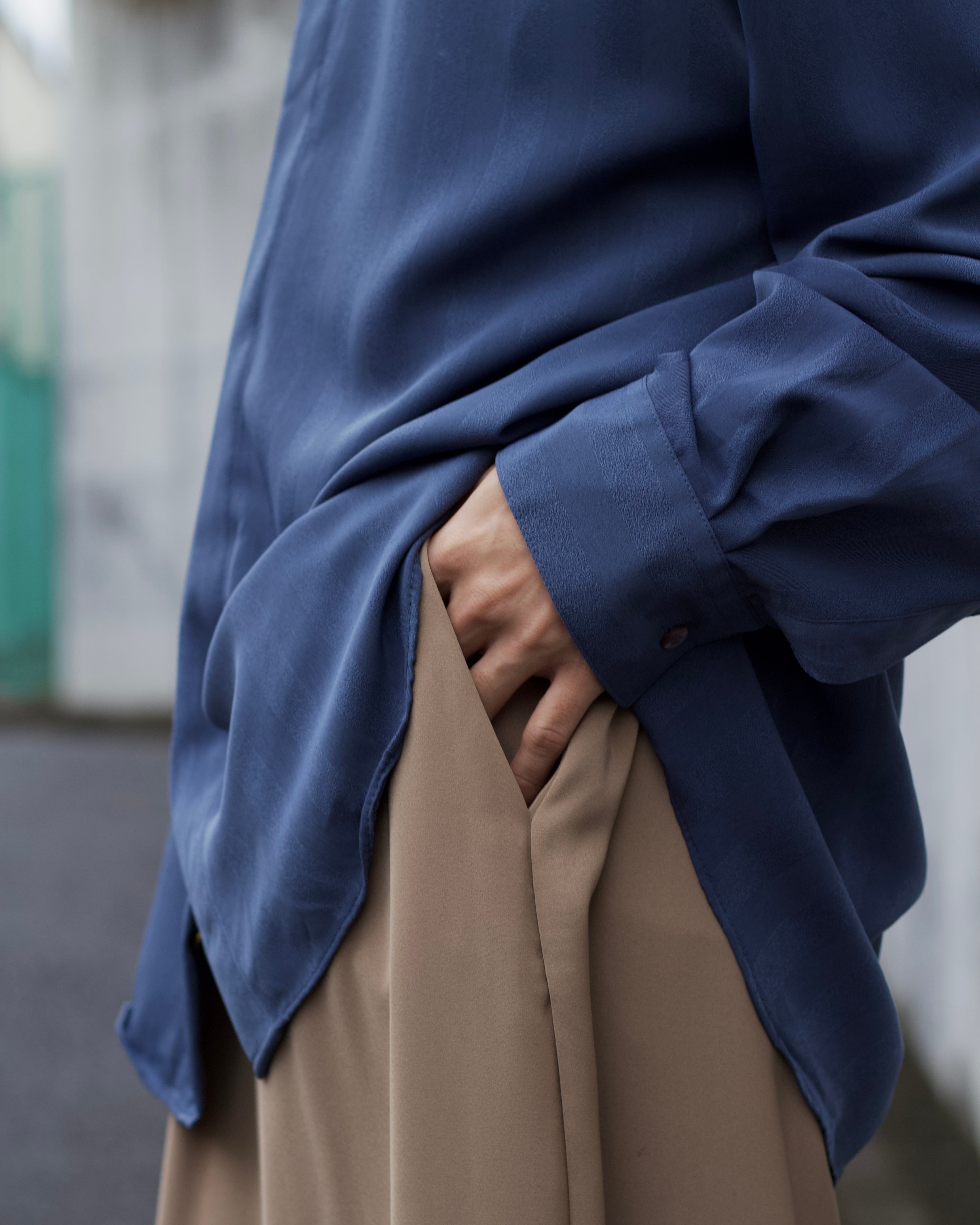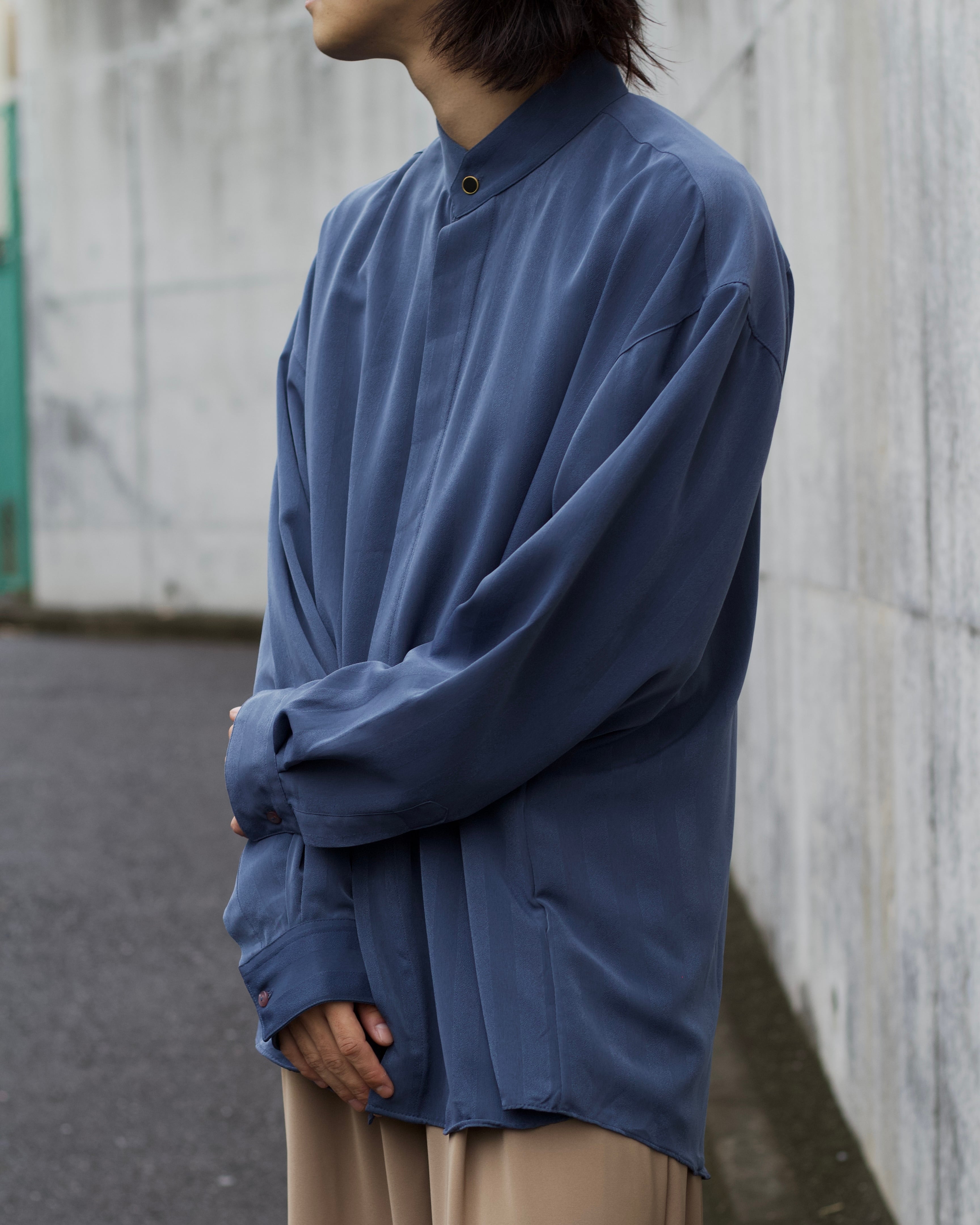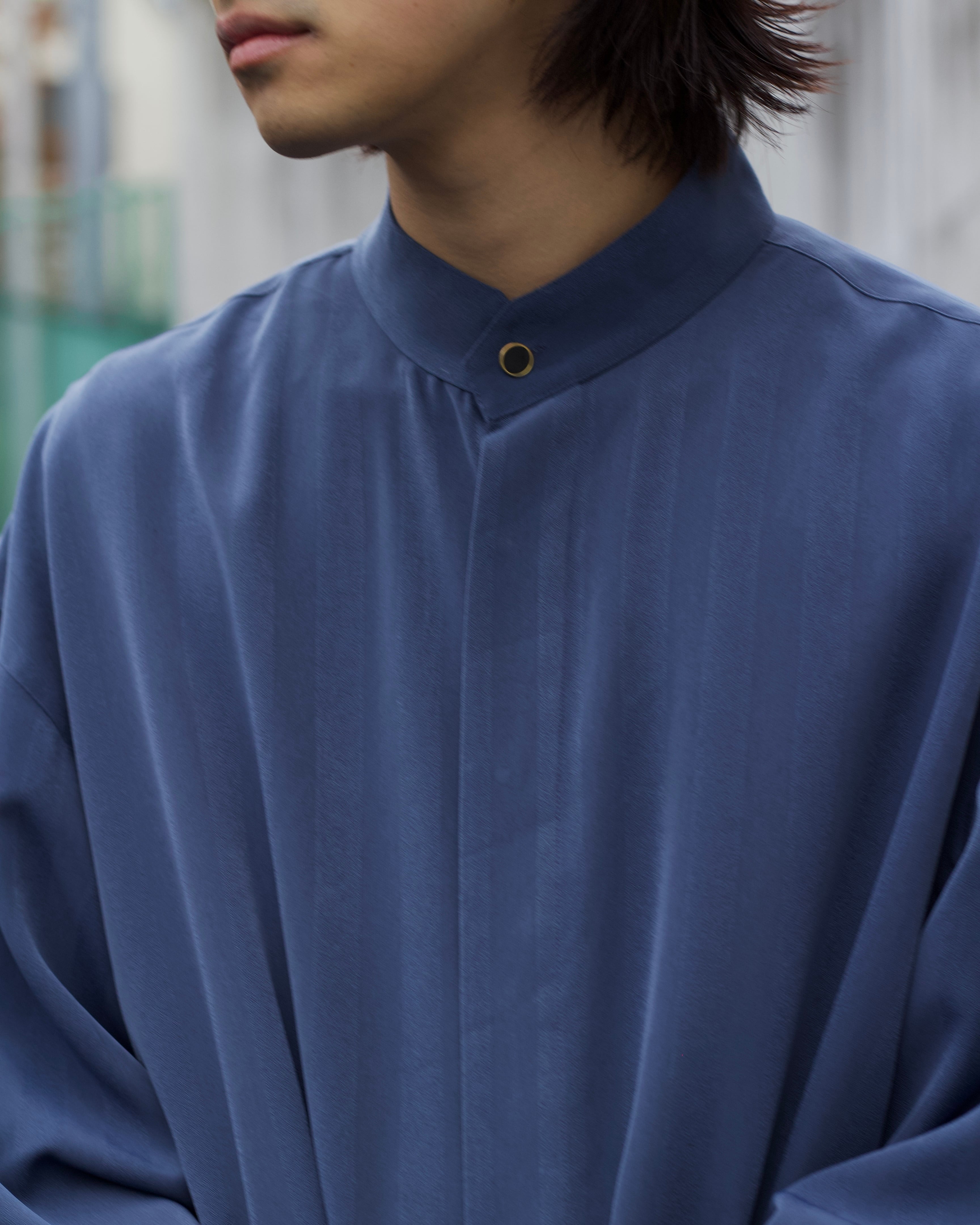 バンドカラーの綺麗な品のあるシャツで、生成りのカラーリングが◎
