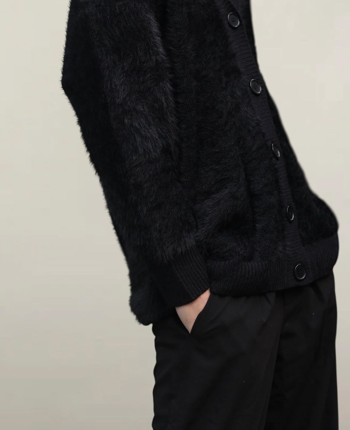black color shaggy knit cardigan【OT-13516】