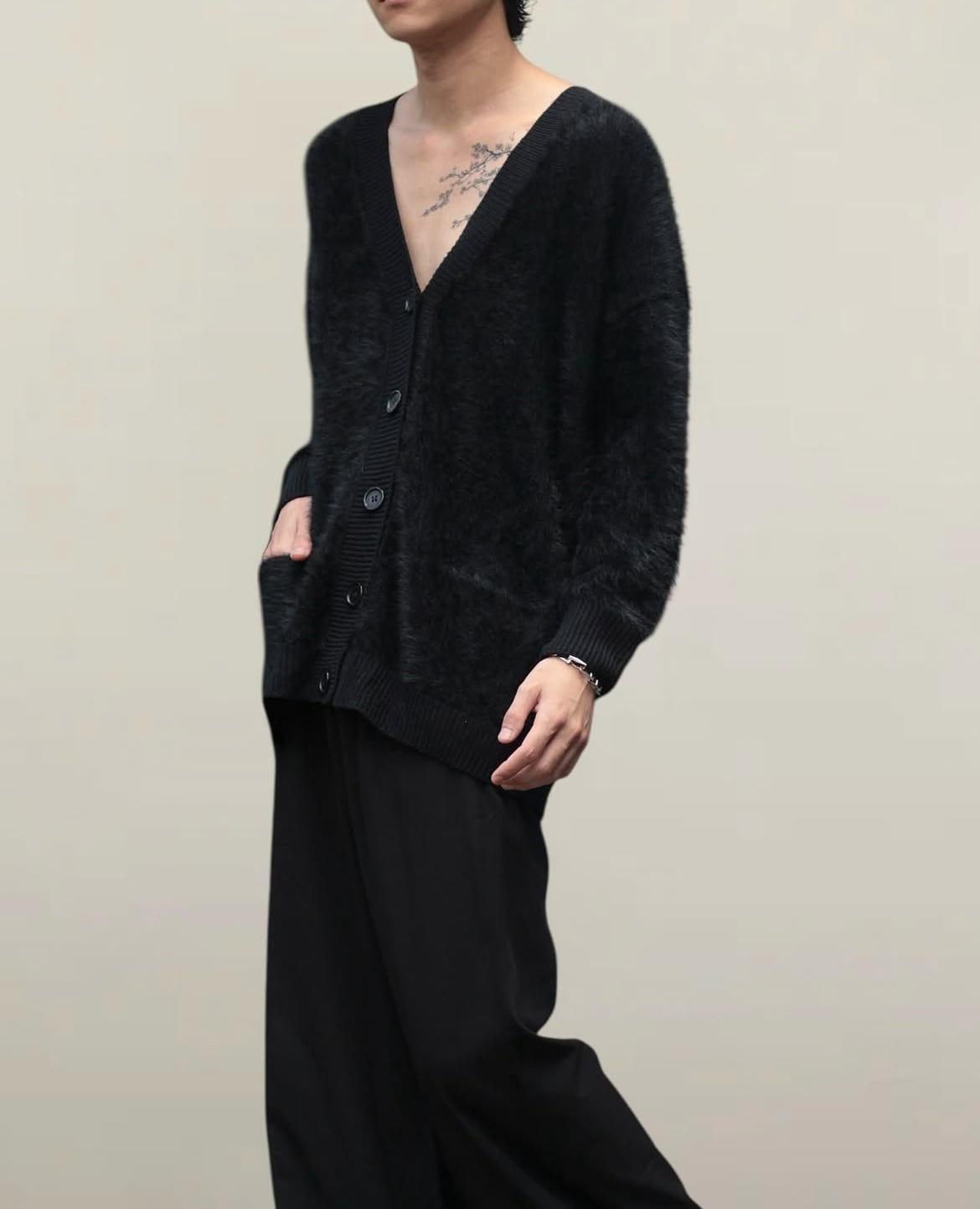 毛足の長いシャギーニットカーディガンが入荷しました。