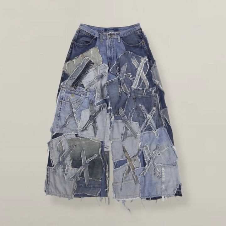 "REMAKE" crazy pattern buggy wide denim pants【OTTK-4560】