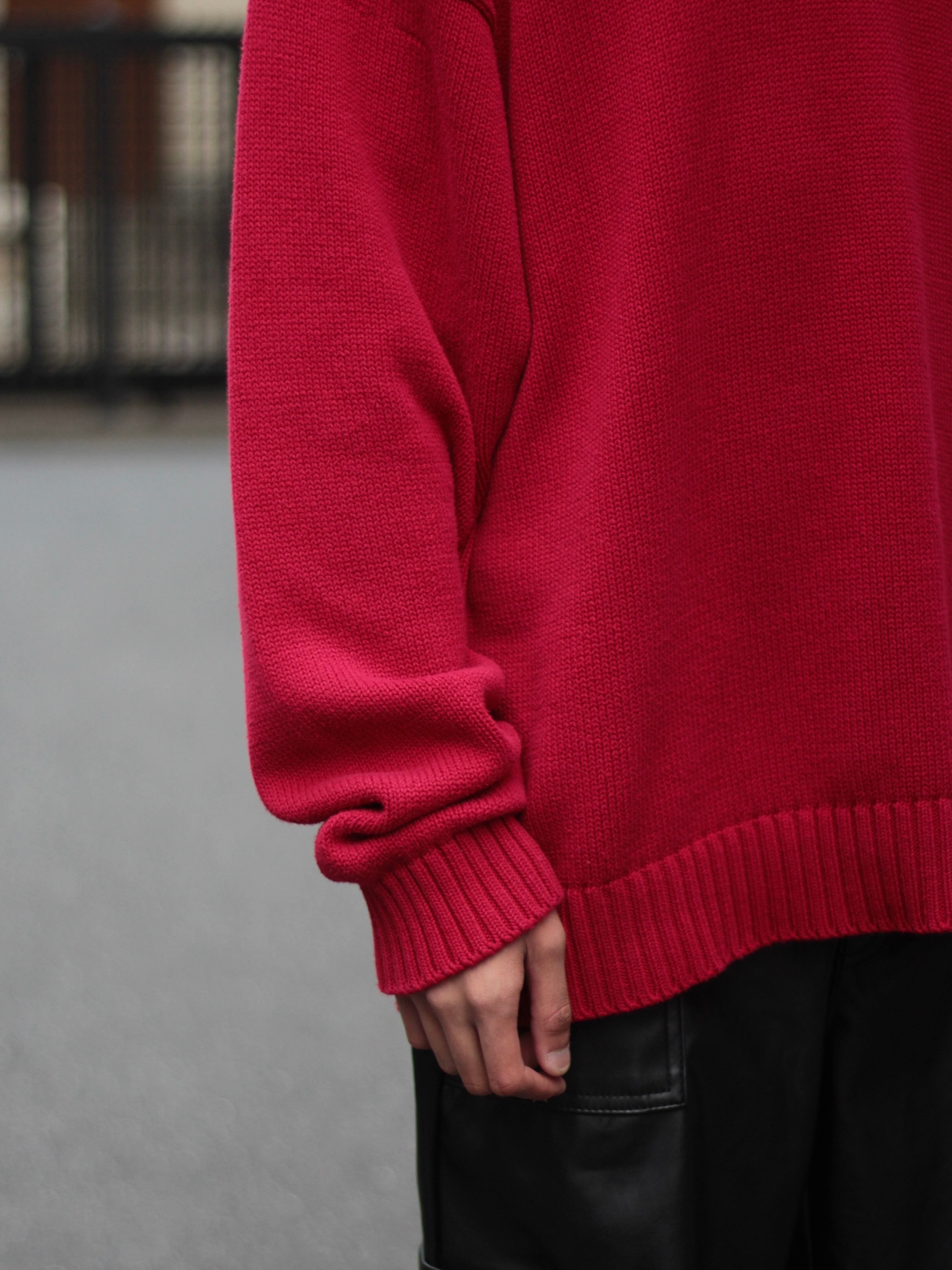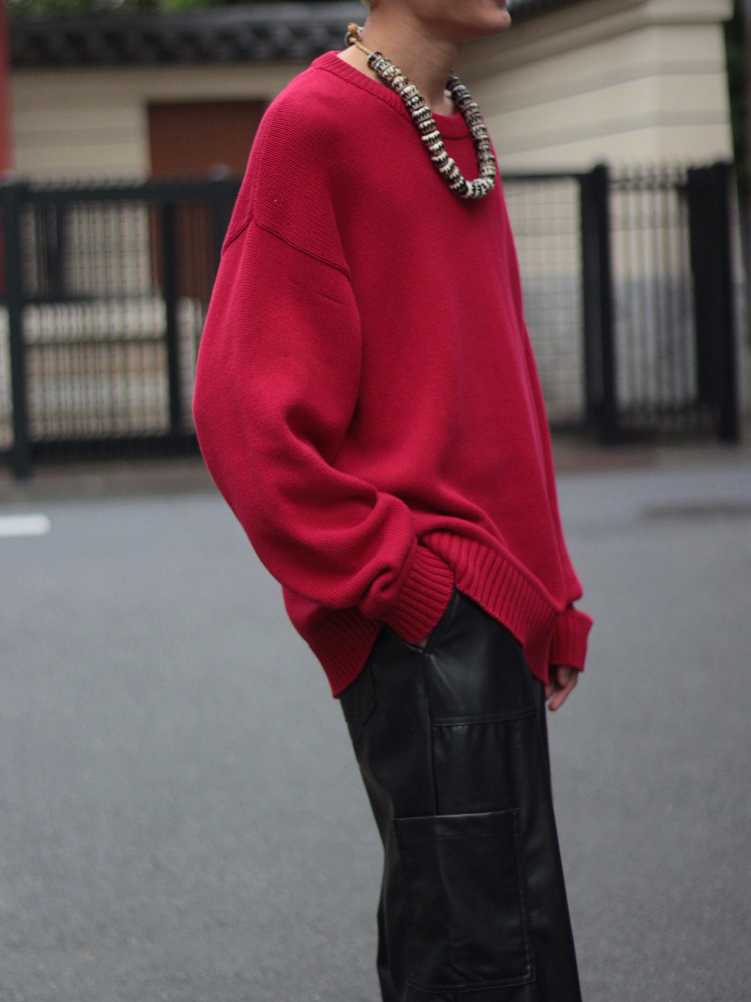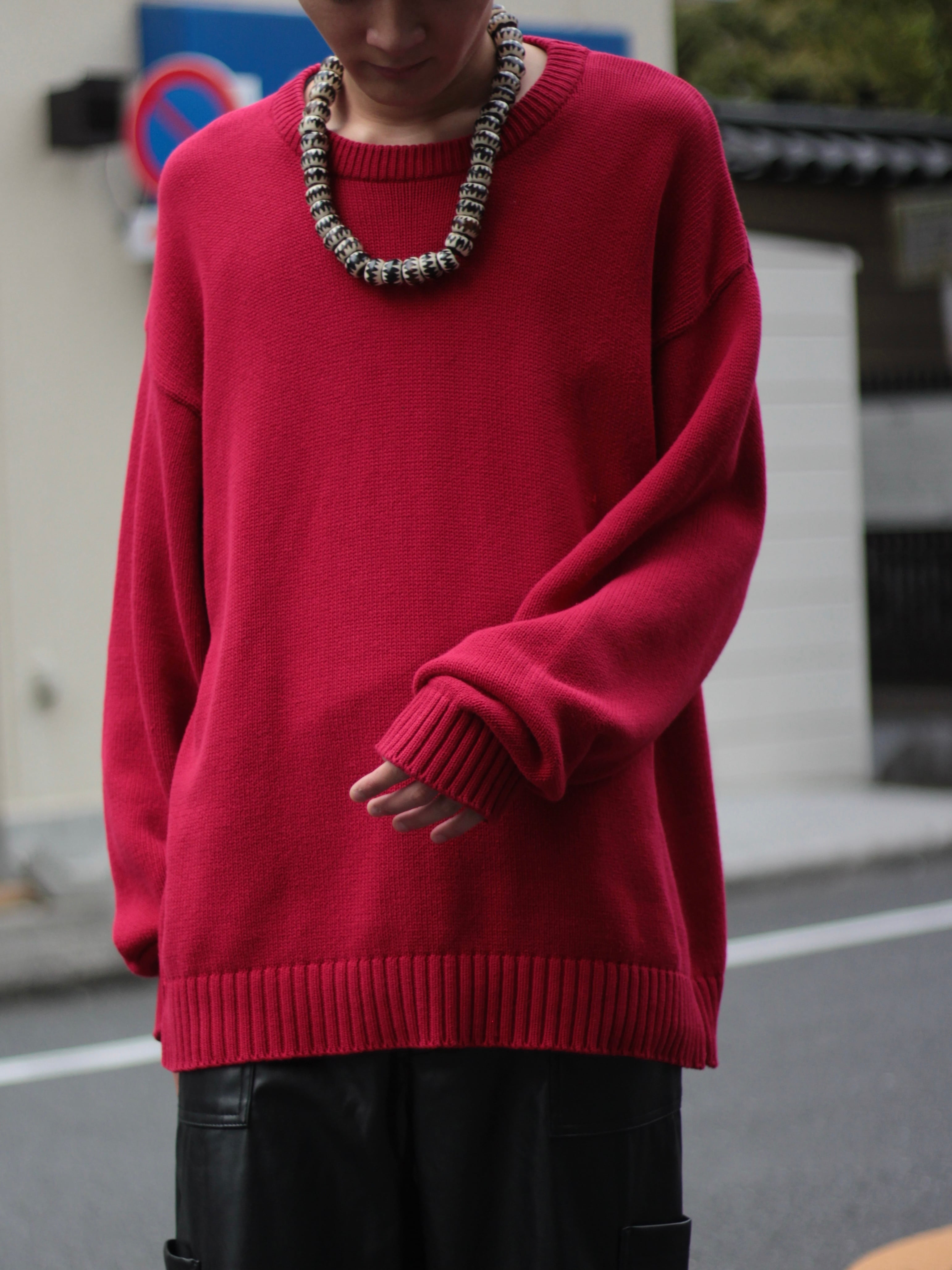 やはりニットは大きめに着ることで、ゆったりとしたサイジング中にシャツ等をレイヤードしてもよし、1枚で着るのもおすすめのニット。