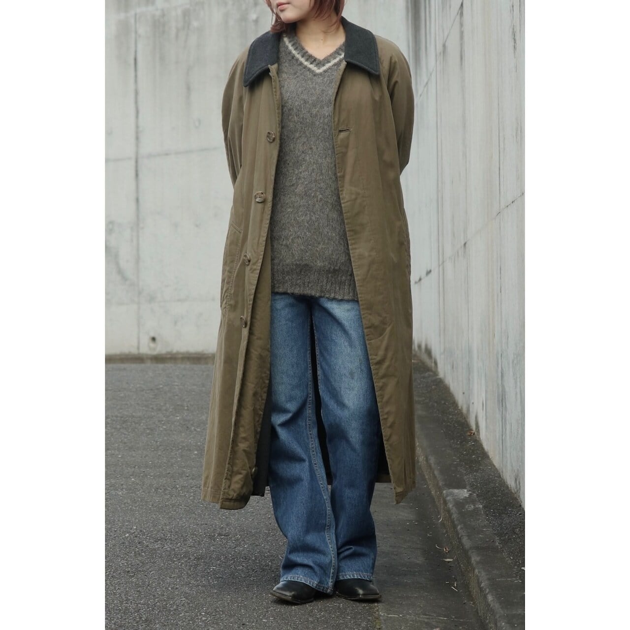 大人っぽい渋いカラーで襟はチャコールグレー。切り替えになっている部分がとてもかっこいい。