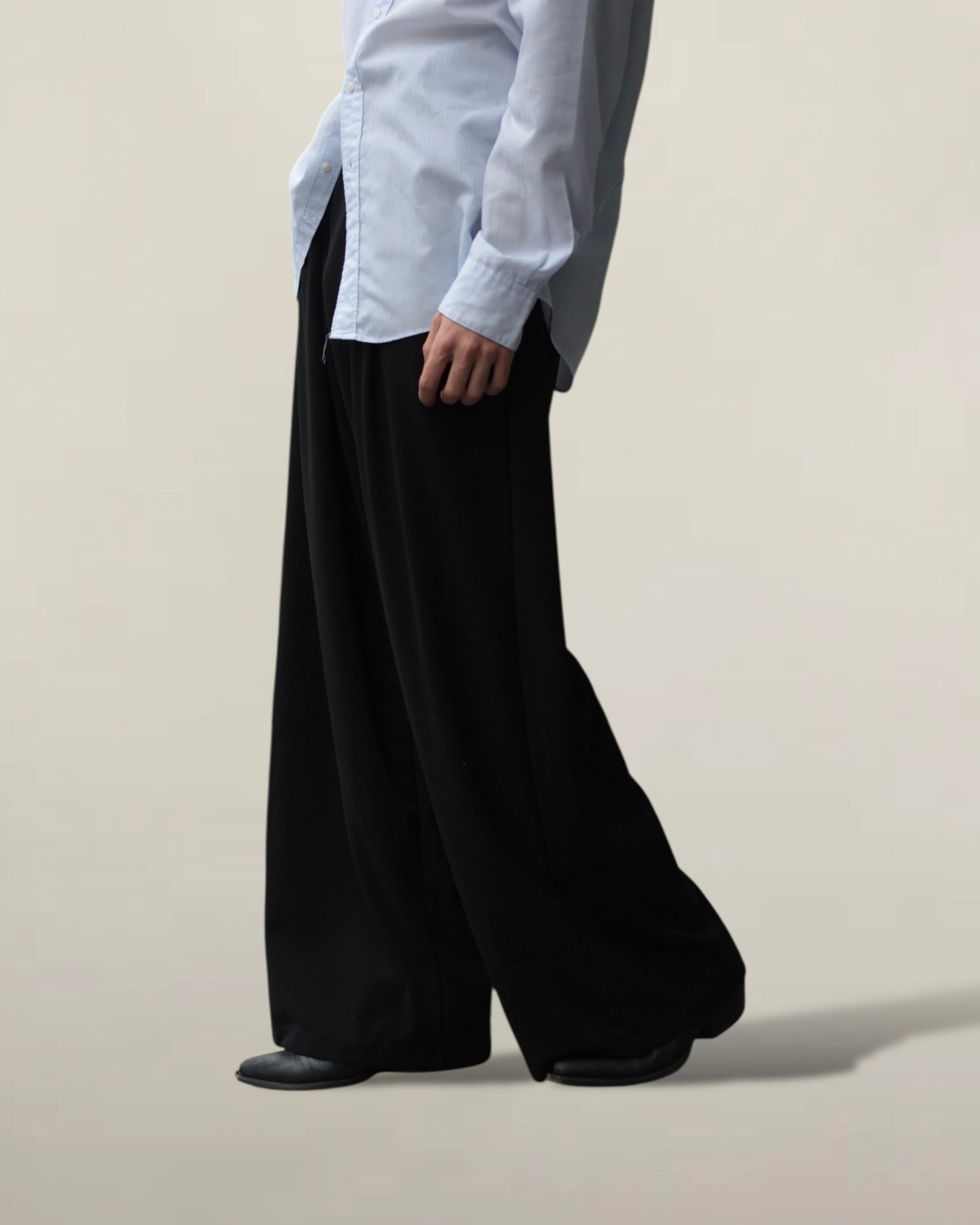 テーパードの全くかからないストレートシルエットでオチ感やクッションをお楽しみ頂けます。
