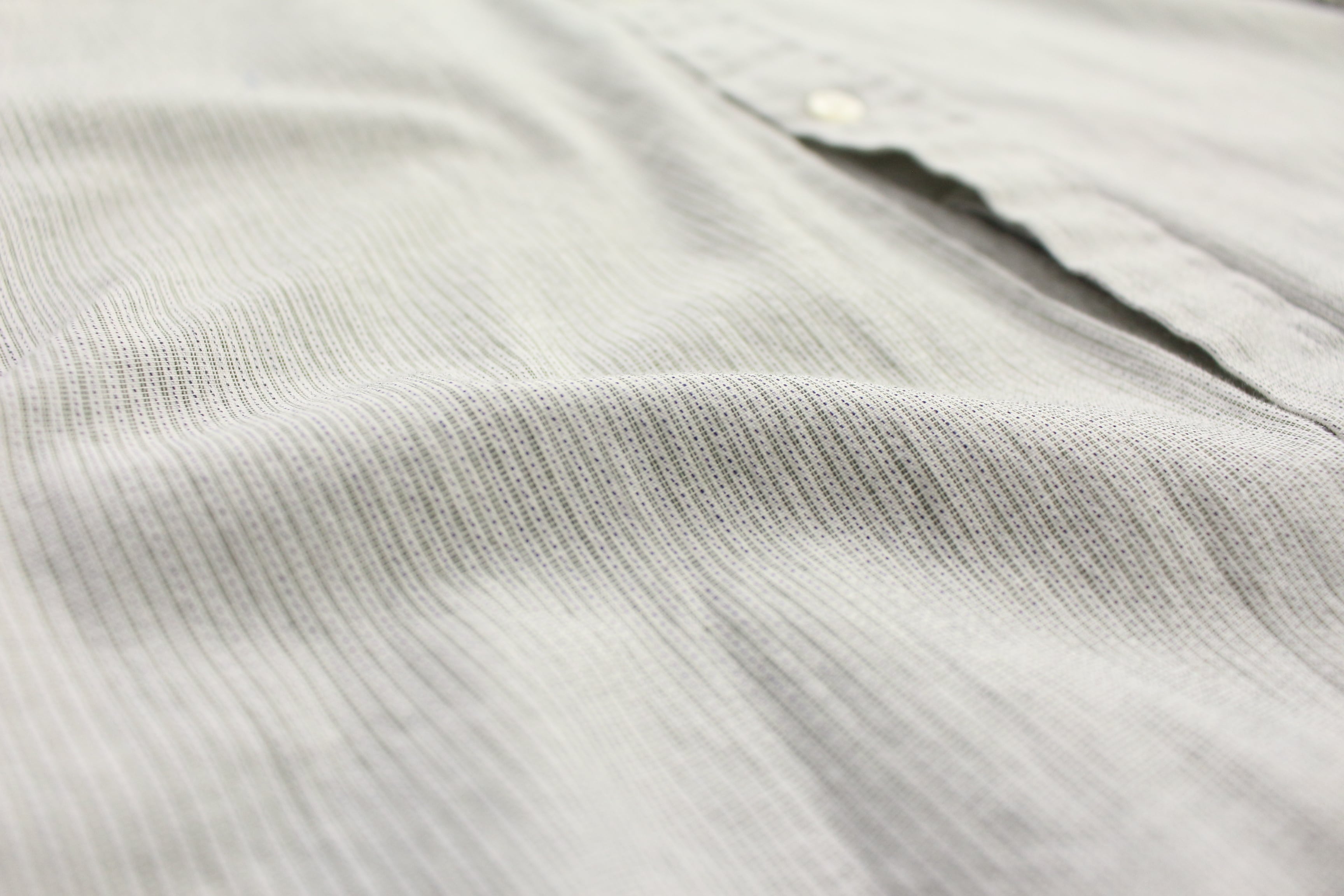 生地はコットンでサラッとしつつも特有のハリ感があり着やすいいいシャツ