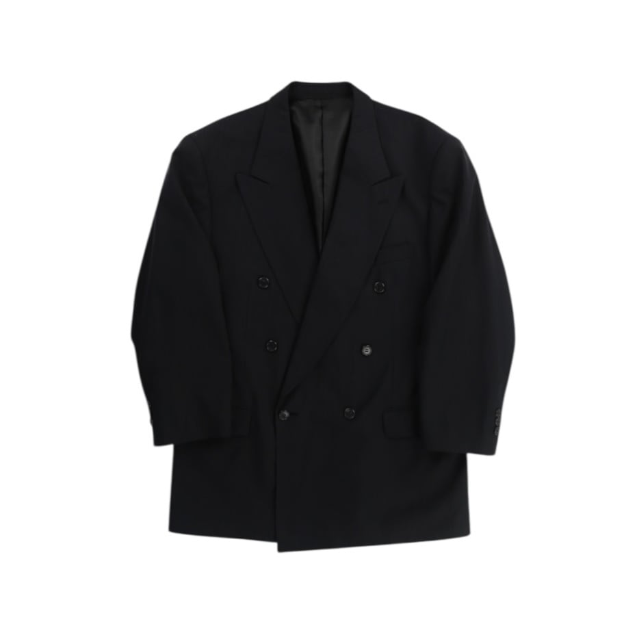 大ぶりなピークドラペルでゆとりある身幅からずどんと堂々のボックスシルエット