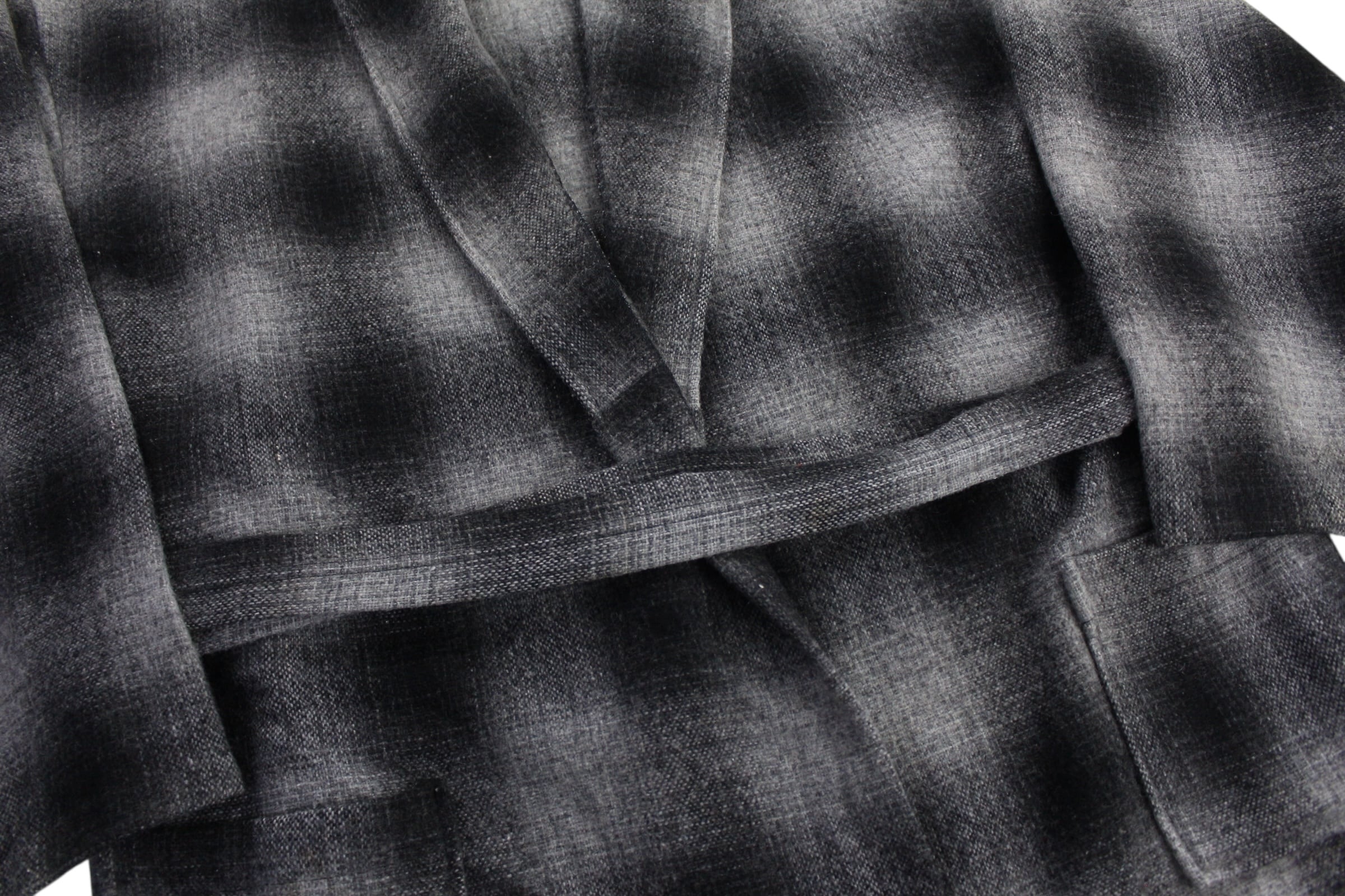 1980’s vintage shawl collar ombre check long gown coat with belt【OTTK-4686】