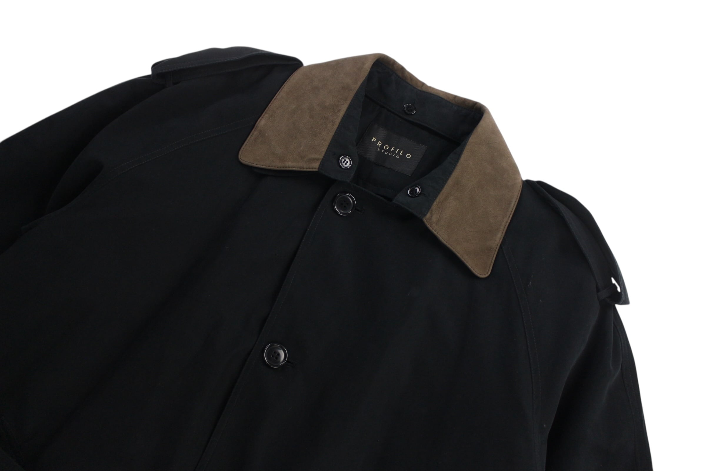 1990’s PROFILO STUDIO leather collar switching long balmacaan coat with removed liner & belt【OTTK-4693】