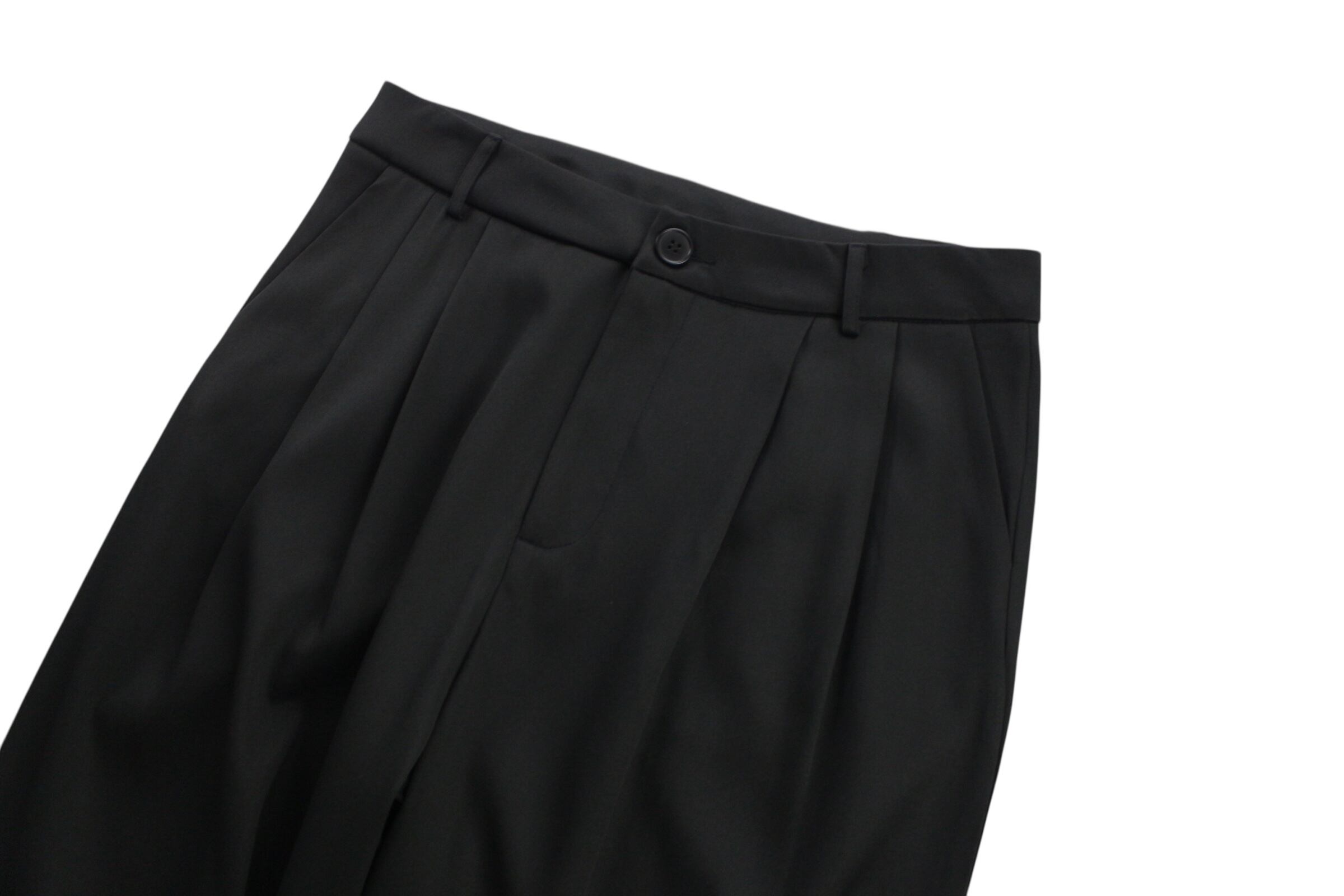 綺麗なバギーのシルエットが魅力的な2タックスラックスです。