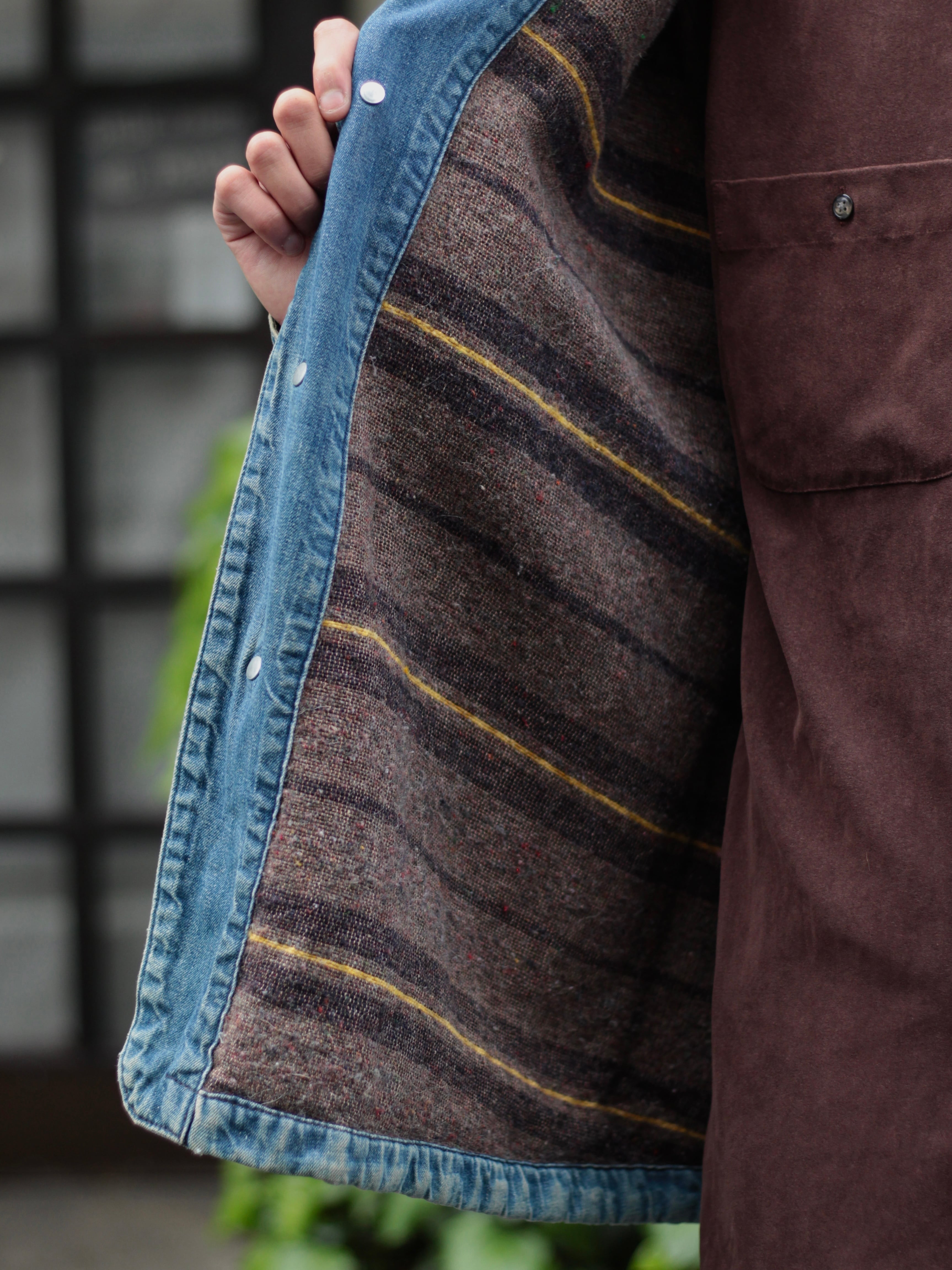 経年によるヴィンテージデニム特有の色の濃淡が大変雰囲気があり、既製品には表現できないオーラのあるファブリックです。
