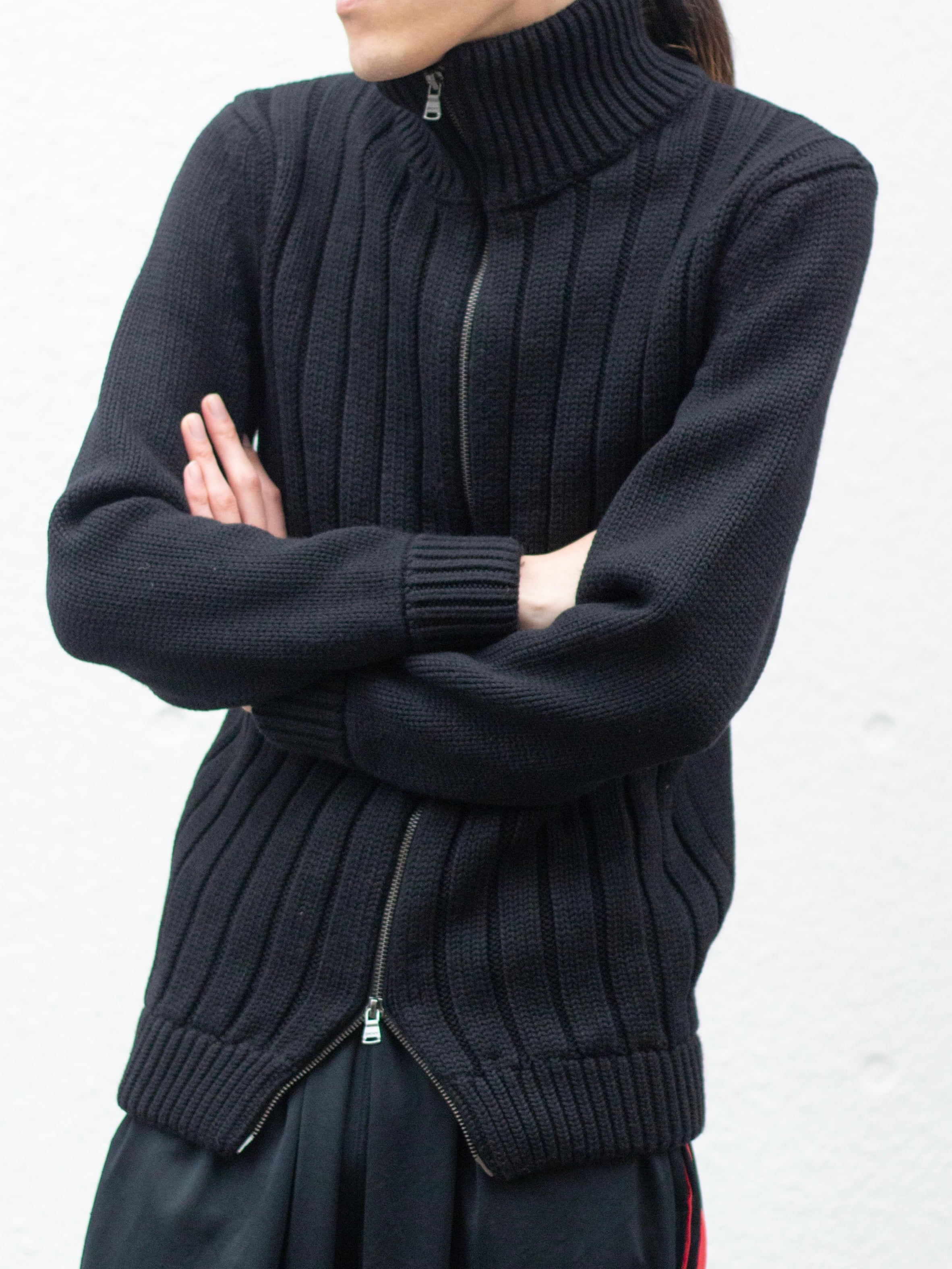 "DKNY" hi-neck double zip drivers knit【CO-6597】