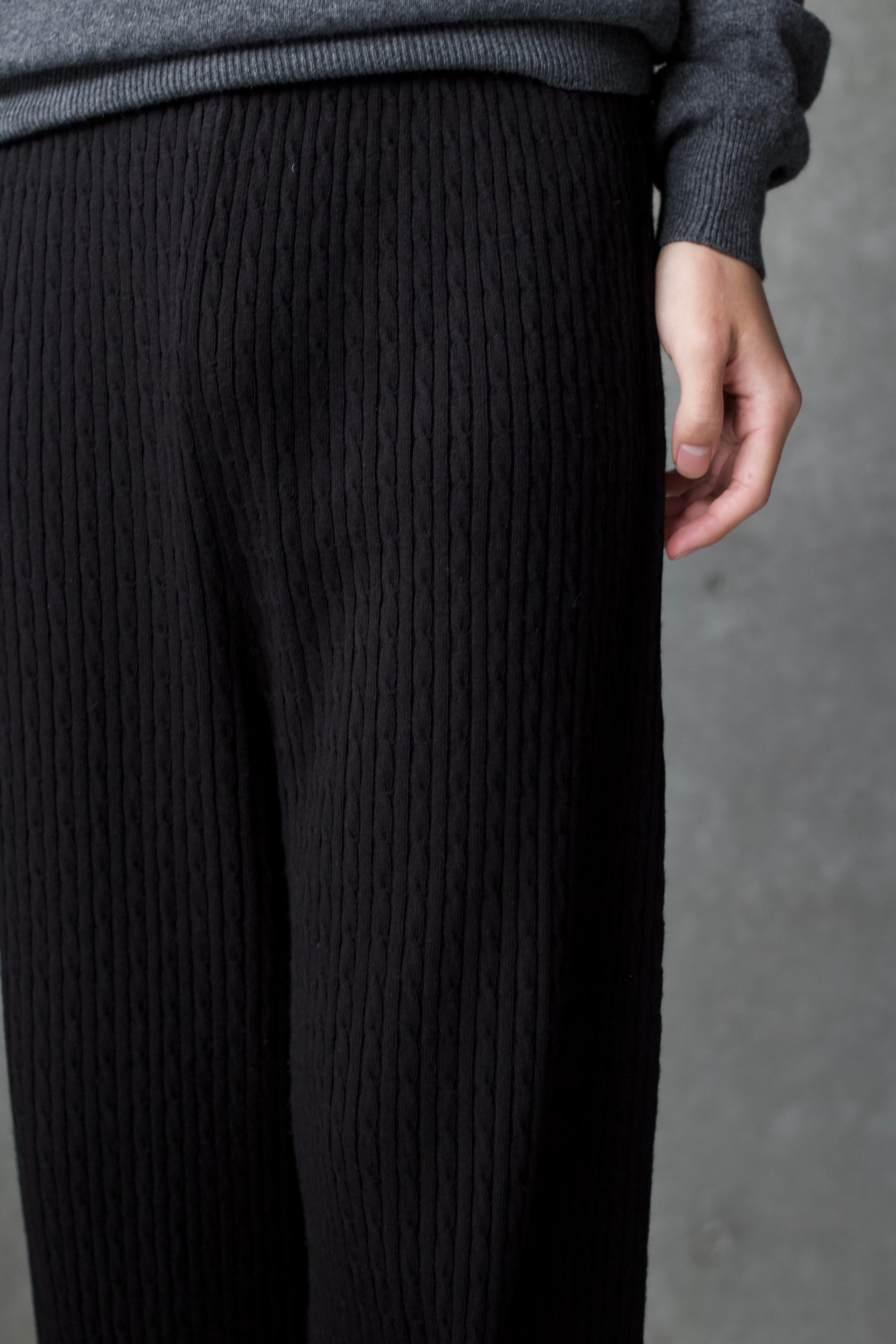 ジェンダーレスなケーブル編みのデザインになっており、程よい太さの一着。
